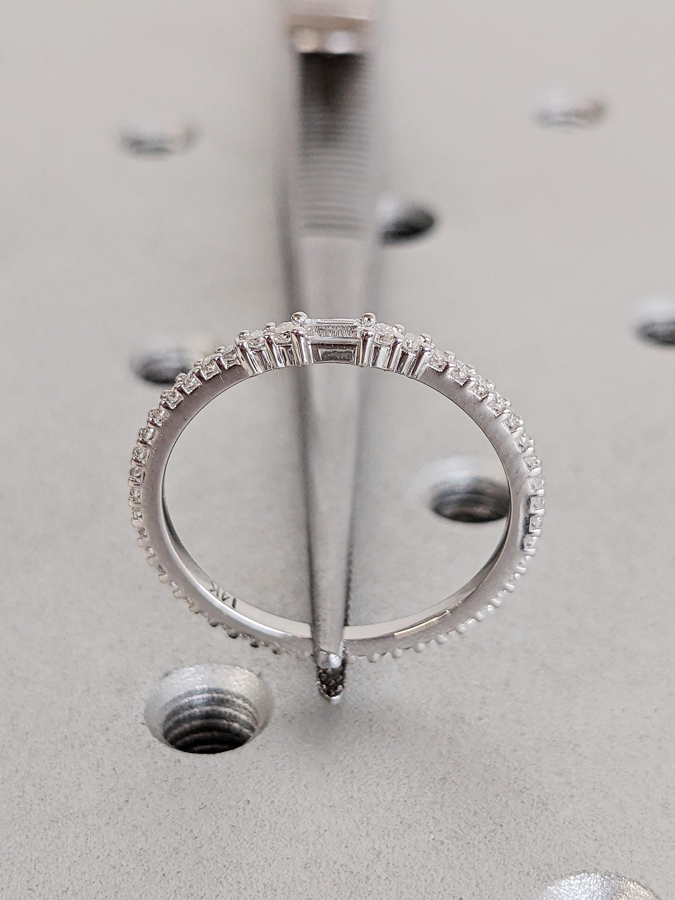 Timeless and dazzling, this dainty eternity ring features alternating round cut diamonds, available in Natural Diamond, Lab Diamond and Moissanite. Handmade with precision, it shines beautifully on its own or pairs perfectly with our engagement rings as a complementary stacking piece.