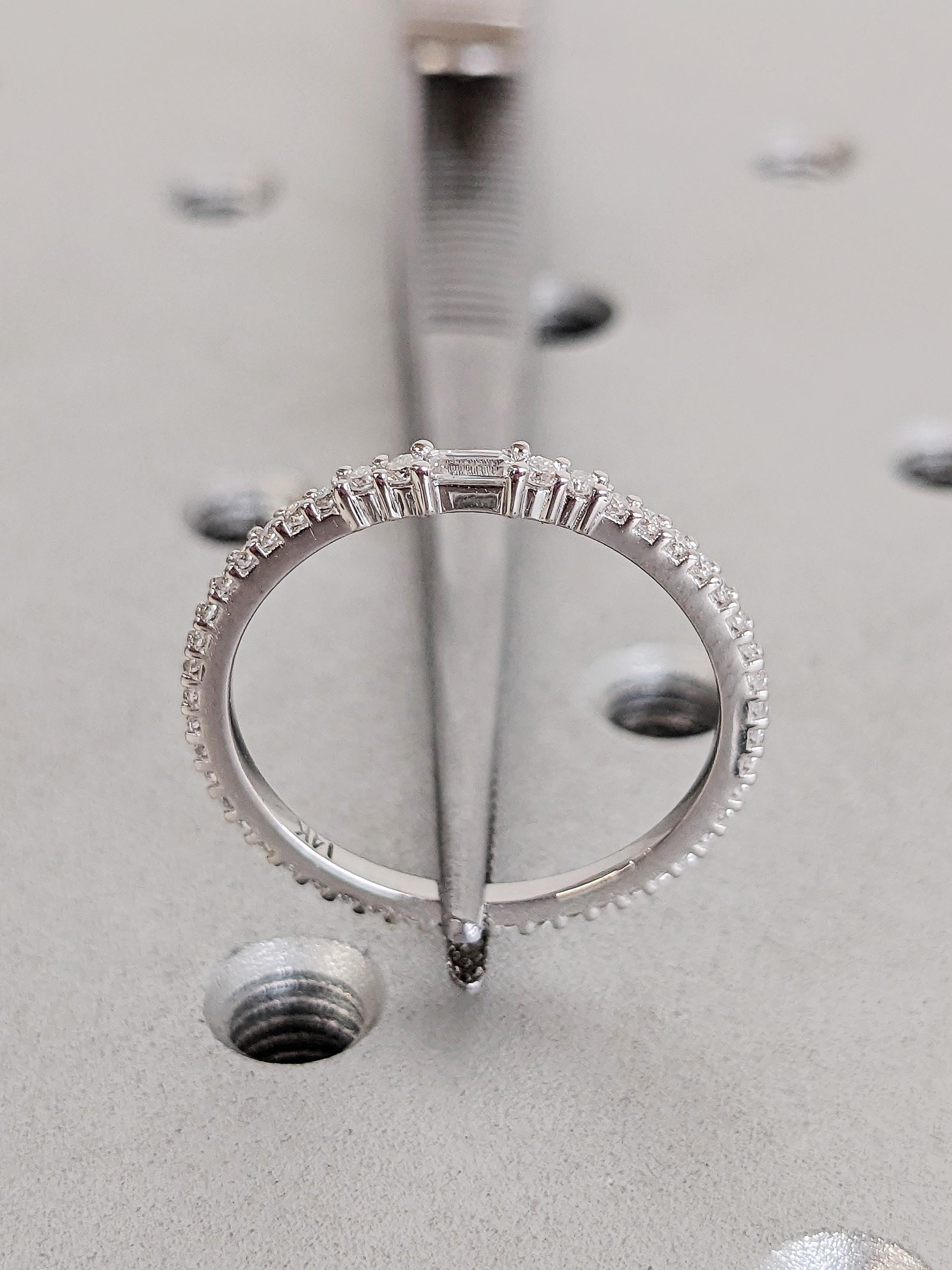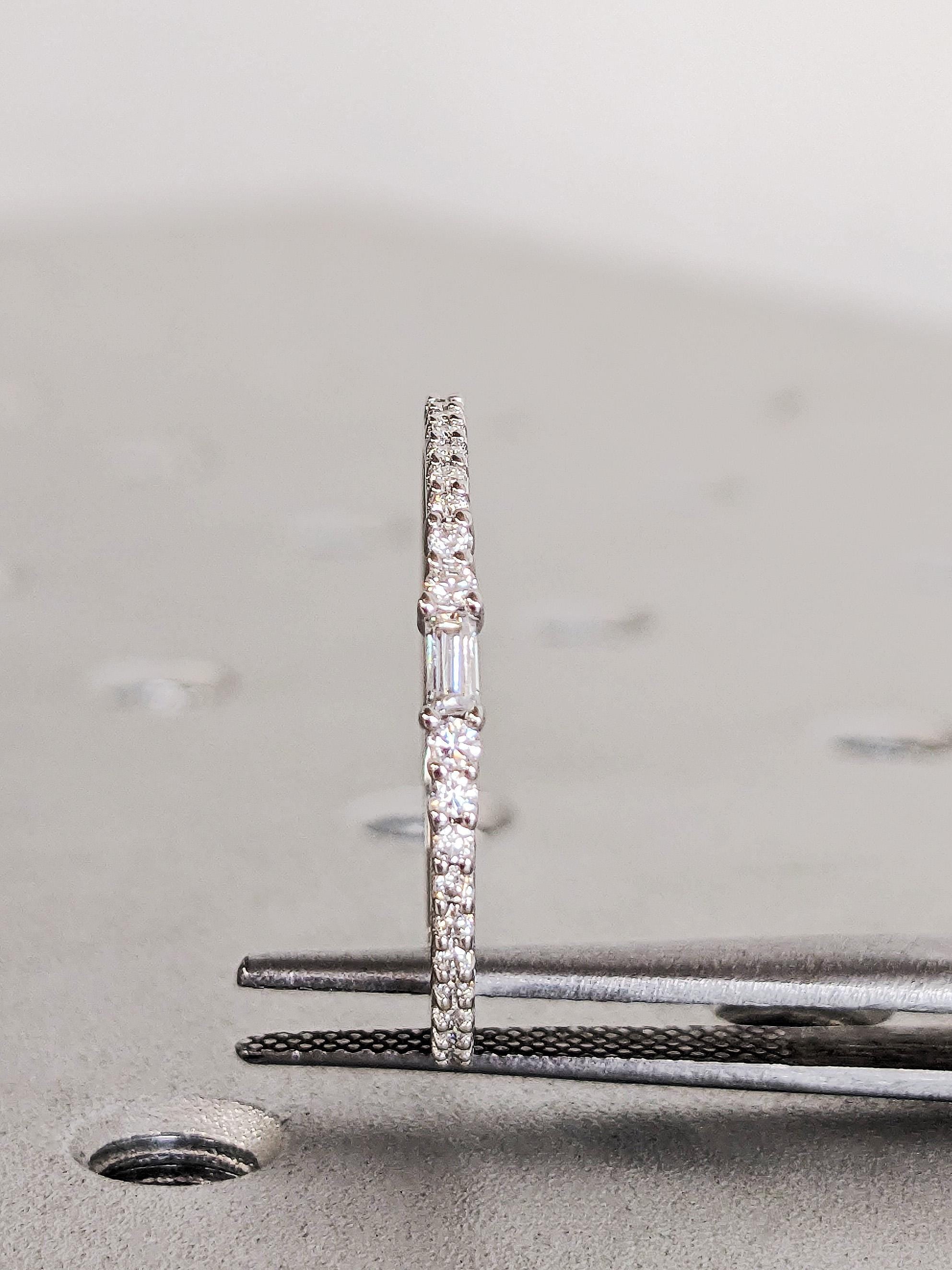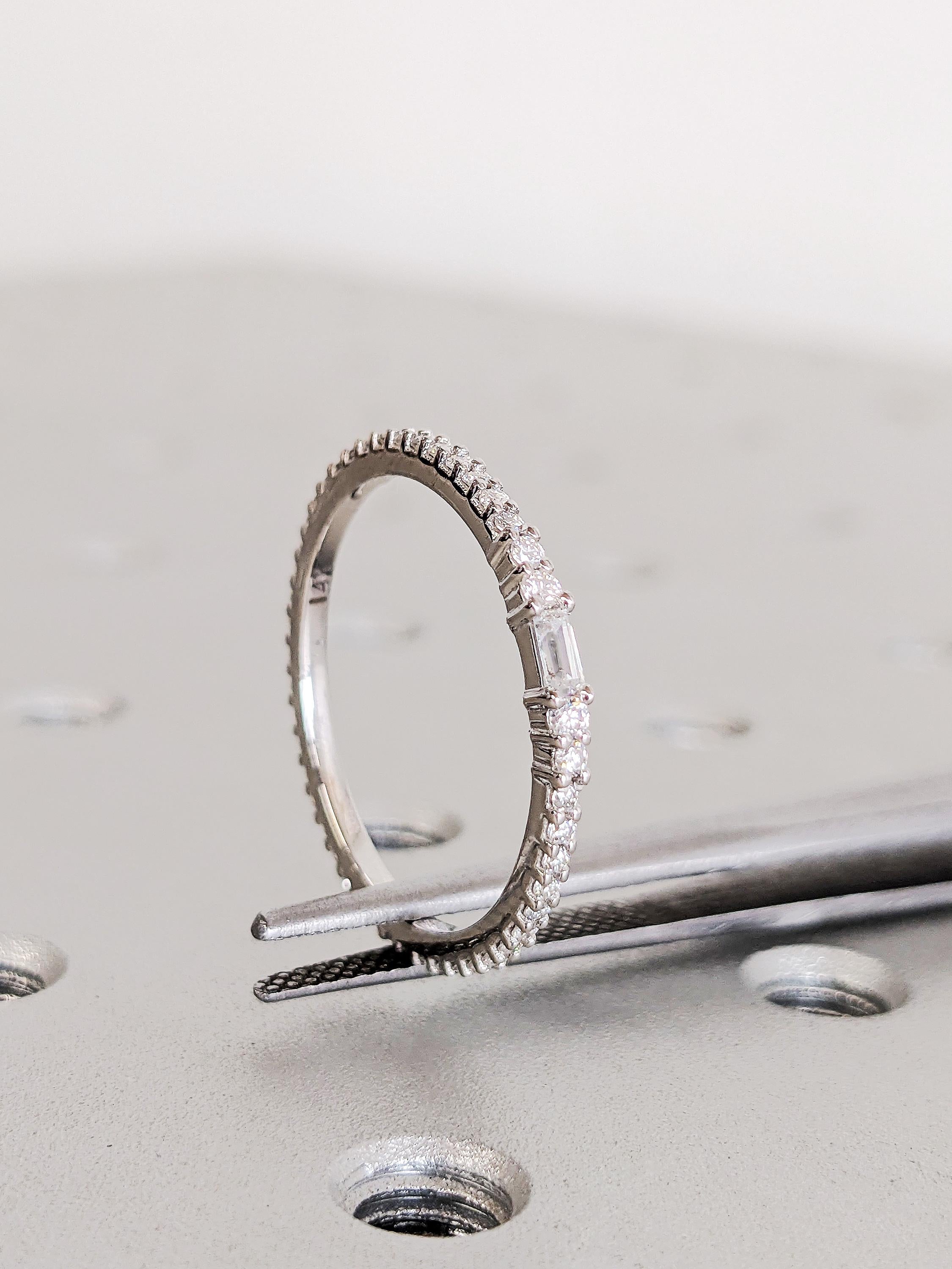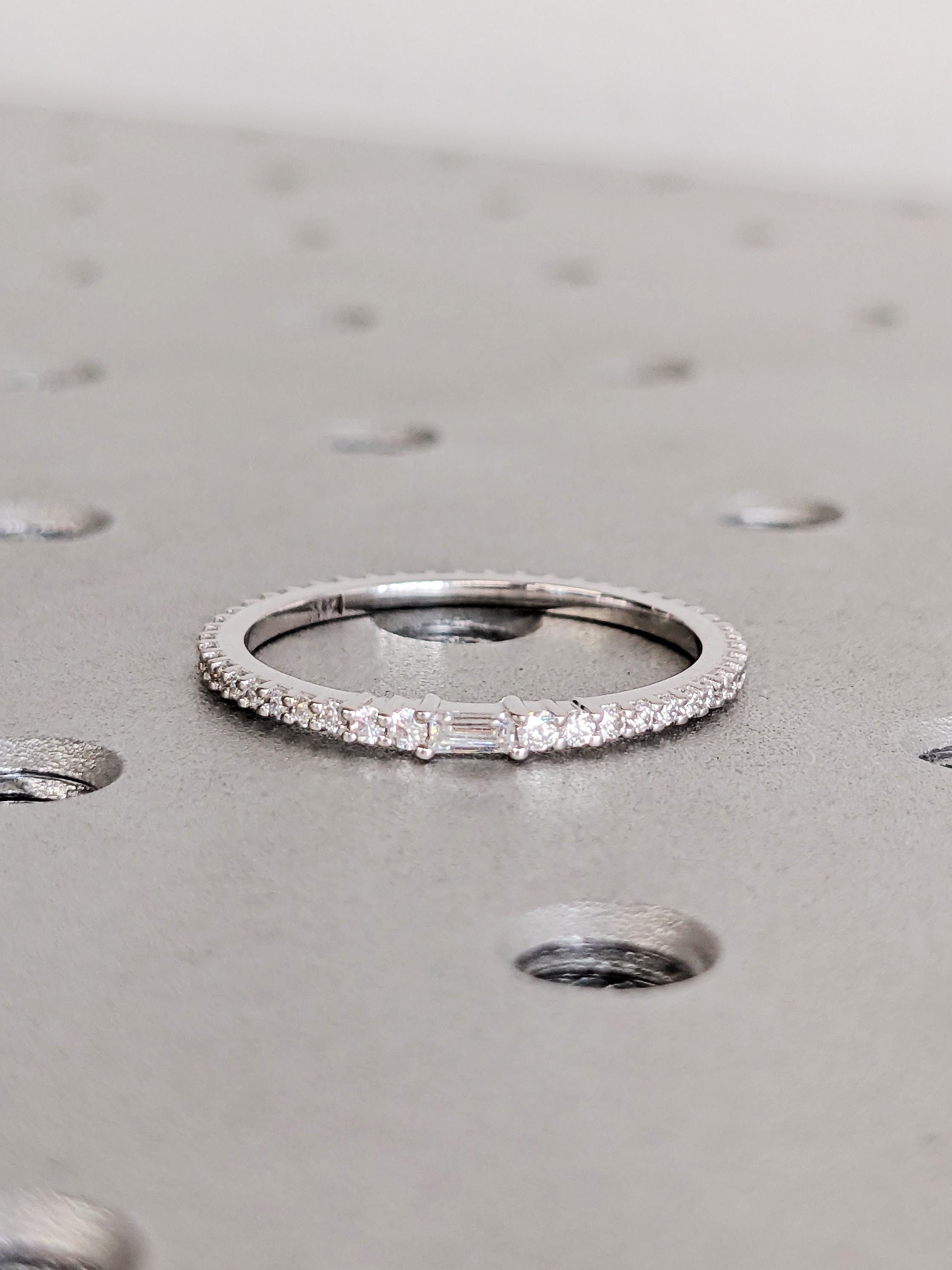 Diamond Stacking Ring, Dainty 14K Gold White Diamond Wedding Band, Thin Full Eternity Matching Engagement Ring, Custom Bridal Jewelry