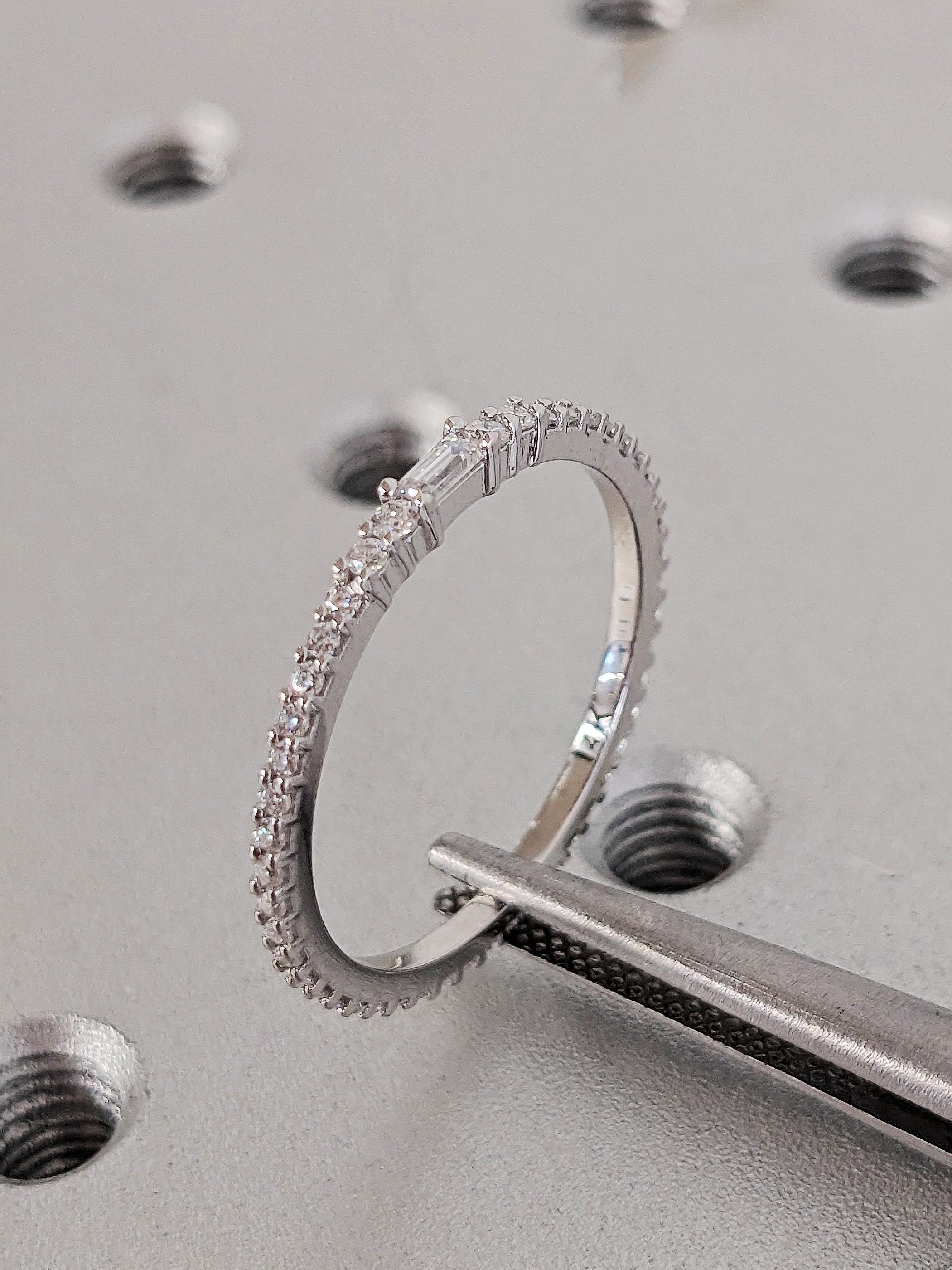 Timeless and dazzling, this dainty eternity ring features alternating round cut diamonds, available in Natural Diamond, Lab Diamond and Moissanite. Handmade with precision, it shines beautifully on its own or pairs perfectly with our engagement rings as a complementary stacking piece.