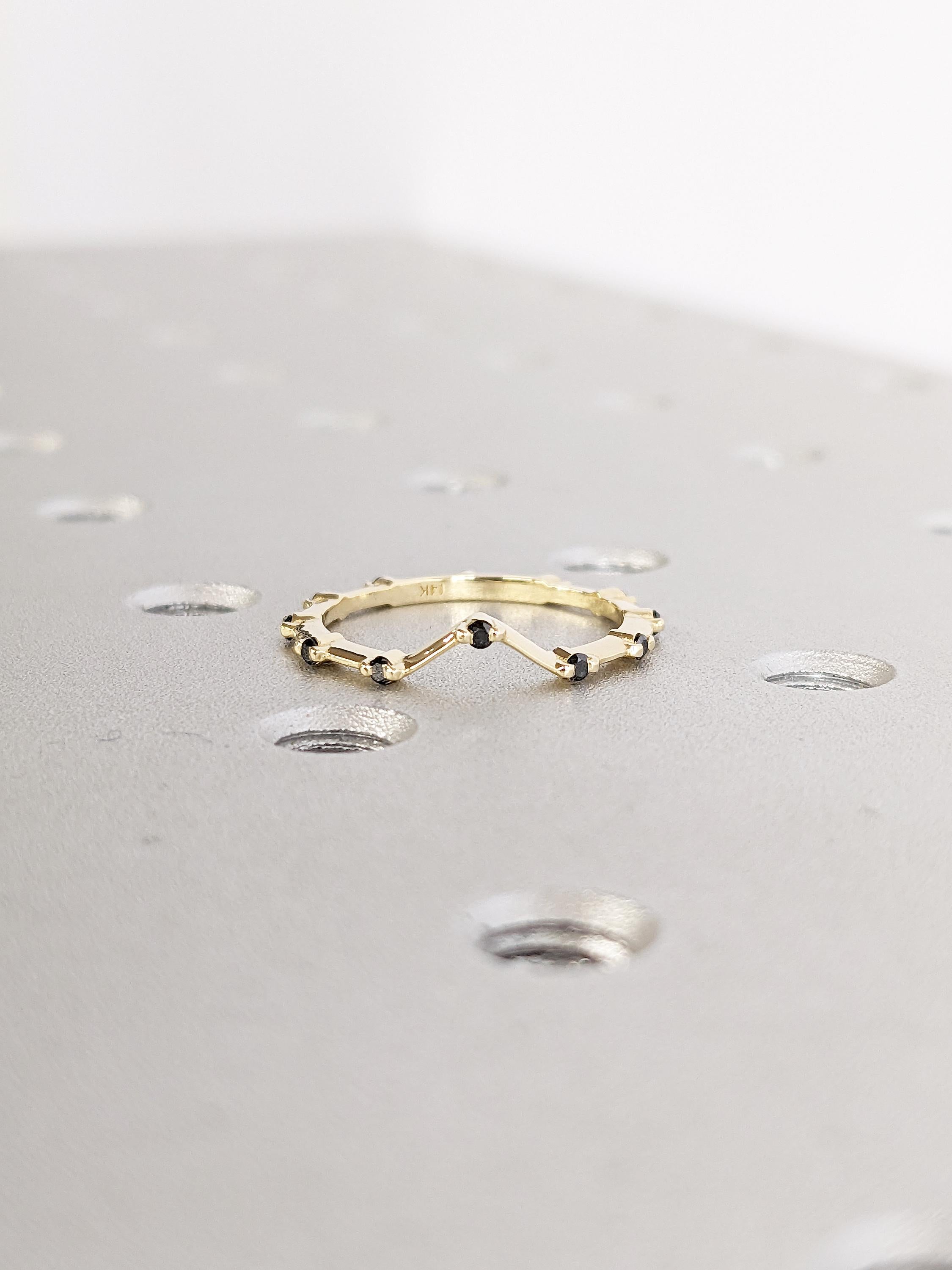 Diamond Wedding Band, 14k Solid Gold Ring, Unique Black Diamond Band, Chevron Wedding Band, Diamond Eternity Ring, Stackable Rings for Women