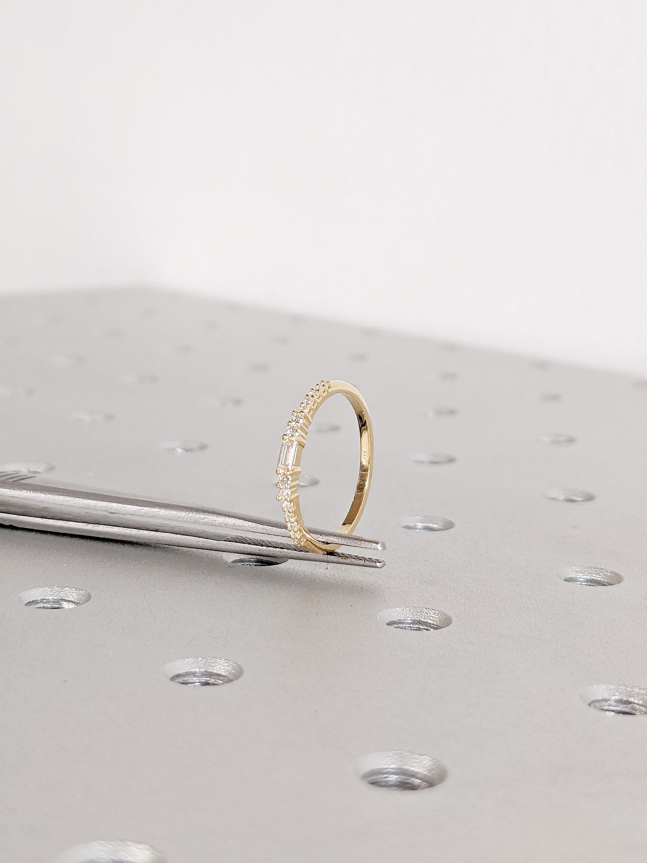 This elegant Diamond matching ring features a refined mix of baguette and round side stones, offered in Natural Diamond or Moissanite for versatile brilliance. Each stone is securely prong set to highlight its radiance and symmetry, creating a design that feels both classic and modern. Ideal as a wedding band, stacking ring, or complement to an engagement ring, it transitions effortlessly from daily wear to special occasions. With its graceful profile and timeless sparkle, this bridal ring adds lasting beauty to any jewelry collection.