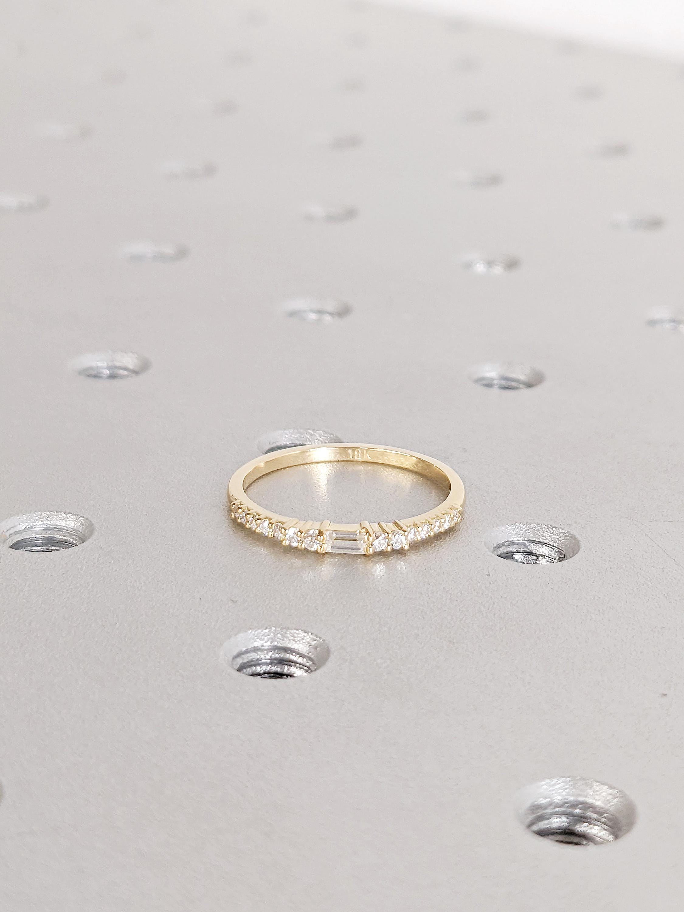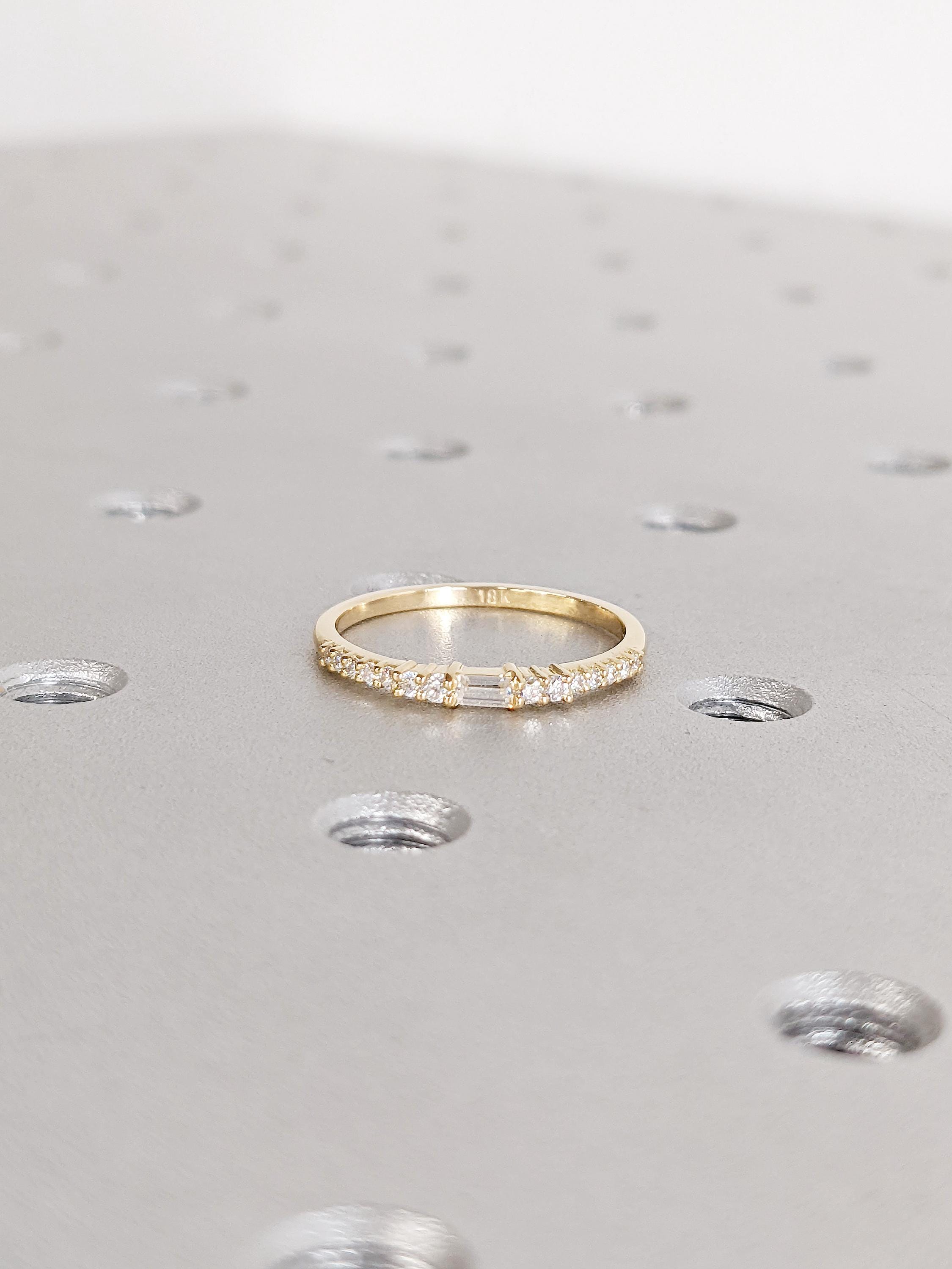 Diamond Wedding Band: Baguette and Round Prong Setting Stacking Ring