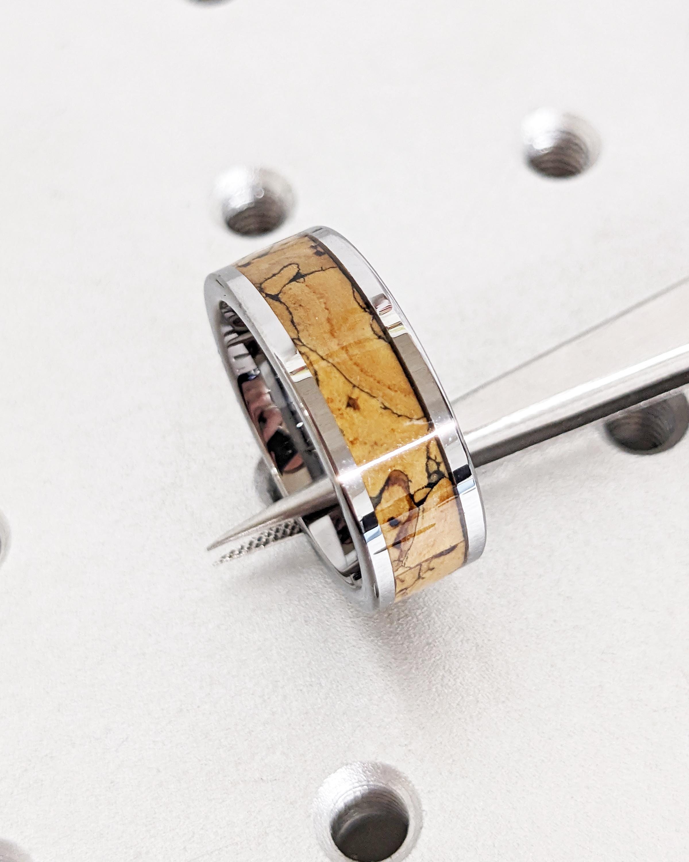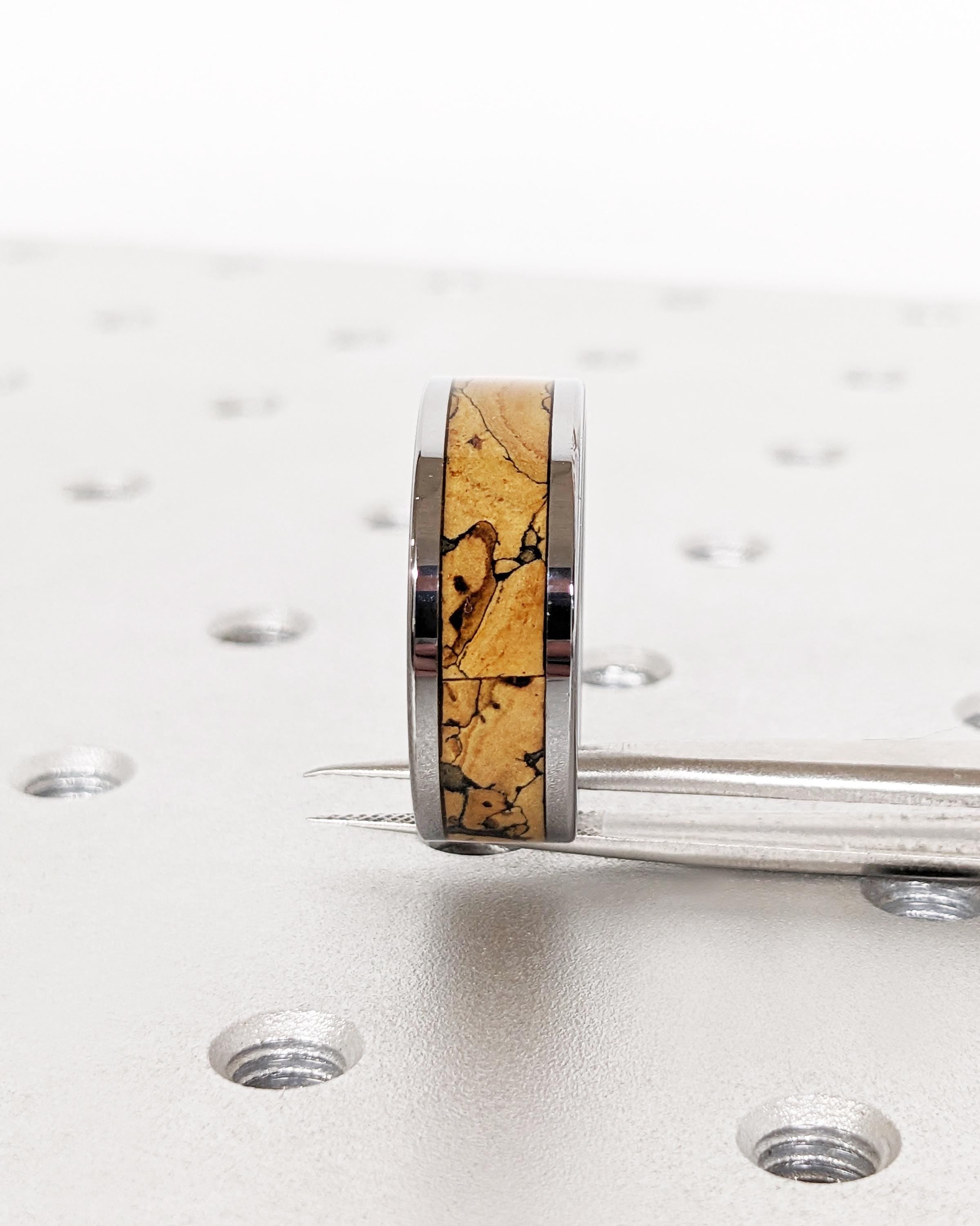 This distinctive tungsten ring combines modern design with prehistoric inspiration. The polished silver surface contrasts beautifully with the intricate dinosaur fossil pattern inlay. Crafted for durability, it’s hypoallergenic, cobalt-free, and designed with a comfort fit interior. A perfect wedding band or gift for men who love adventure, history and craftsmanship.