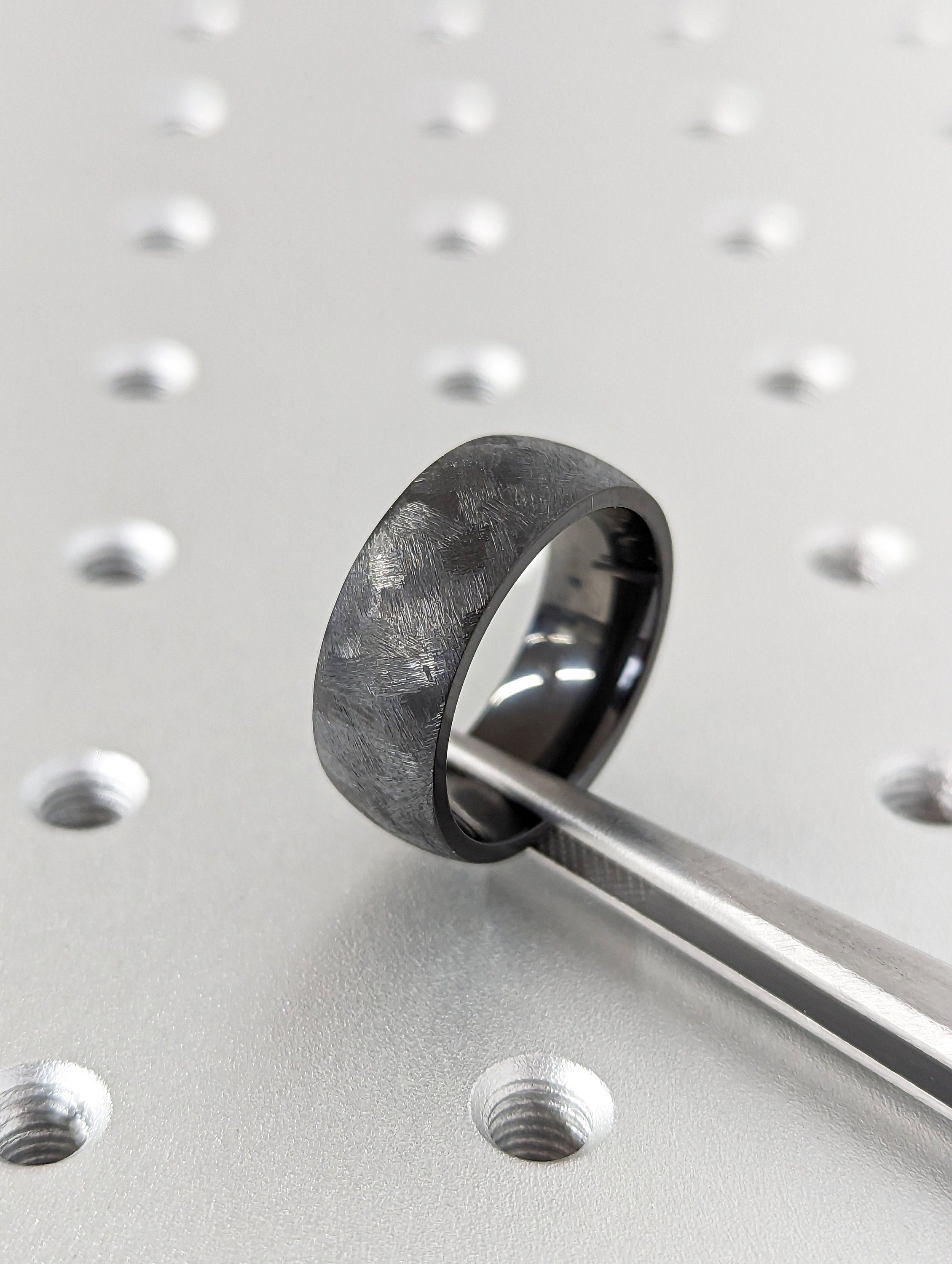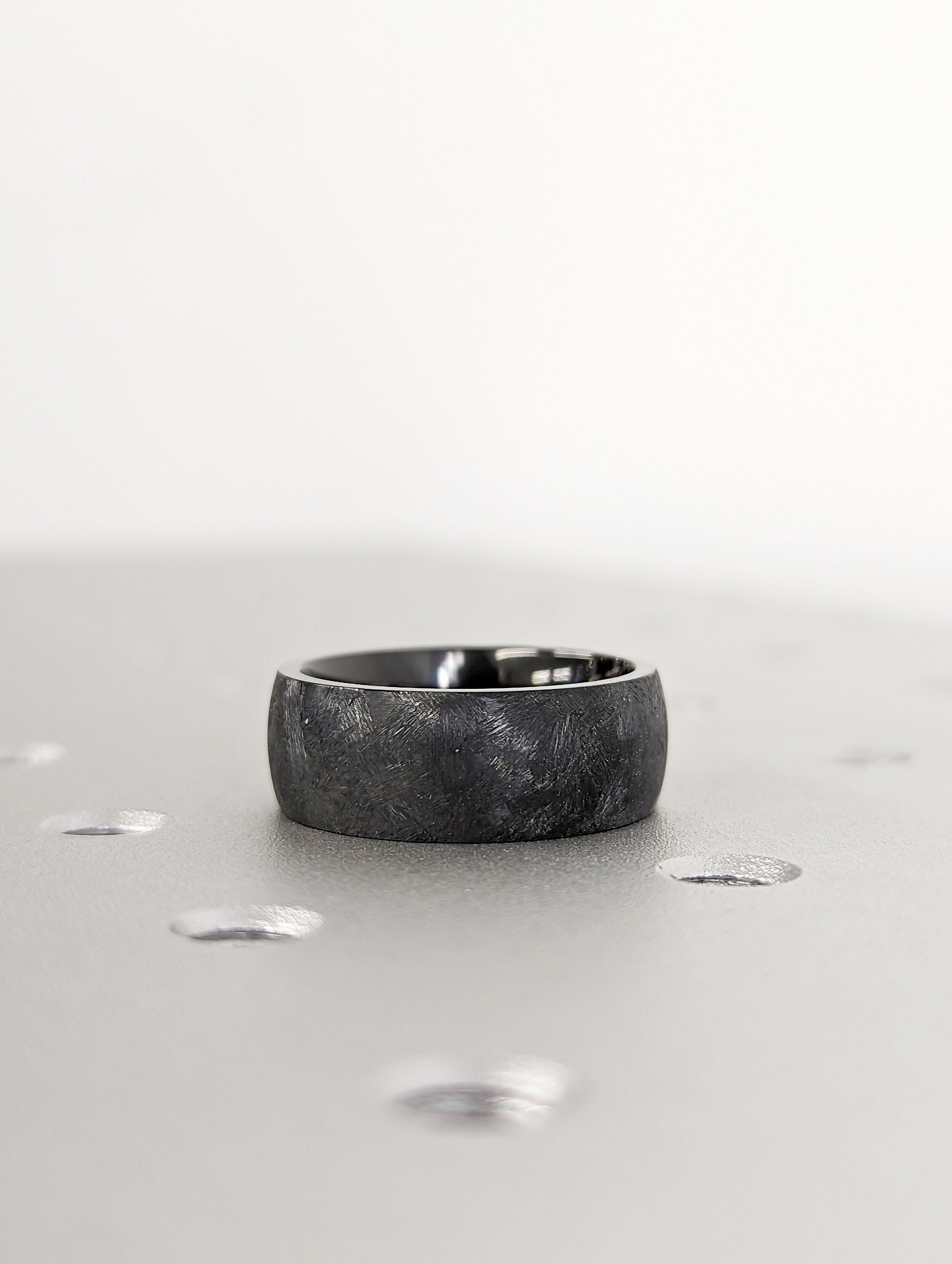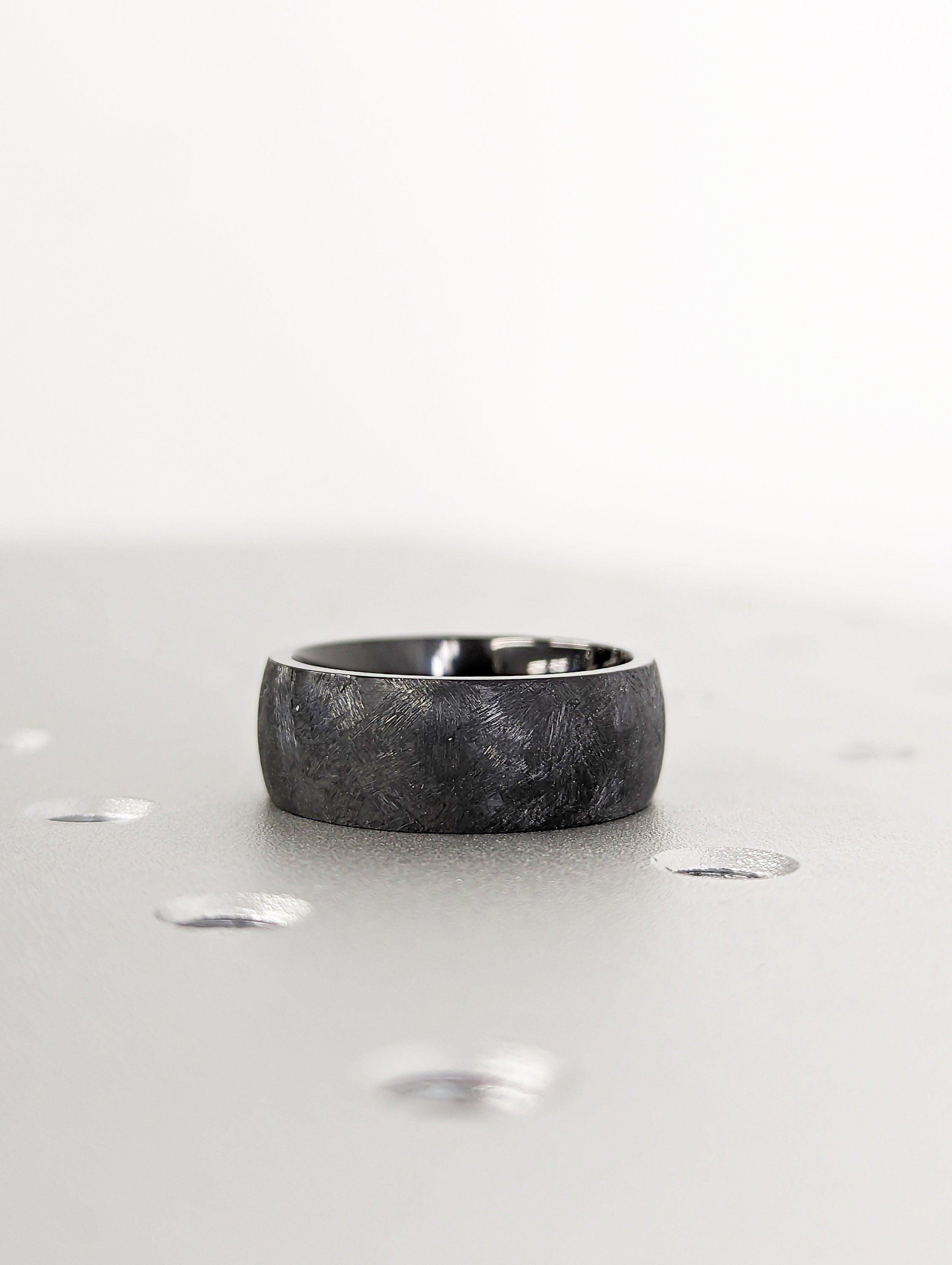 Distressed Black Zirconium Handcrafted Wedding Band, 8mm Mens Black Wedding Ring, Mens Wedding Bands, Unique Wedding Band, Boho Wedding Band