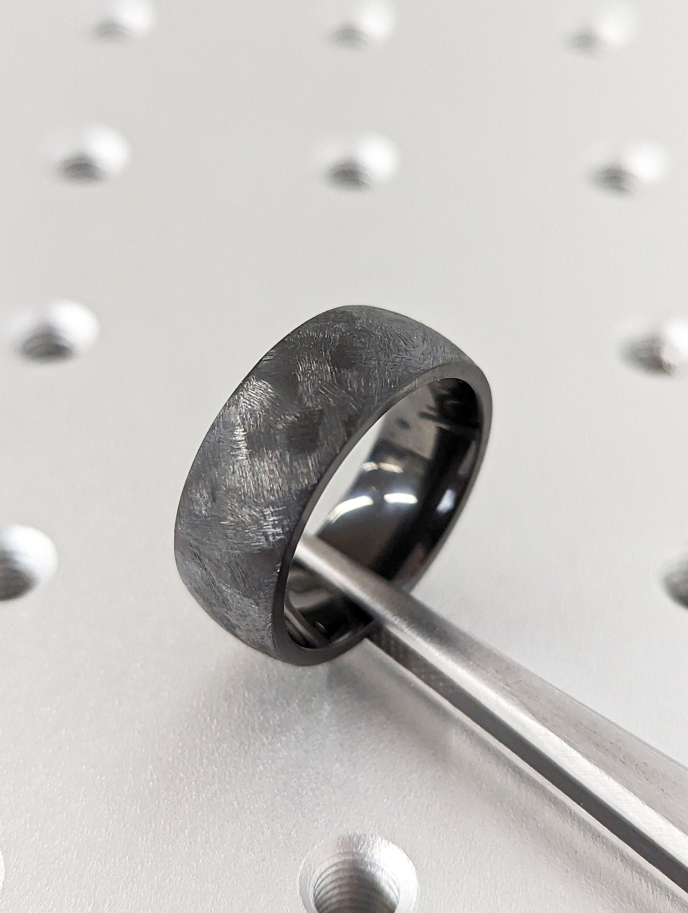 This hand made ring is crafted of the finest quality black zirconium. One of our unique custom handmade Black Zirconium ring, this piece is made with the greatest of care, the black color of the piece with its brushed finish are forever beautiful, a ring suiting as a men's wedding band as well.