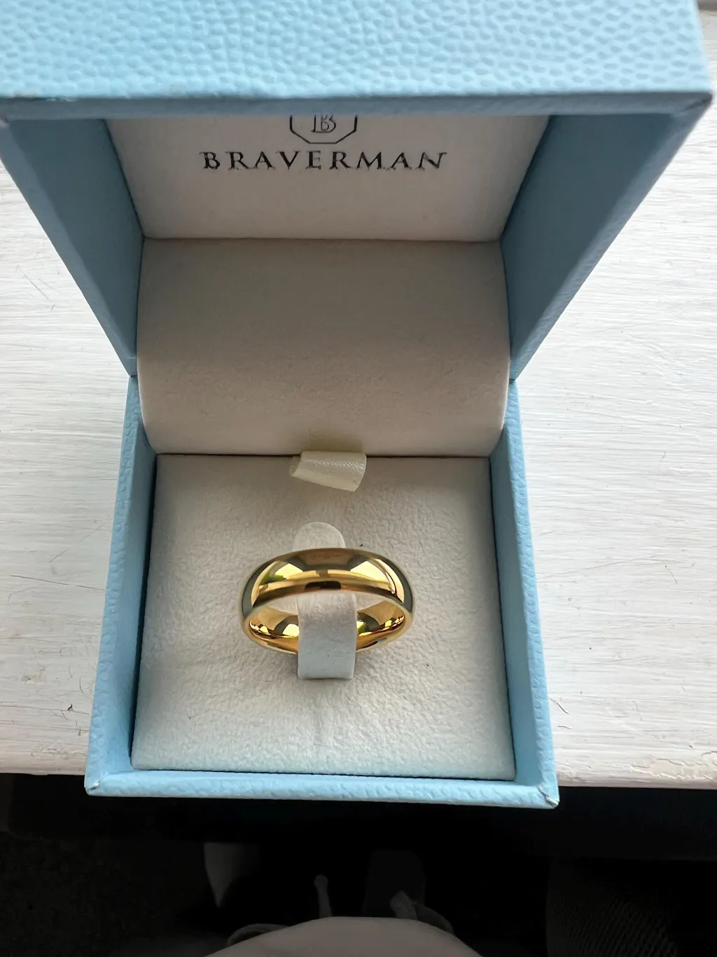 This hand made ring is crafted of the finest quality tungsten carbide. The ring is a domed 14k yellow gold plated shiny high polished. It's comfort fit and can be as a day to day accessory or as men’s wedding band or engagement ring.