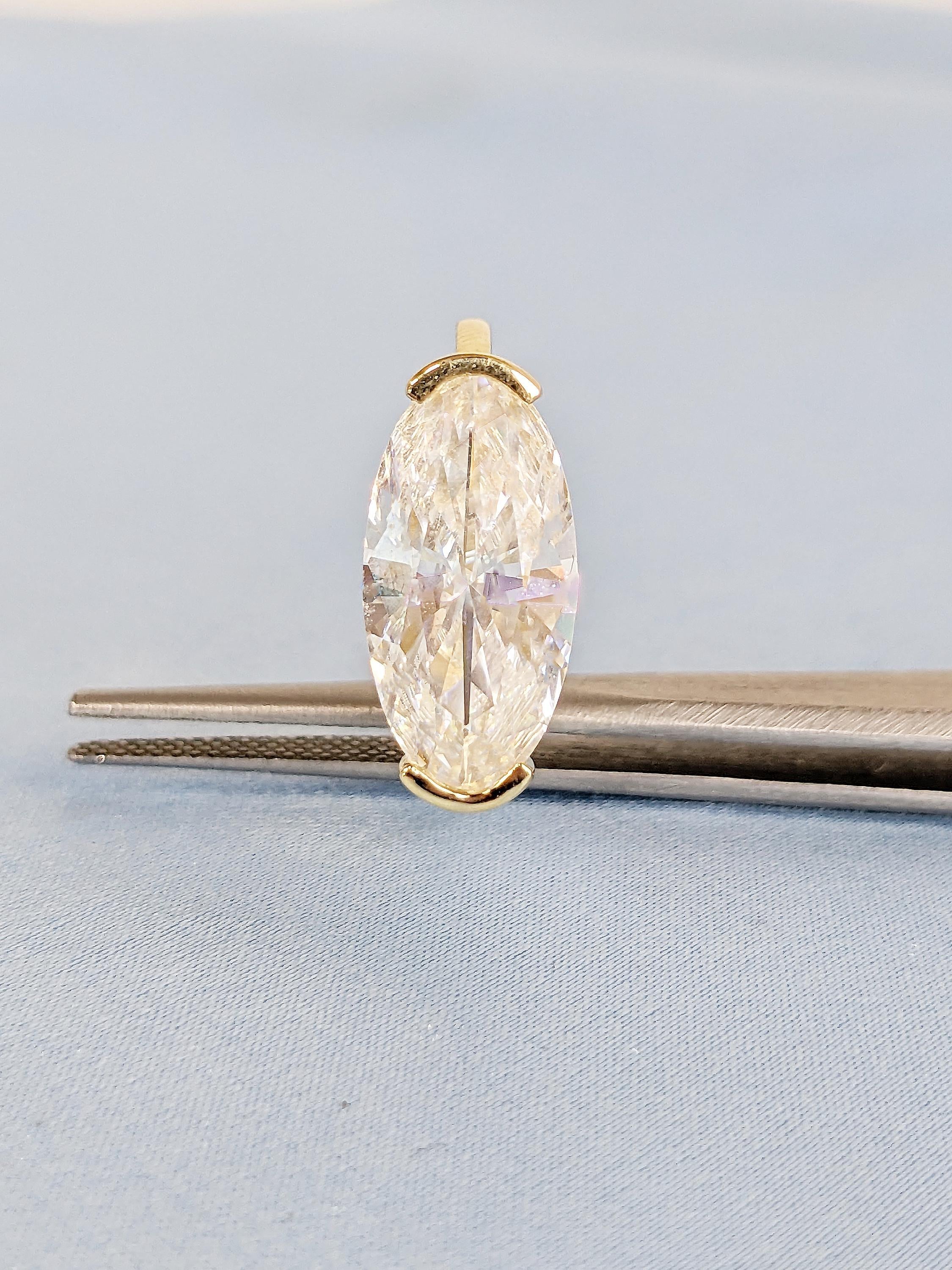 Elongated Oval Lab Diamond Engagement Ring, East West Half Bezel Ring, 14k Gold Solid Ring