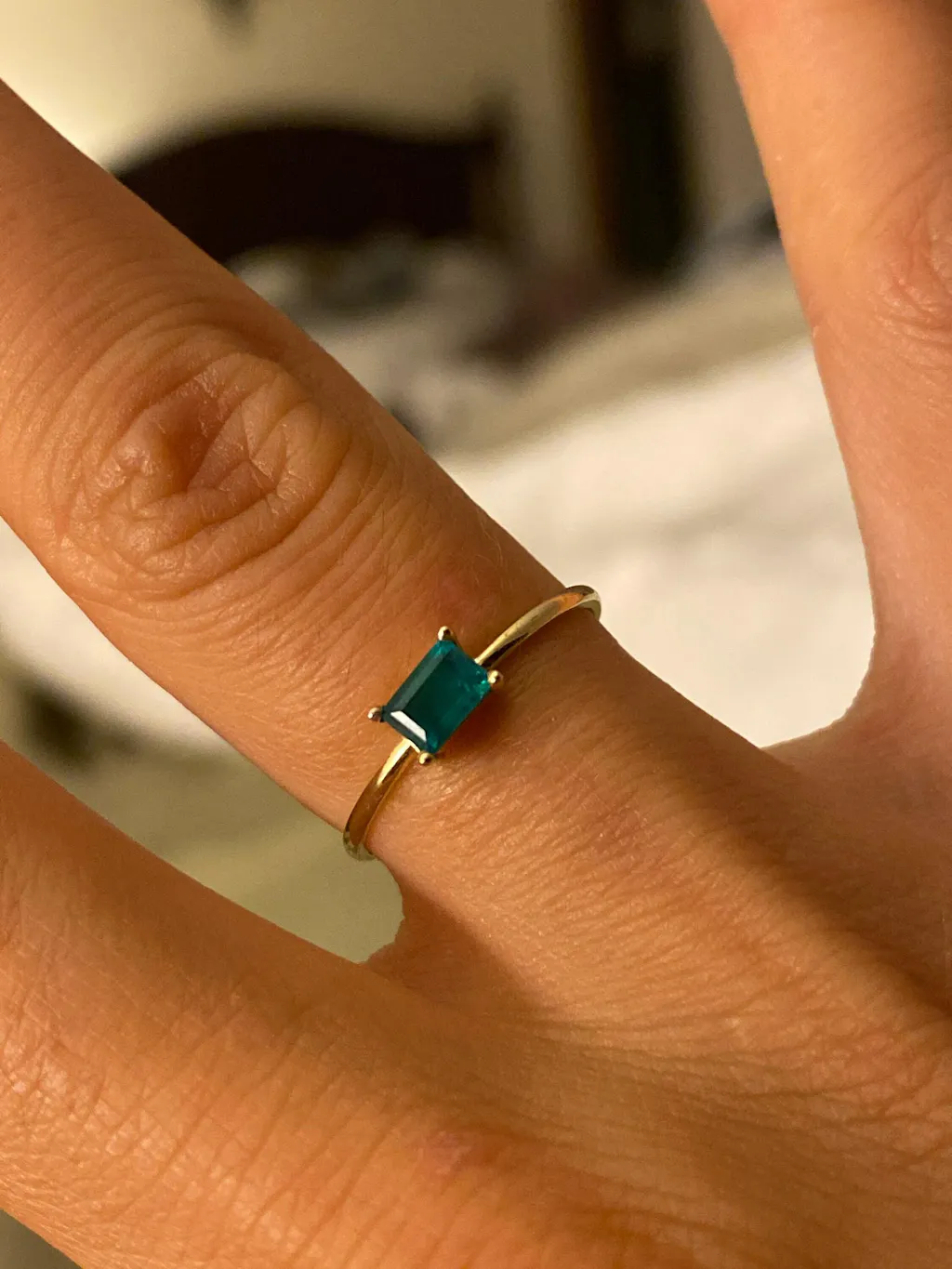 Emerald Ring, Baguette Emerald Ring, 14k Solid Gold Minimalist Emerald Ring, Stacking Emerald Ring, Emerald Jewelry, May Birthstone