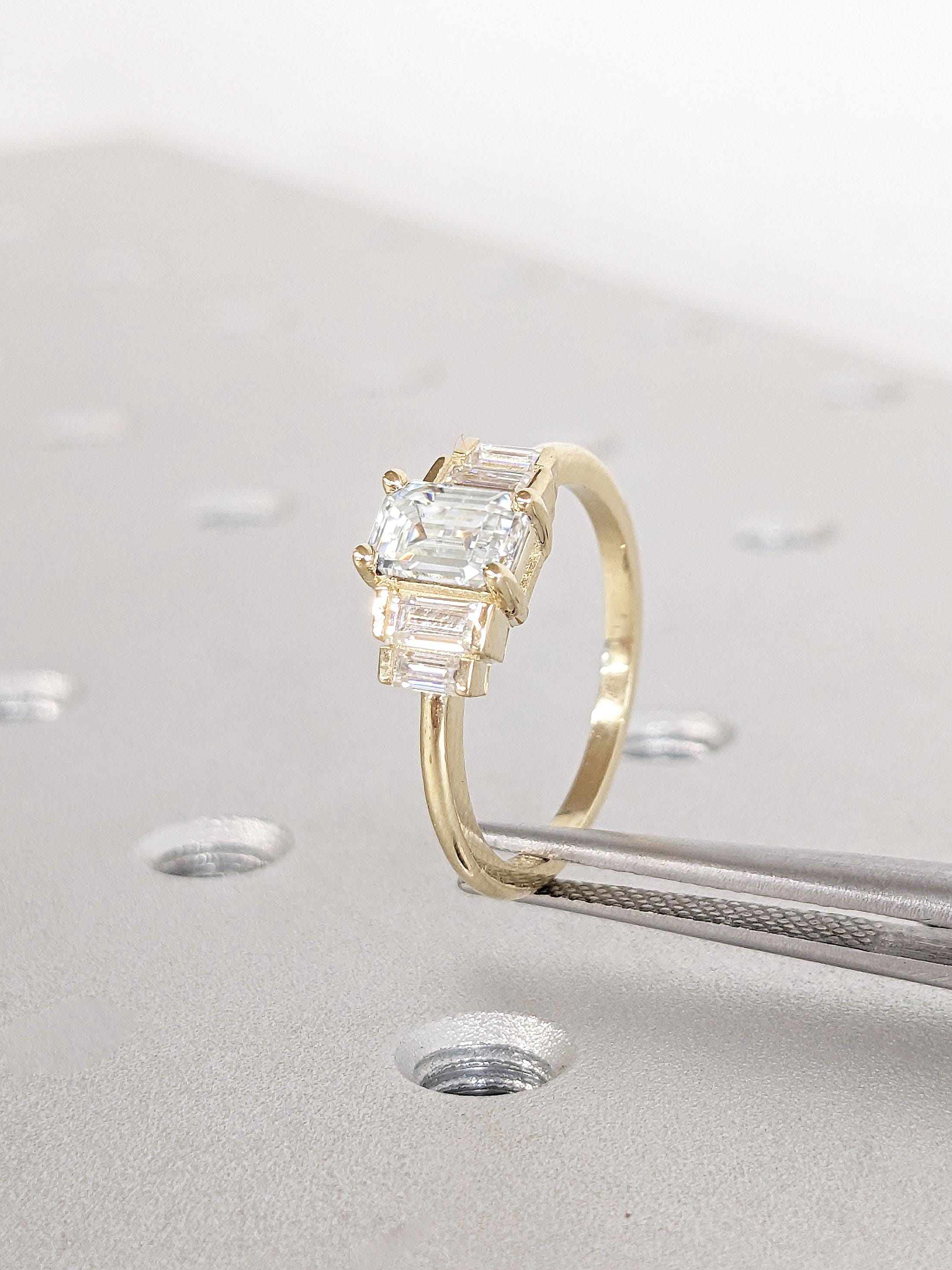 Emerald cut Engagement Ring | Baguette Moissanite Cluster Ring | 0.5ct, 1 Carat Moissanite 14k Yellow Gold Ring | Multi Stone Bridal Ring