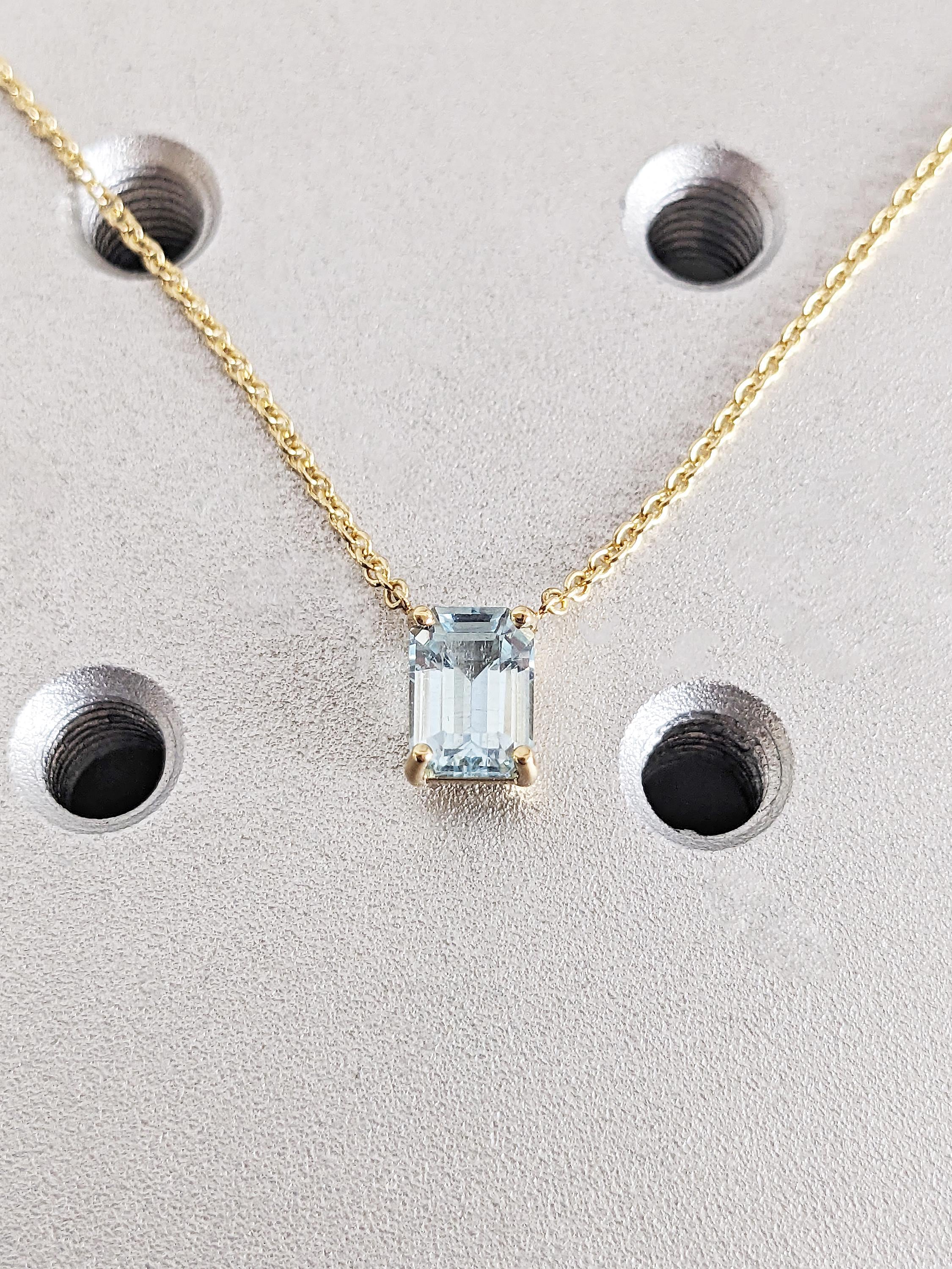 Emerald Cut Lab Aquamarine Floating Necklace, 18K Yellow Gold Lab Aquamarine Pendant, Custom Engagement Necklace, March Birthstone Jewelry