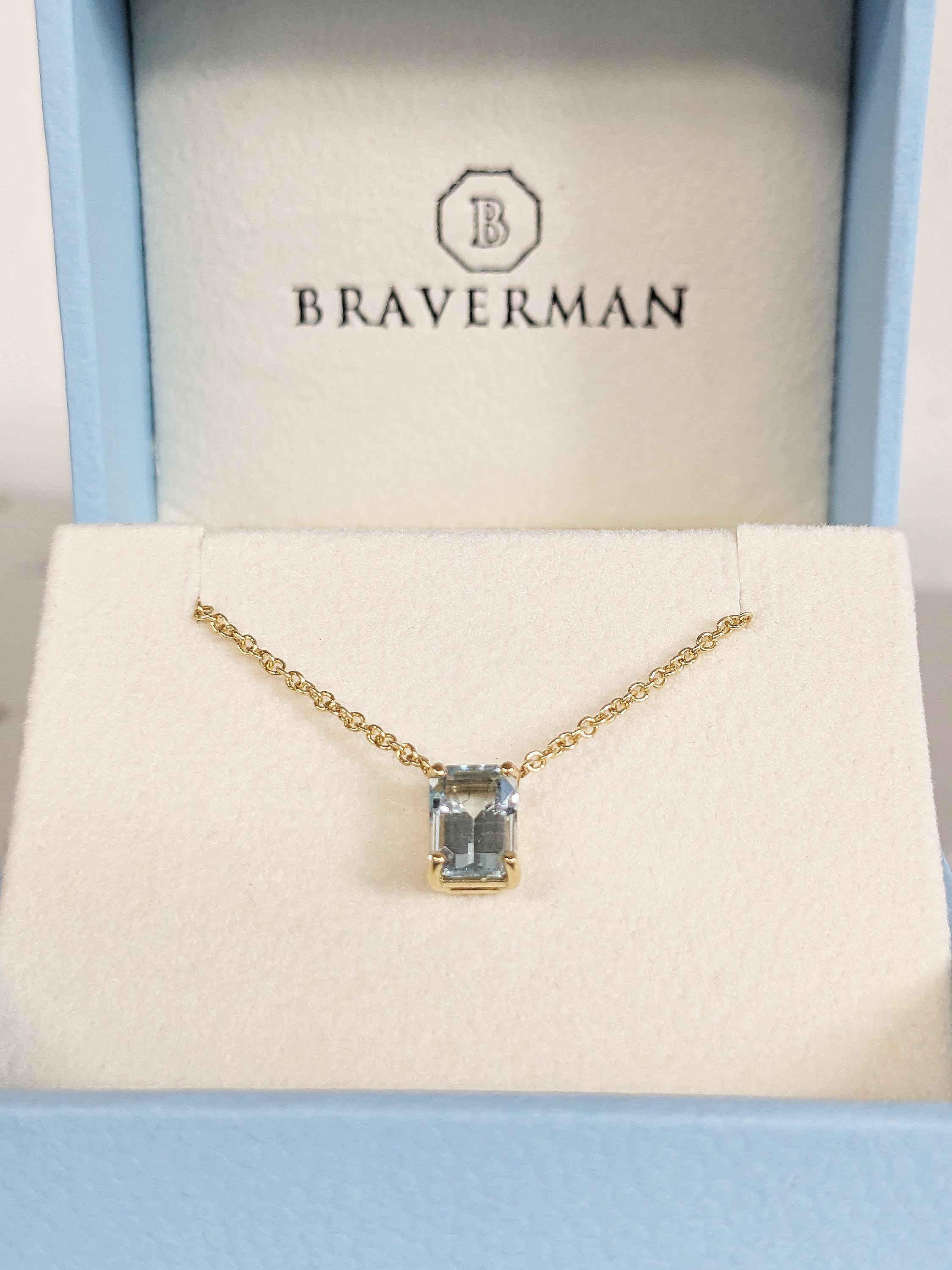 This necklace captures the elegance of love with a striking emerald cut Lab Aquamarine in a floating design. Celebrated as the March birthstone and linked to Pisces, Aquamarine is a symbol of harmony, devotion and lasting commitment. Perfect as an engagement necklace, a thoughtful gift or a meaningful piece of everyday jewelry.