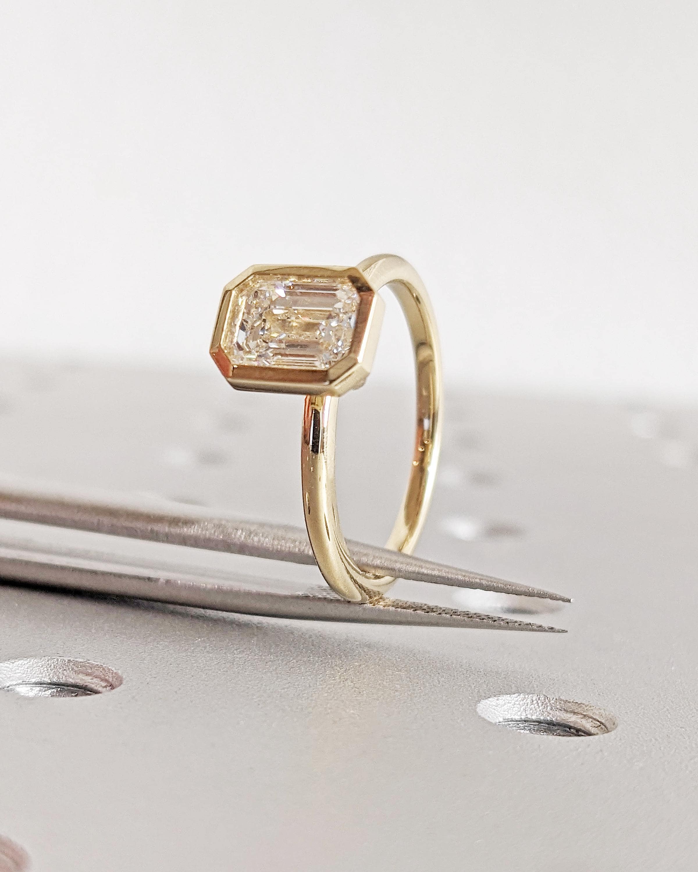 Emerald Cut Lab Created Diamond Engagement Ring - 14K Yellow Gold, Bezel Setting, CVD Diamond Art Deco Ring, Minimalist Solitaire Ring