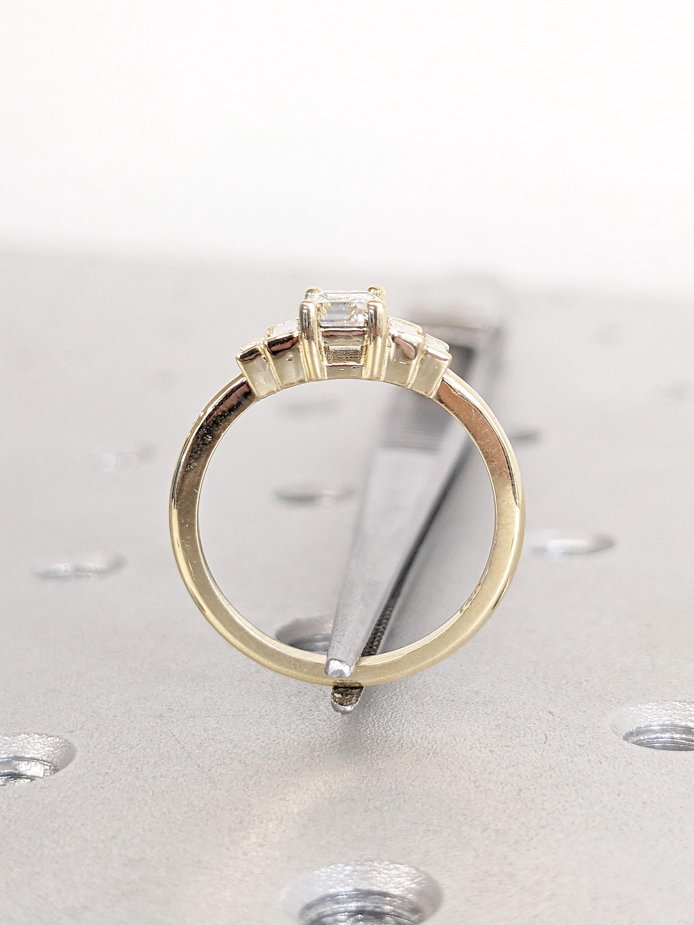 Emerald Cut Lab Grown Diamond Ring, Dainty 14k Solid Gold Diamond Wedding Ring, Art Deco Anniversary Ring, Unique Proposal Ring, Bridal Gift