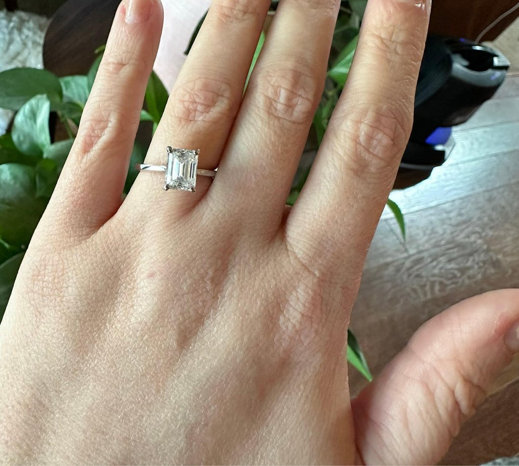 I placed the order and within an hour Oren was in contact with me confirming my order and setting a timeline for arrival. The ring arrived weeks earlier than I anticipated and it is absolutely perfect. I ordered the 3ct Moissanite equivalent set in white gold.