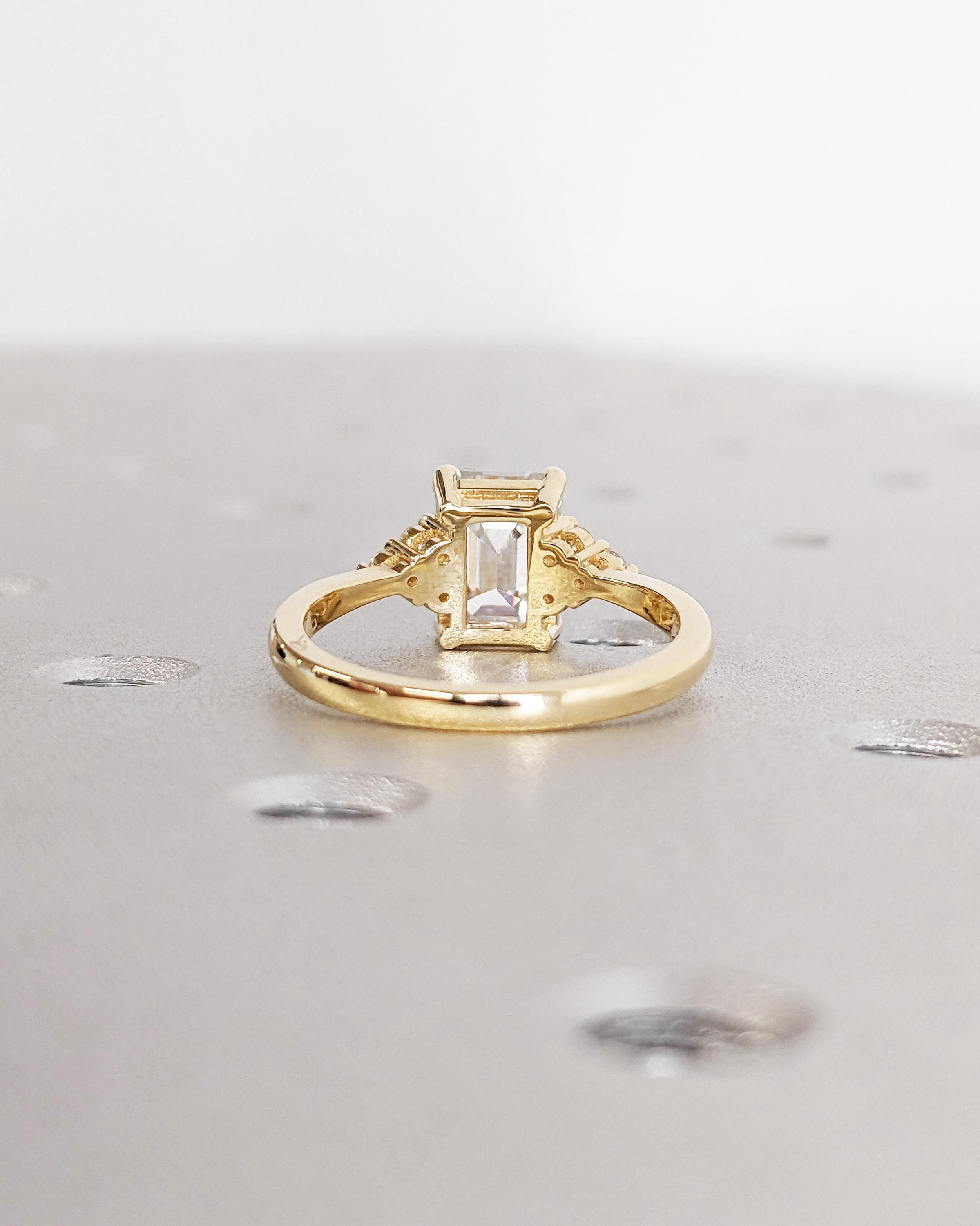 Emerald Cut Moissanite Ring 14K Yellow Gold Engagement Ring, Unique Art Deco Diamond Cluster Engagement Ring Vintage Bridal Anniversary Ring
