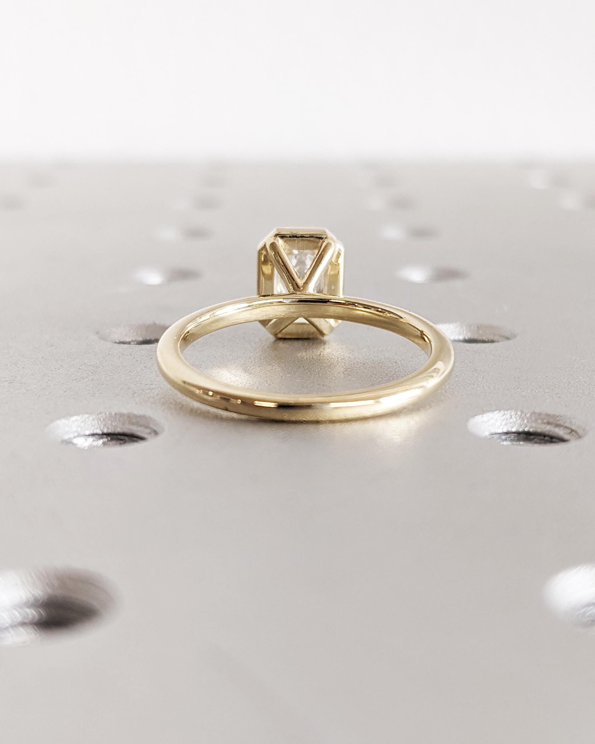 Emerald Cut Moissanite Solitaire Engagement Ring - 14K Yellow Gold, Bezel Setting, Minimalist Proposal Ring, Statement Wedding Ring