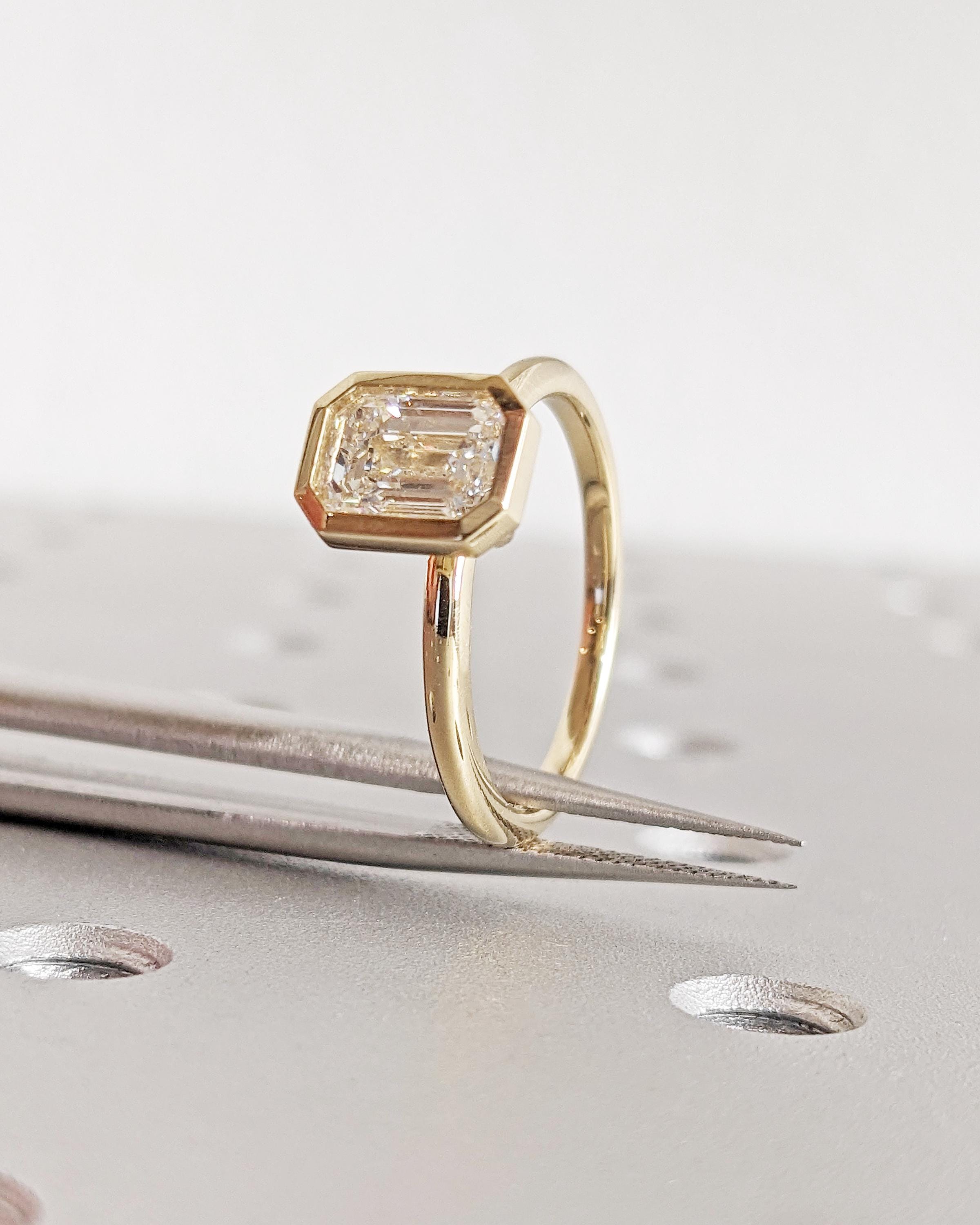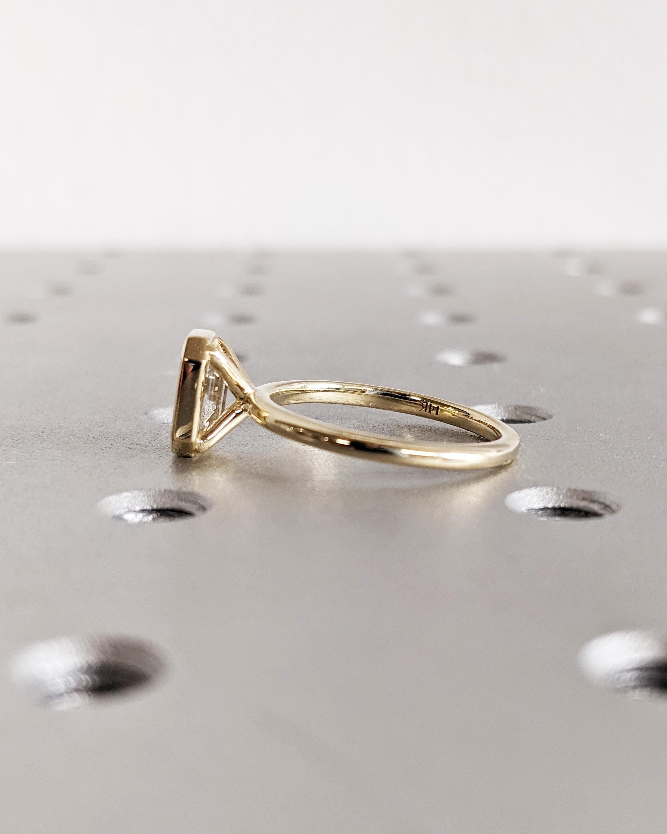 Emerald Cut Moissanite Solitaire Ring / 14K Yellow Gold Engagement Ring / Bezel Setting / Statement Ring / Wedding Anniversary Gift For Her