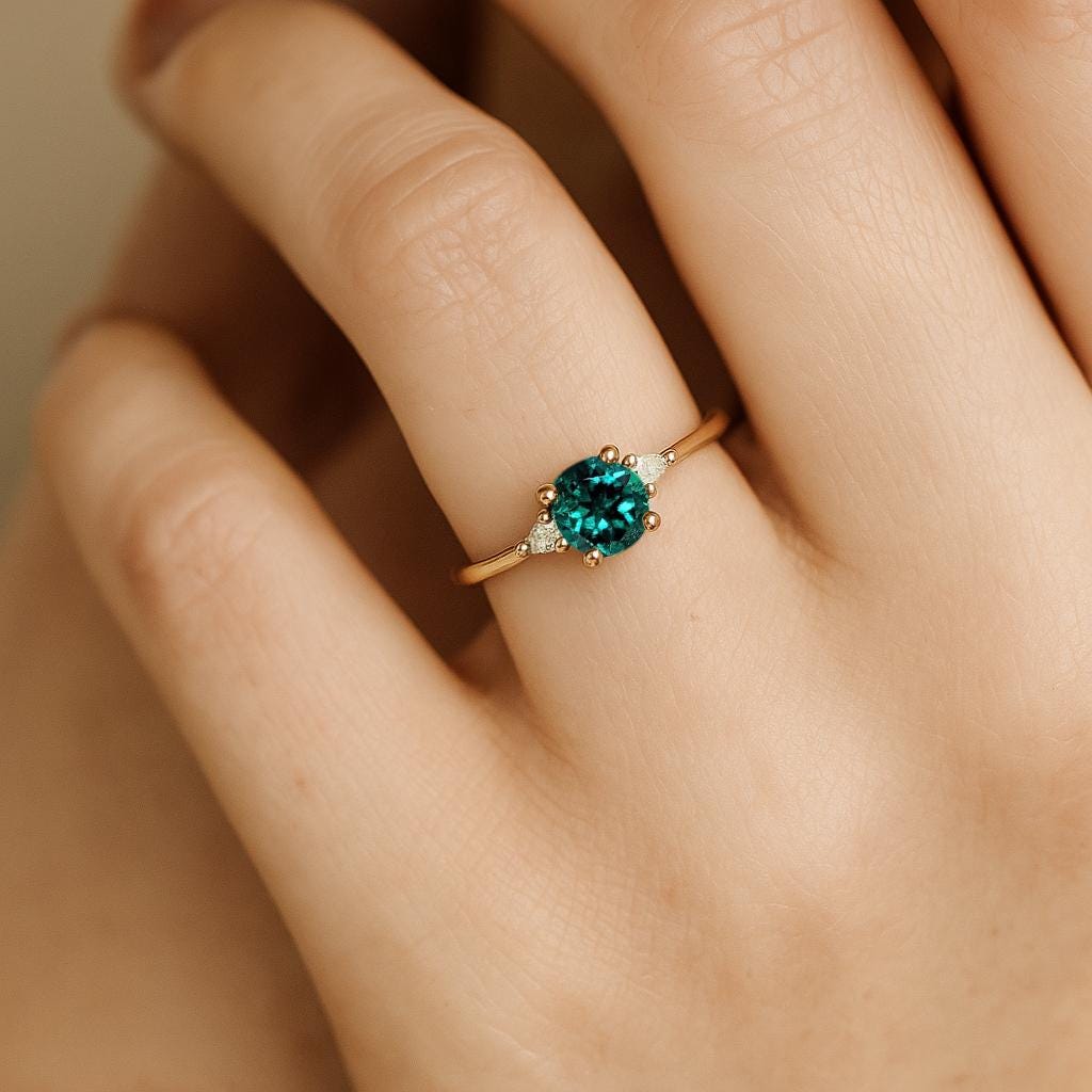 Emerald Engagement Ring, Lab Created Emerald Ring, May Birthstone Ring, Vintage Emerald Ring, Round, Pear Cut Ring, Unique Handmade Rings