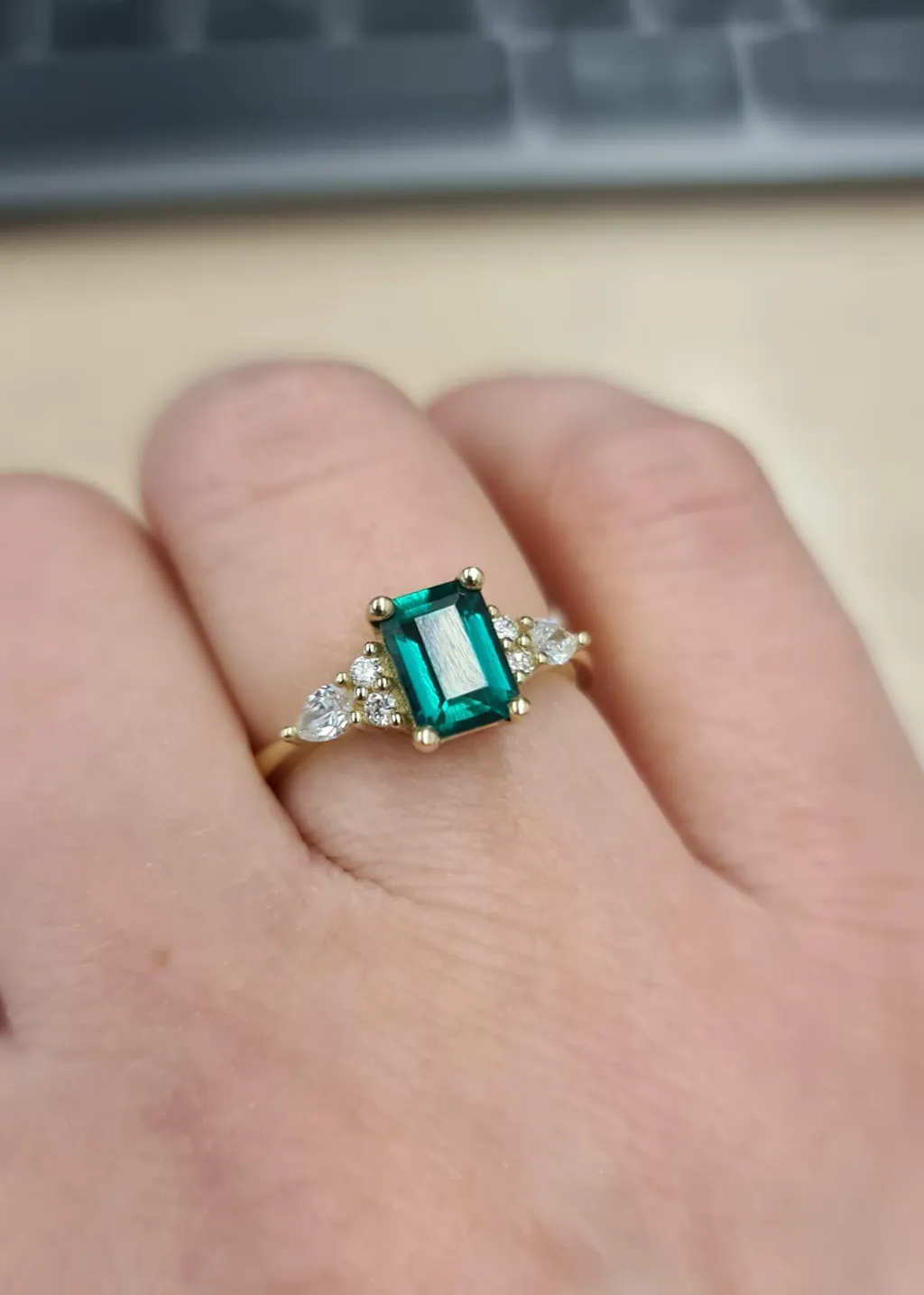 Emerald ring vintage emerald engagement ring 14k yellow gold ring gift unique antique wedding promise anniversary ring for her