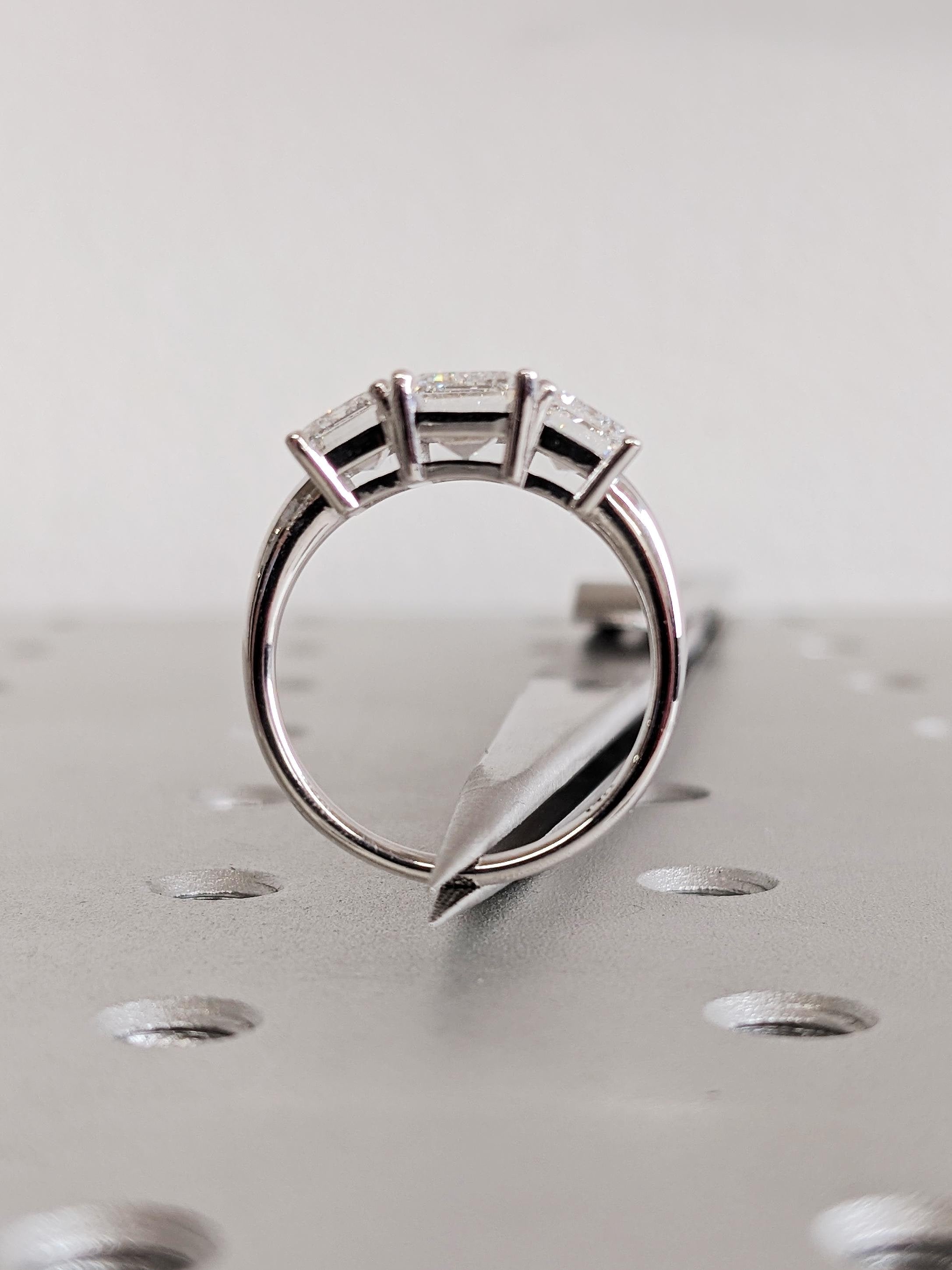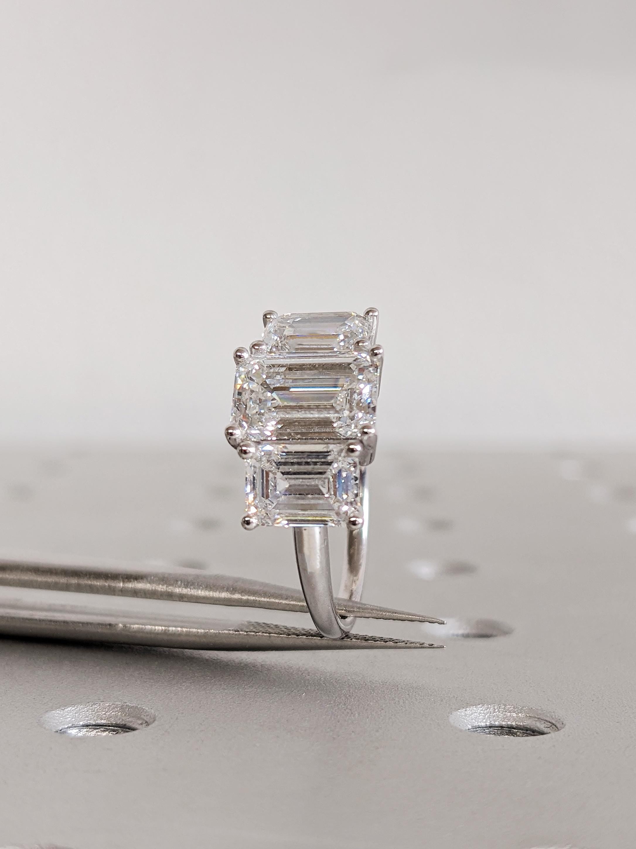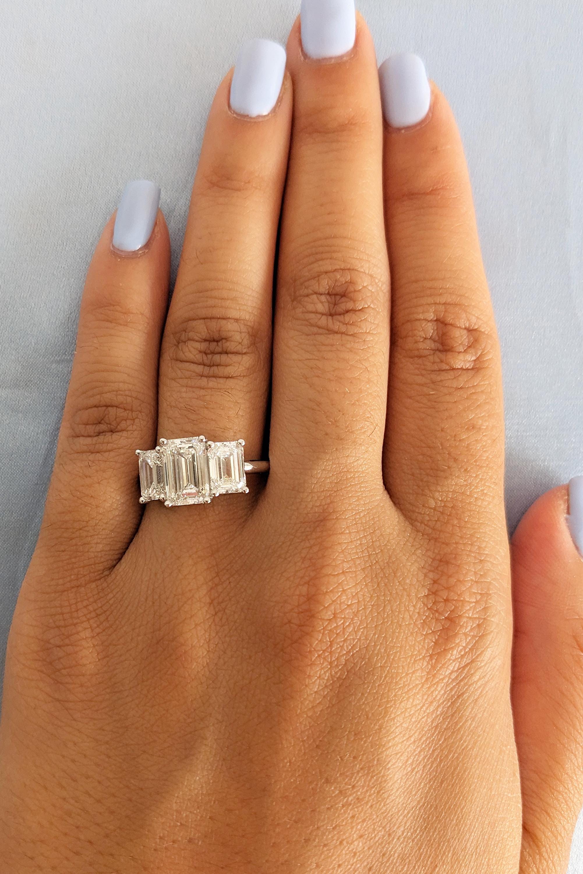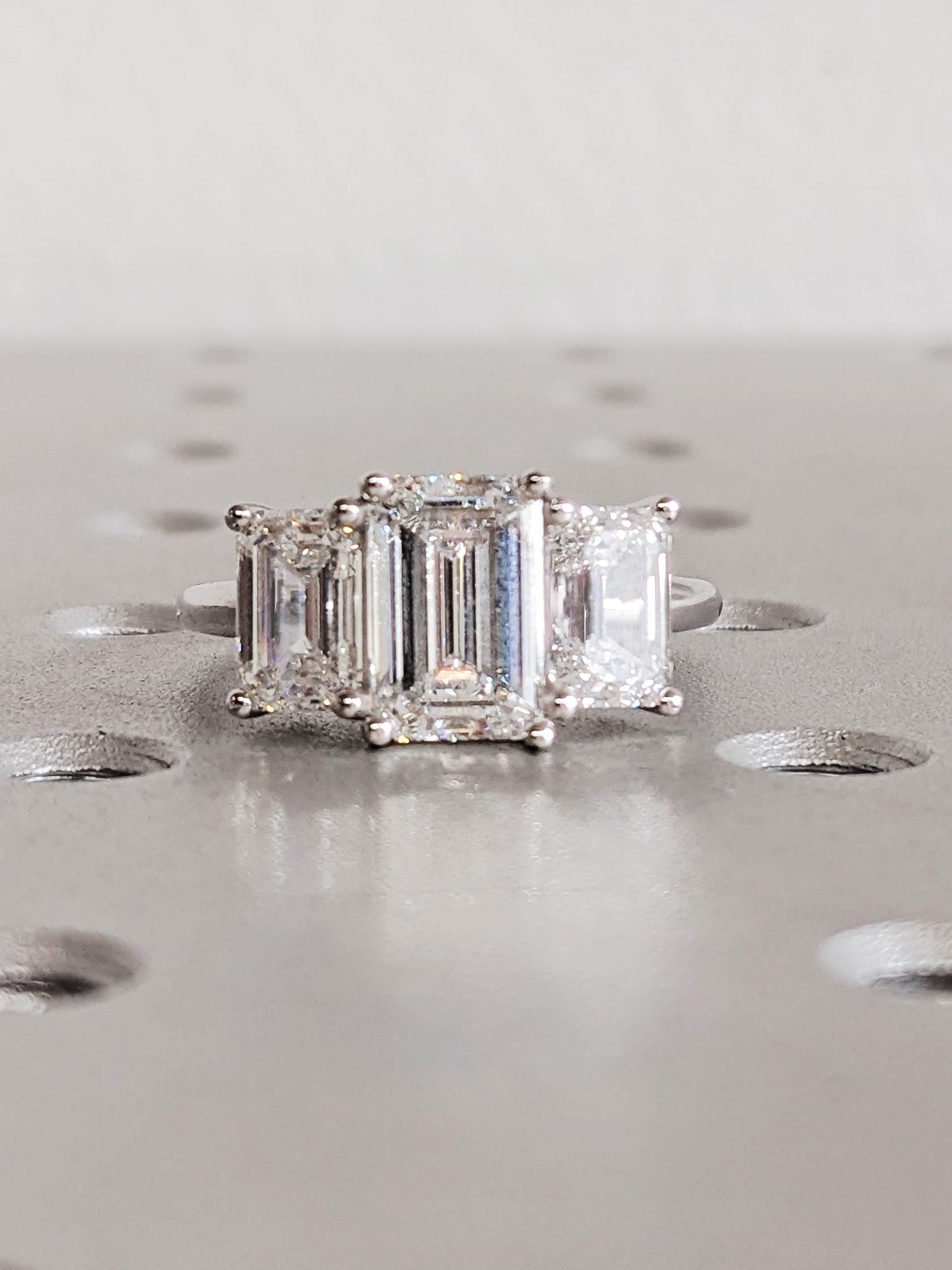 Emerald Trilogy Lab Diamond Ring, 14K White Gold Three Stone Wedding Band, Geometric Modern Engagement Ring