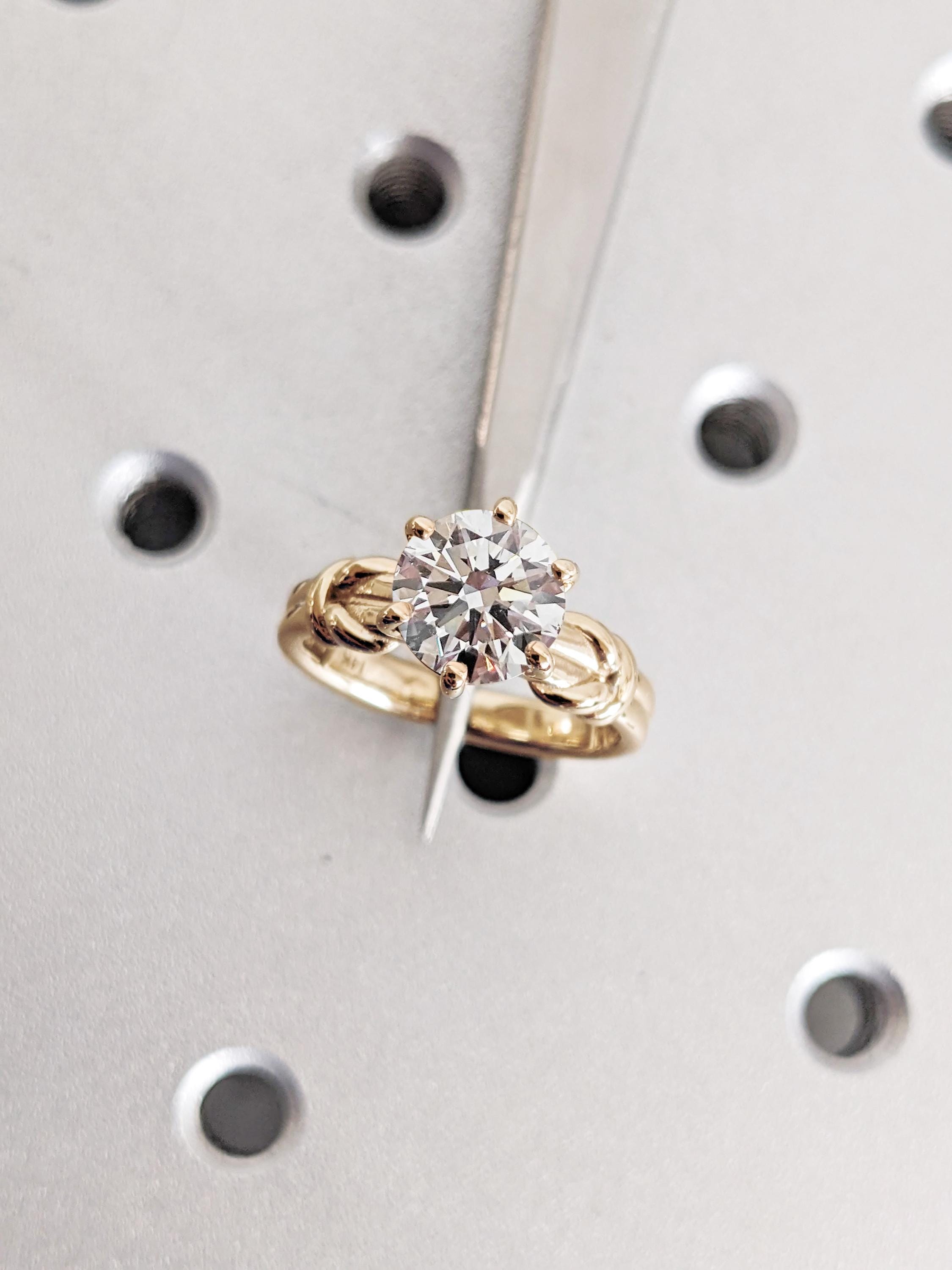 Engagement Moissanite Ring, Yellow Gold Moissanite Anniversary Ring, Round 14K/18K Solid Gold Tie Knot Ring, Unique Solitaire Statement Ring