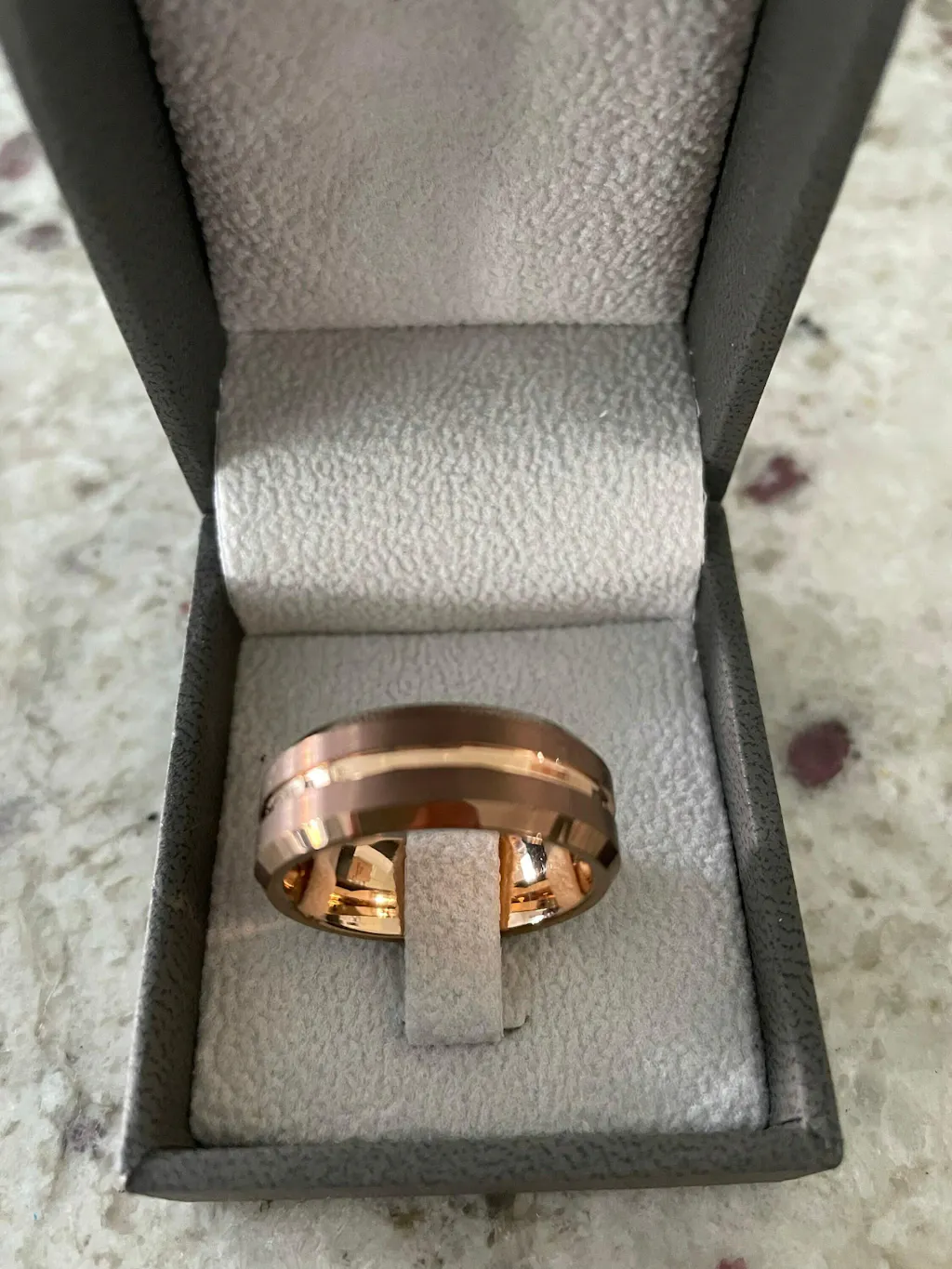 Material - 18k rose gold espresso and Tungsten Carbide
