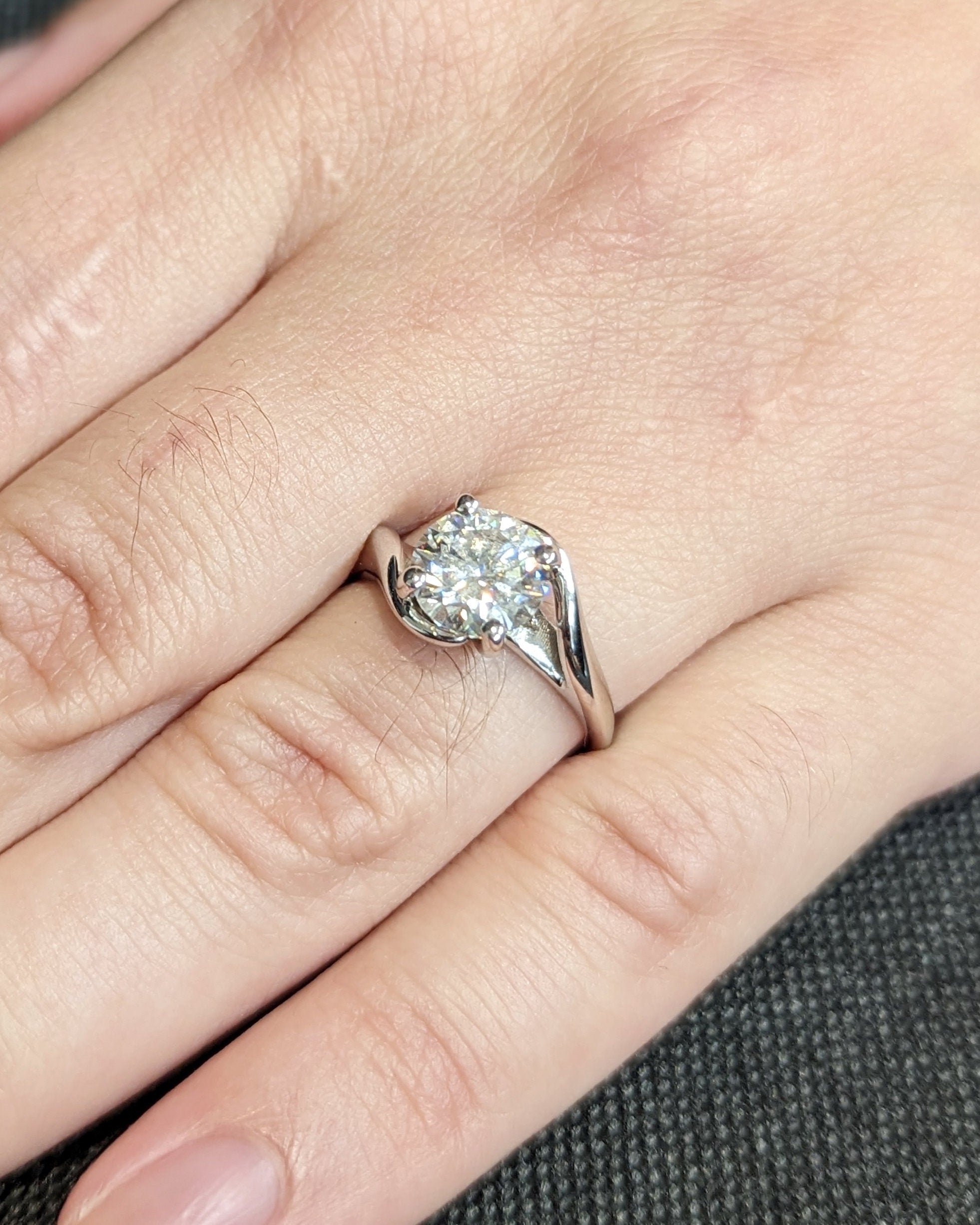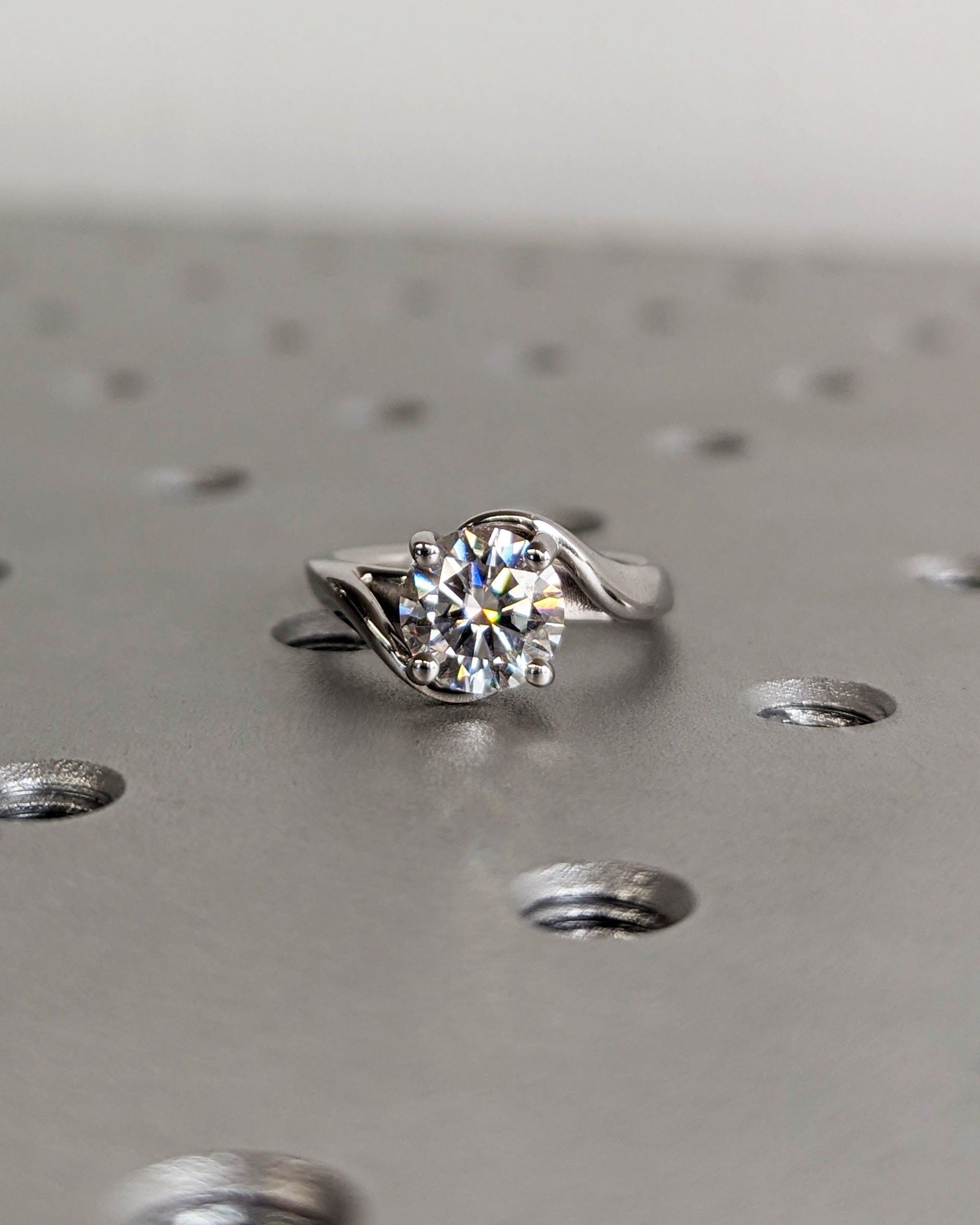 European Shank Engagement Ring, 1.5CT Colorless Moissanite Ring, Wedding Ring in Solid Gold, Anniversary Gifts, Twist Shank, Split Shank
