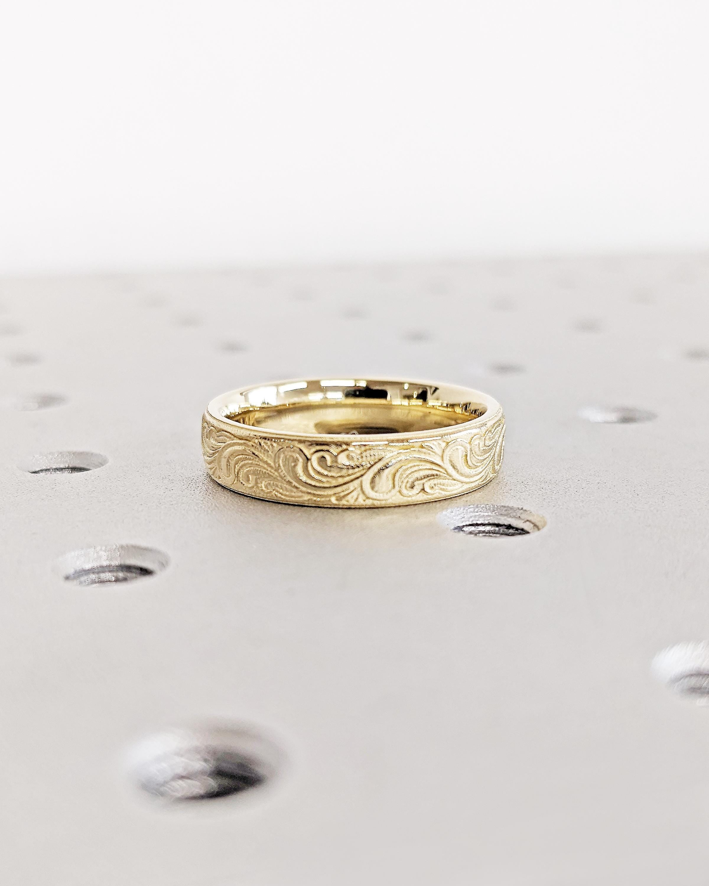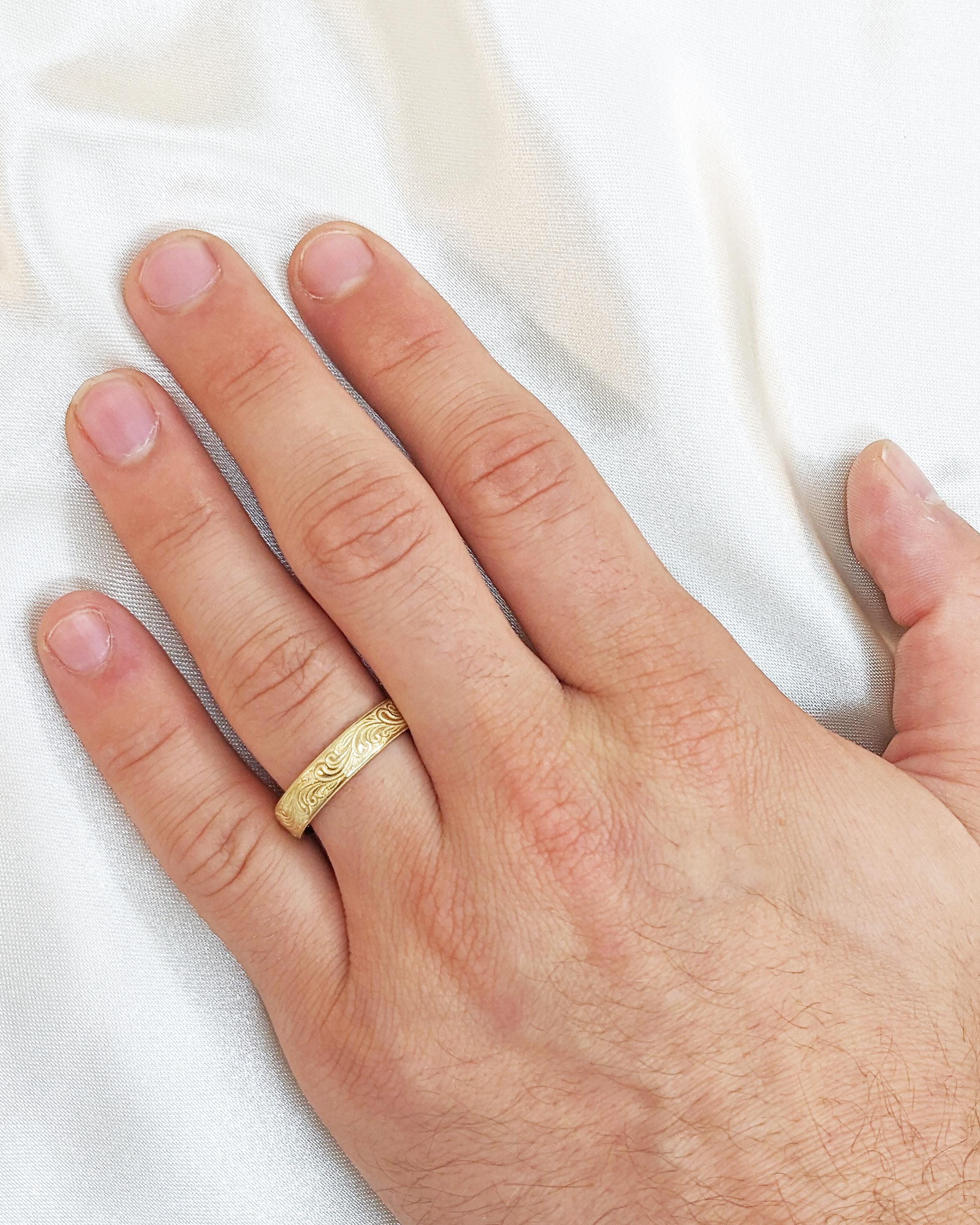 Filigree Vintage Wedding Band: 5mm, 14K Yellow Gold, Art Deco Feather Filigree Ring, Antique Art Nouveau Floral Ring, Handmade