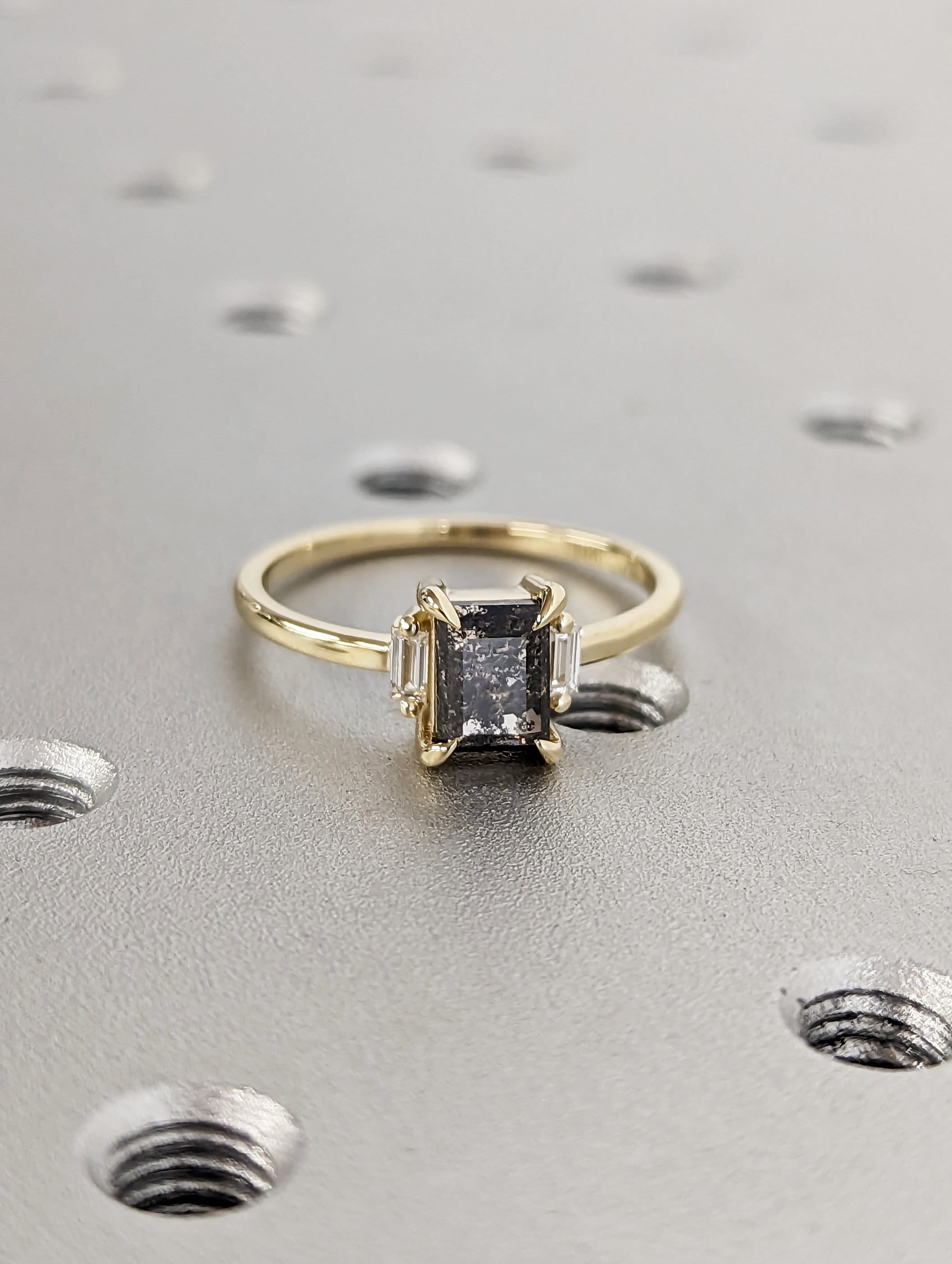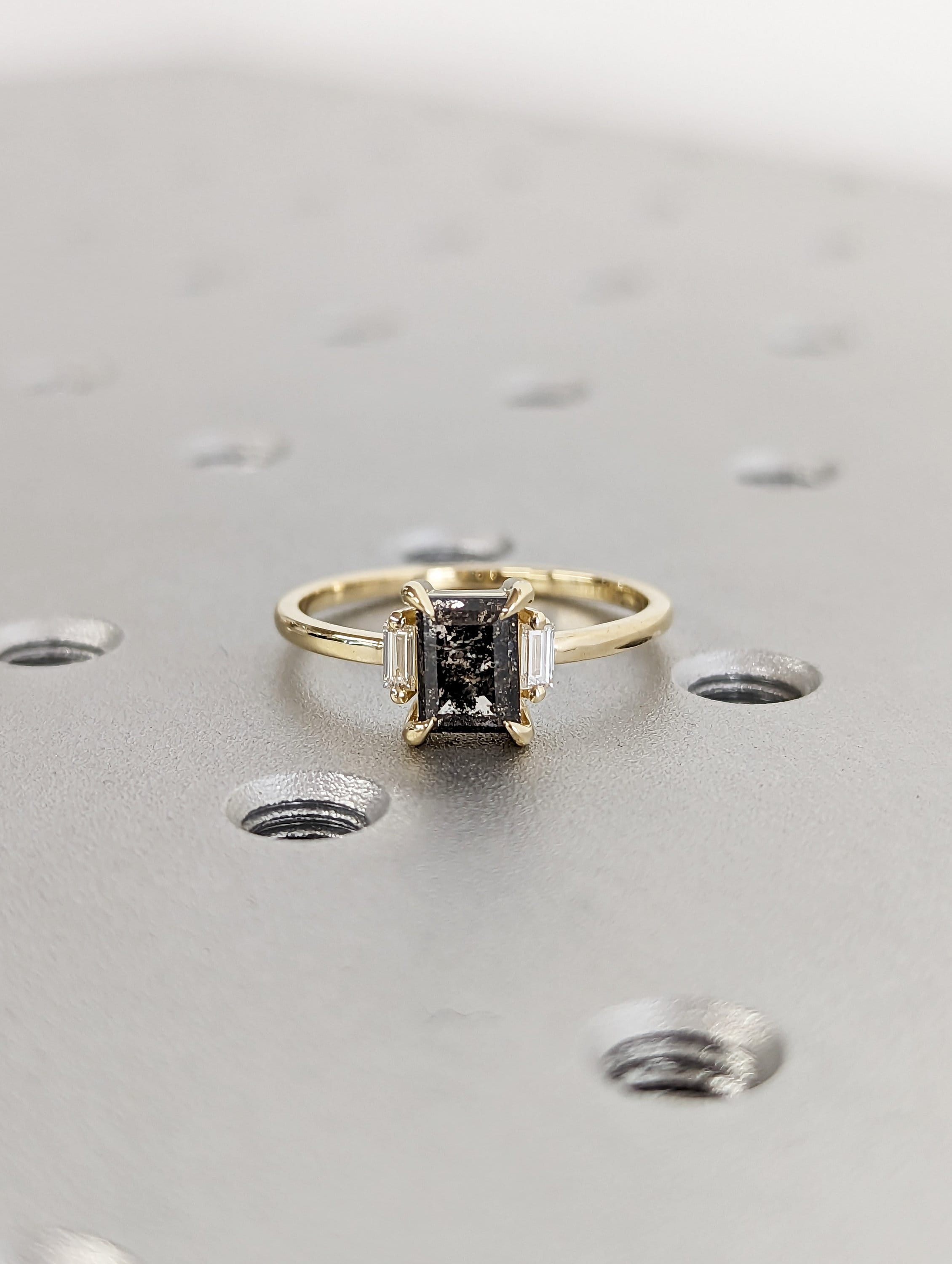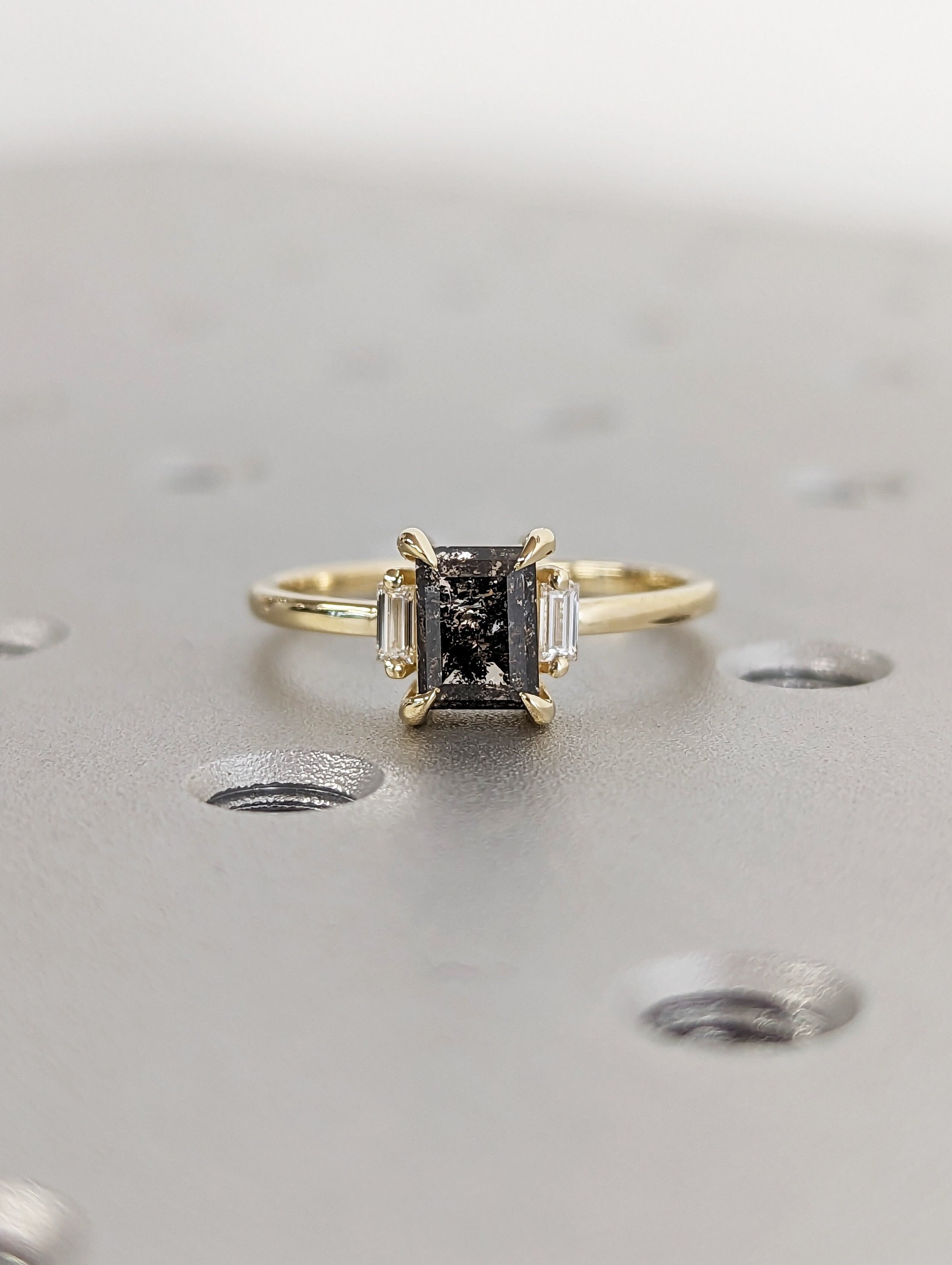 Galaxy Raw Salt and Pepper Diamond Ring- Baguette Cut Diamond Engagement Ring- Unique Bridal Geometric Diamond- Promise Ring- Vintage Ring