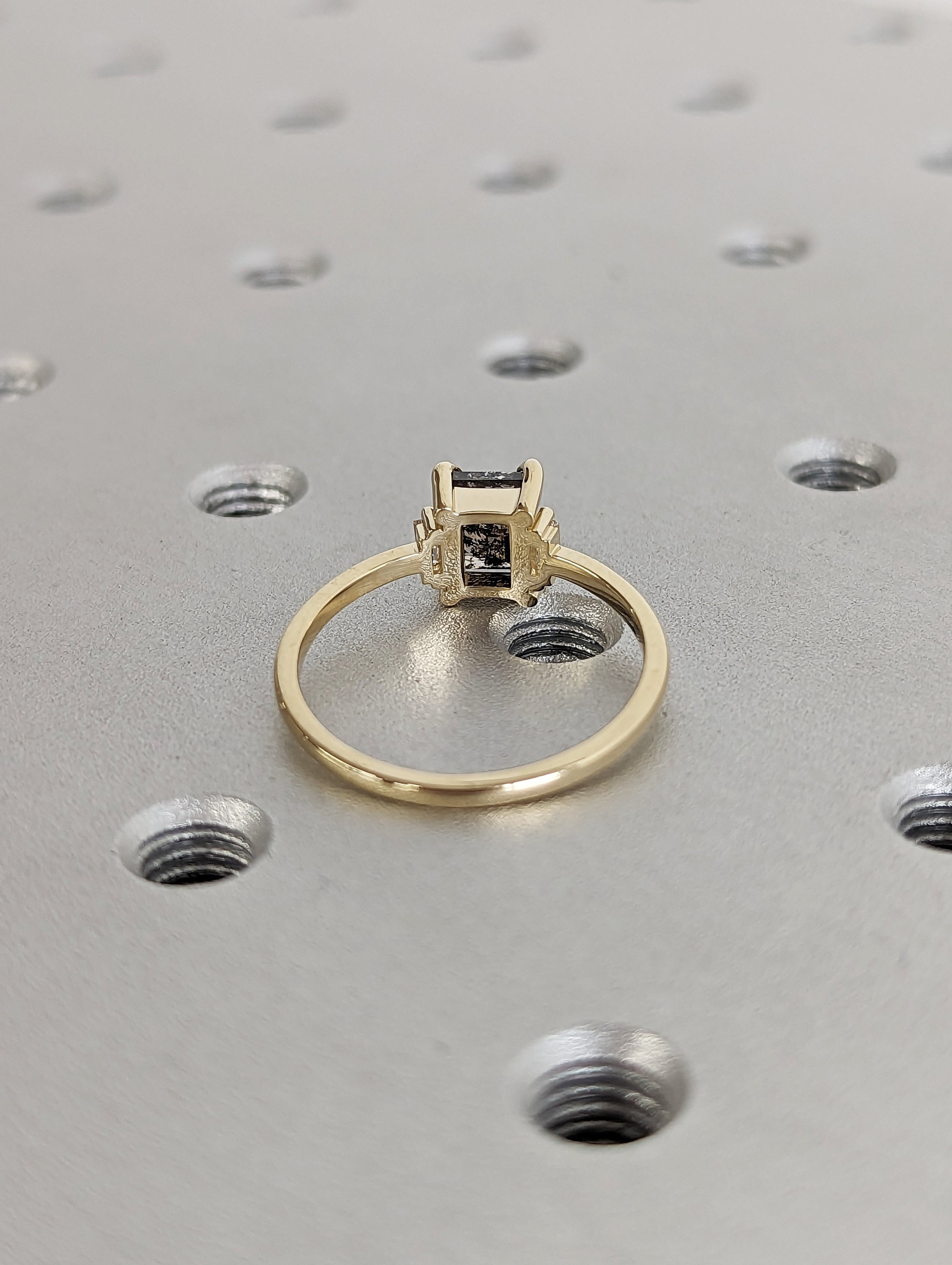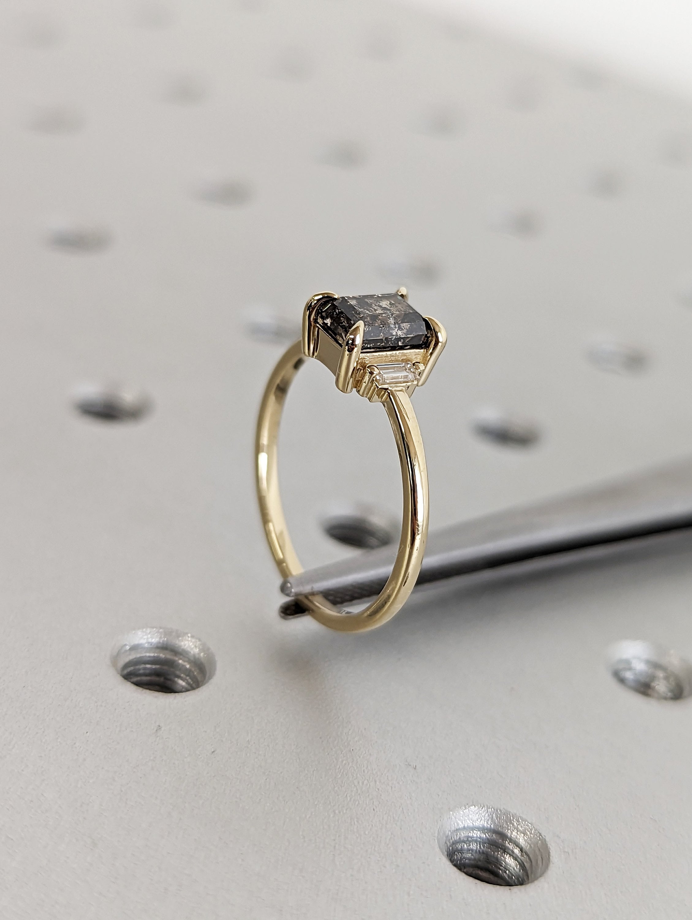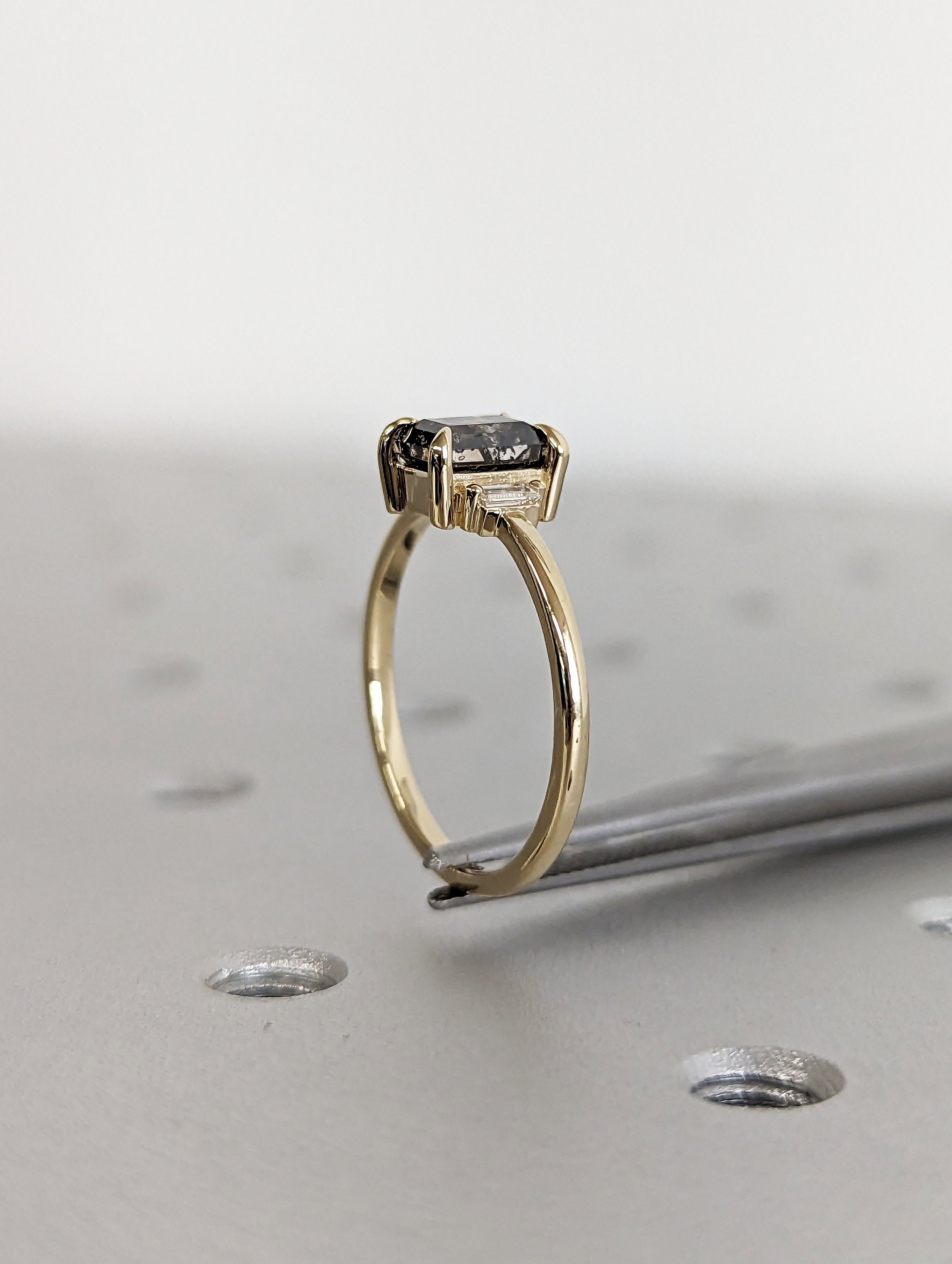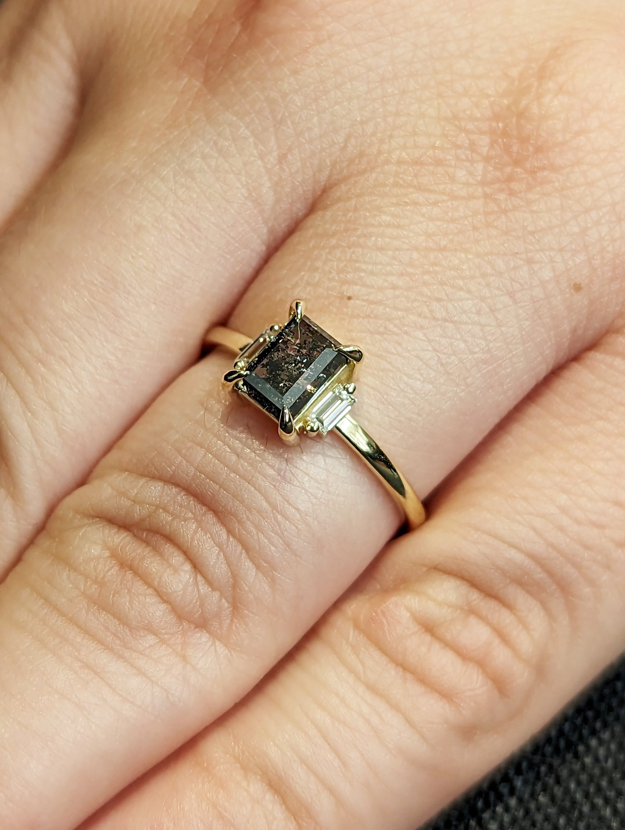 Galaxy Raw Salt and Pepper Diamond Ring- Baguette Cut Diamond Engagement Ring- Unique Bridal Geometric Diamond- Promise Ring- Vintage Ring