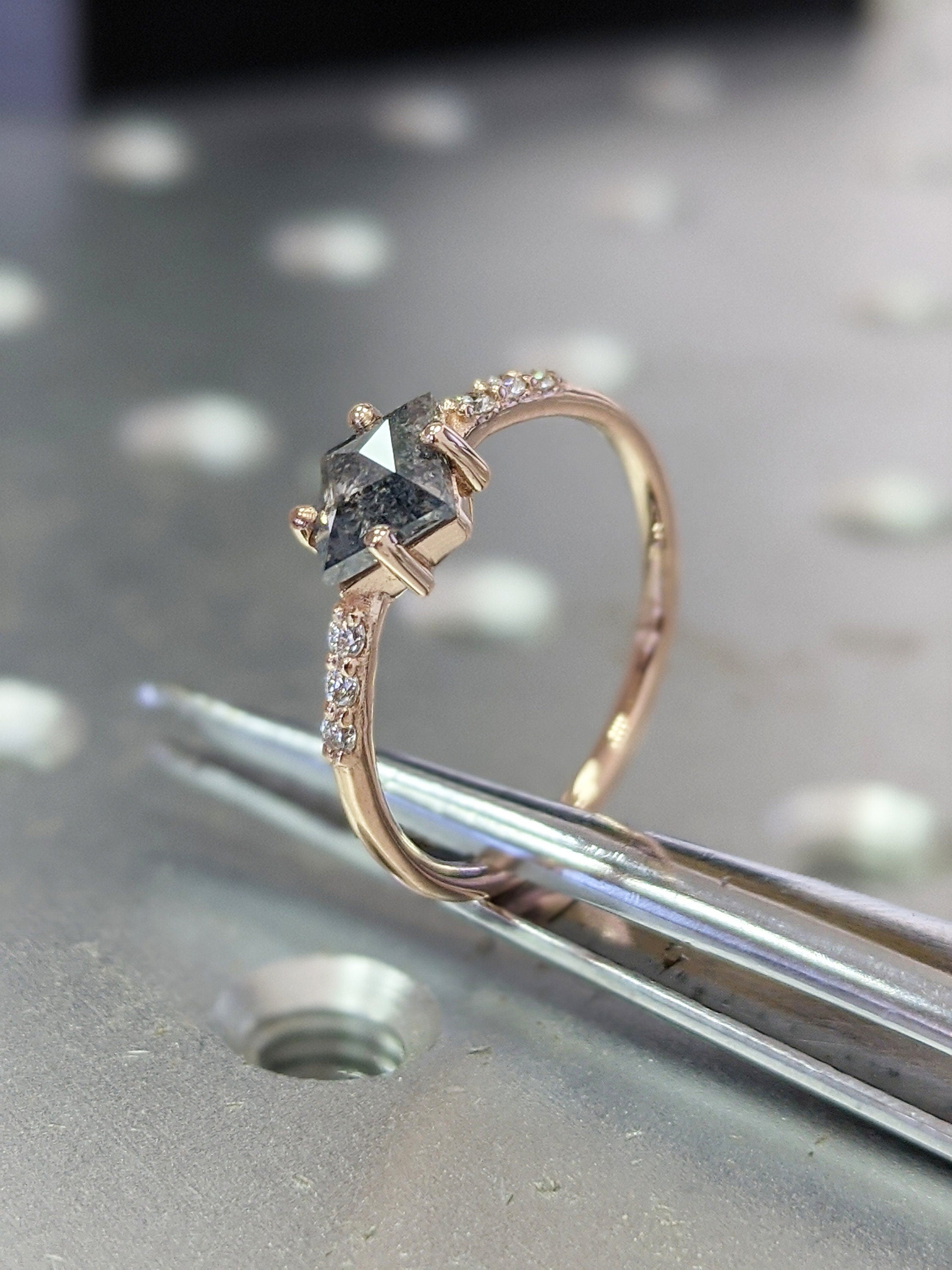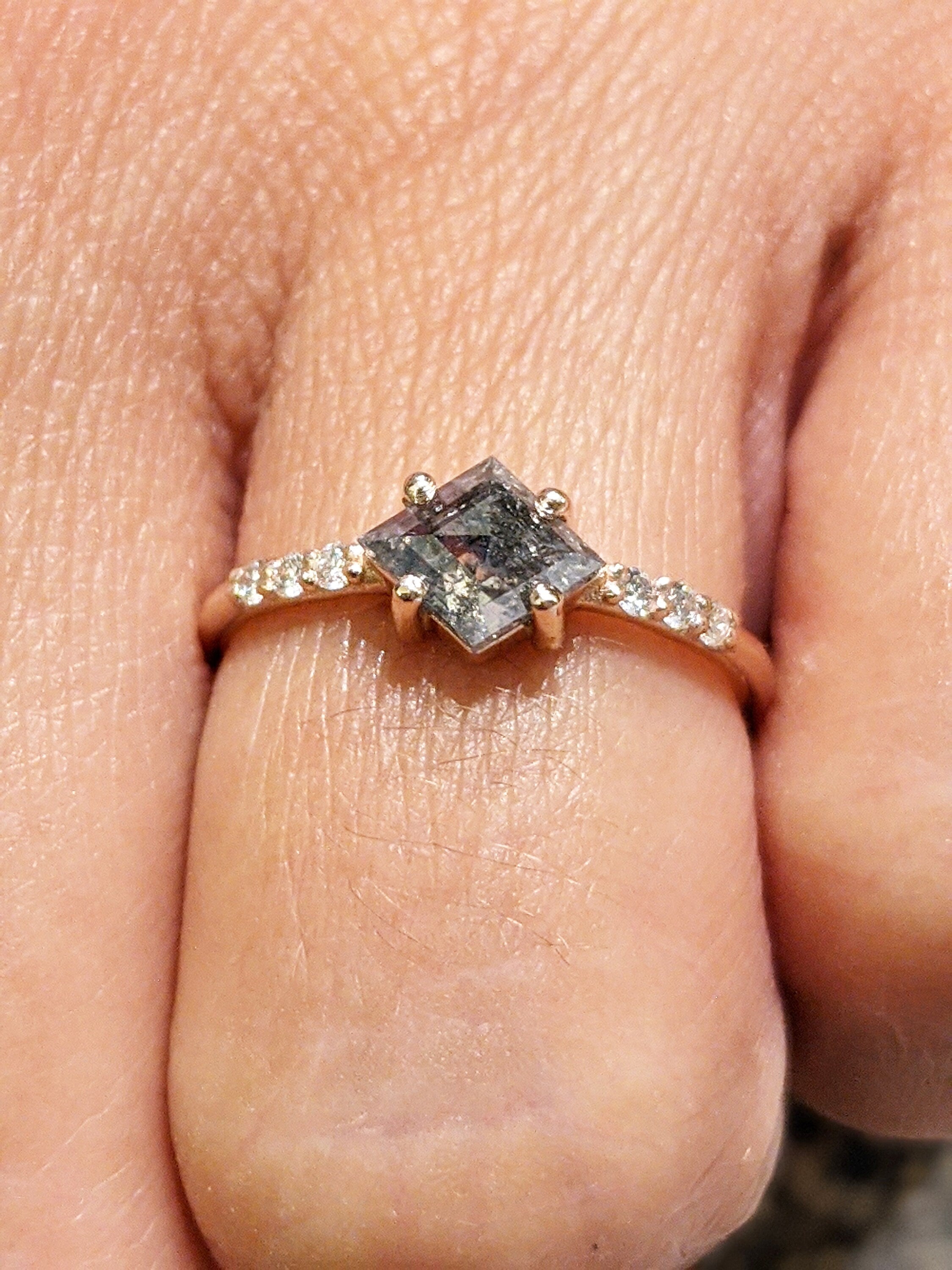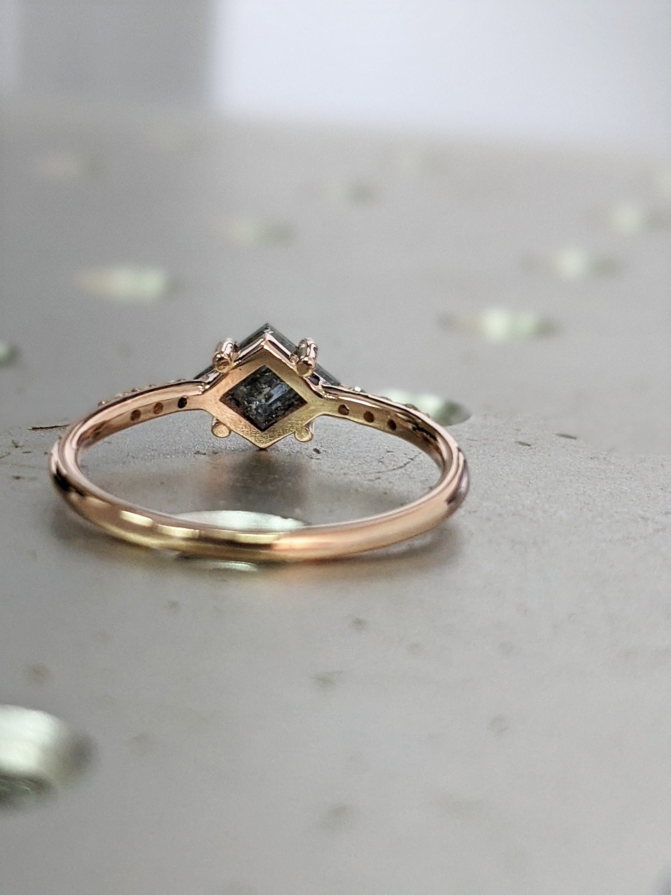 Geometric Shape Salt and Pepper Diamond Engagement Ring Geometric Diamond Rosecut Diamond Kite Shape Diamond Unique Diamond Ring