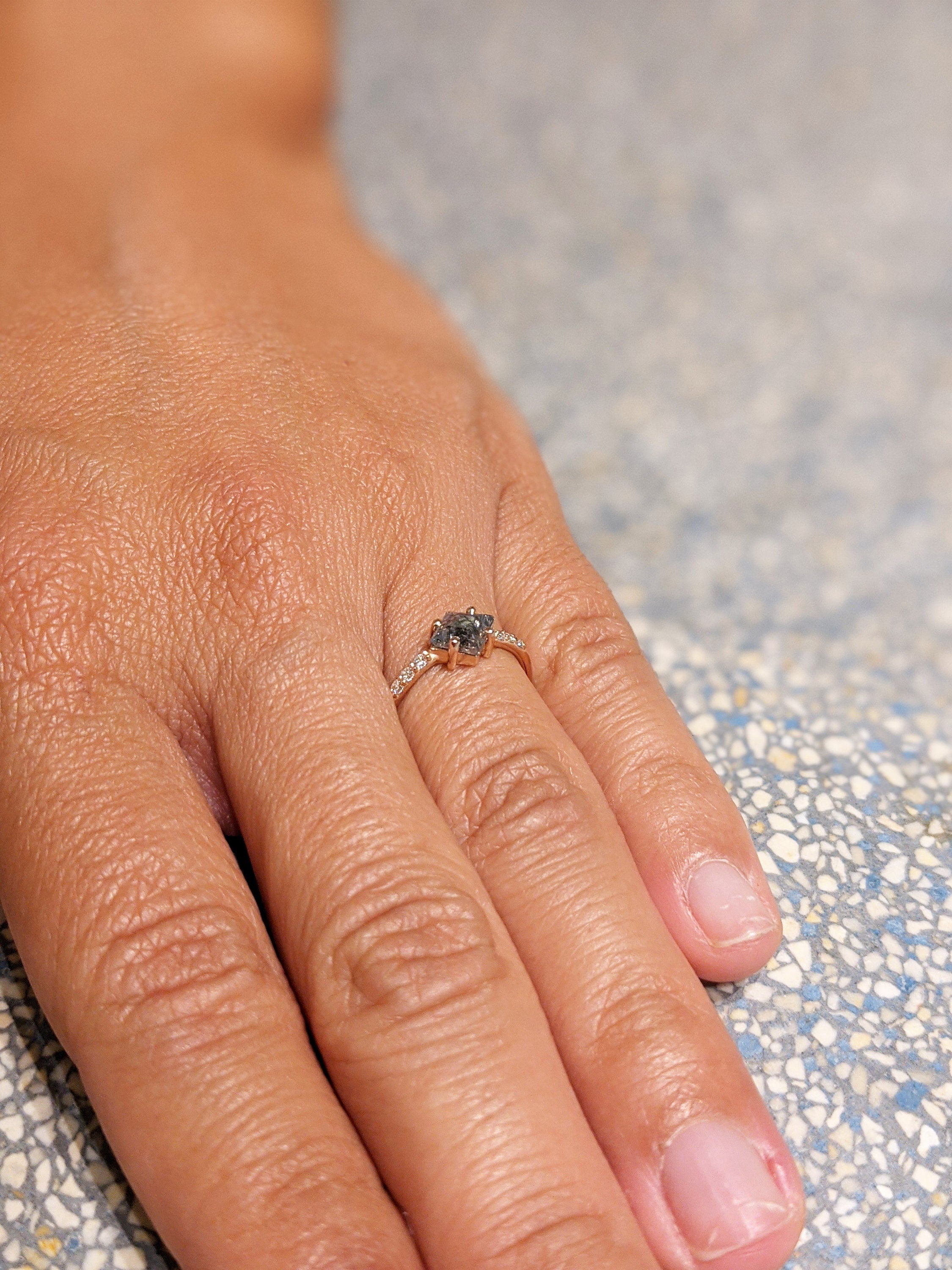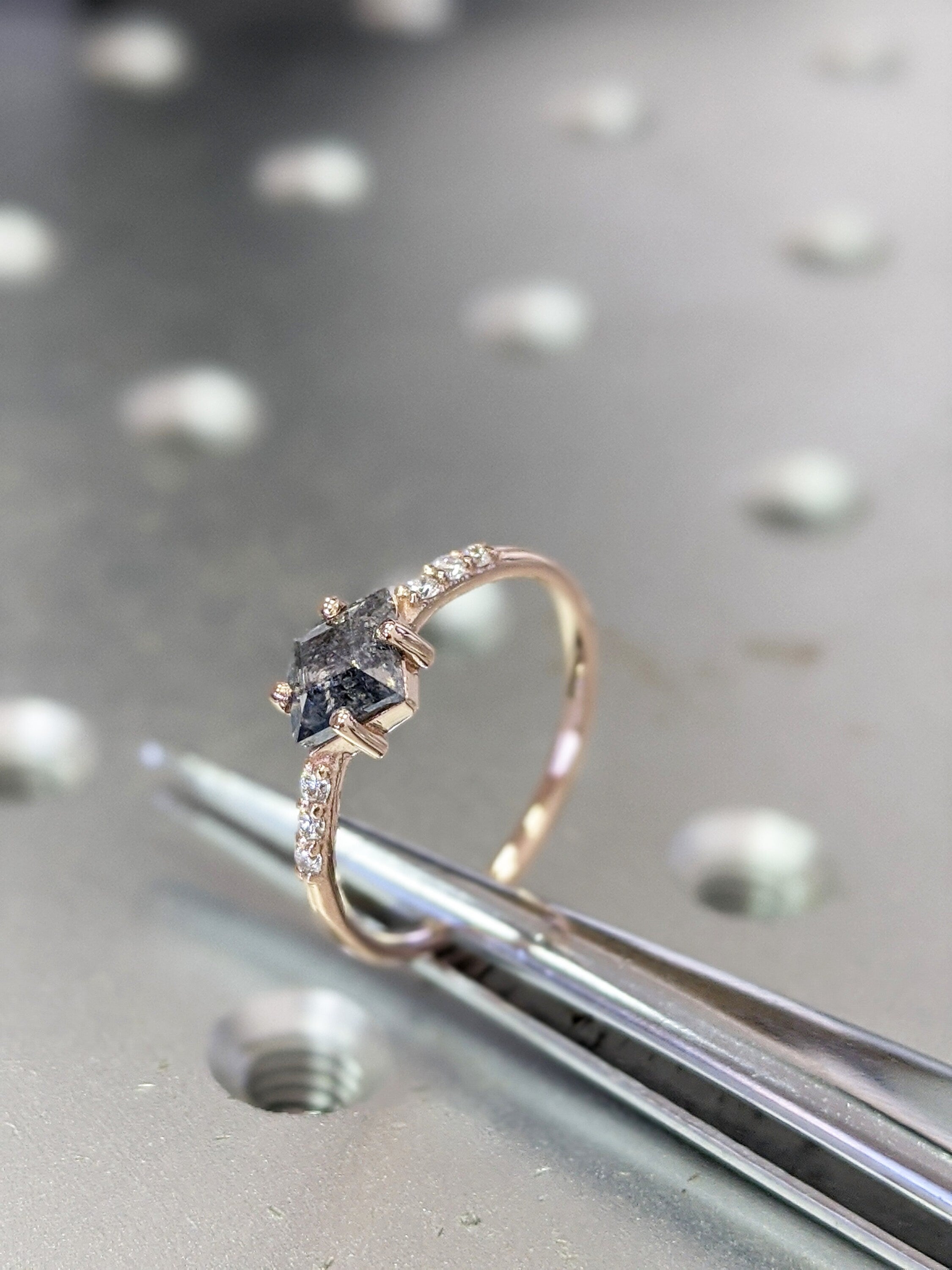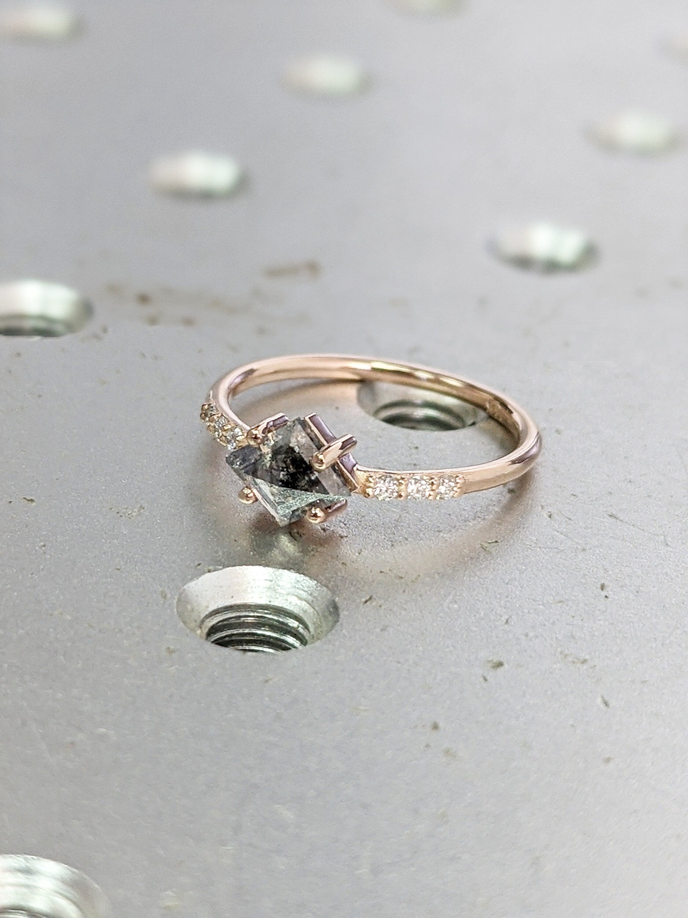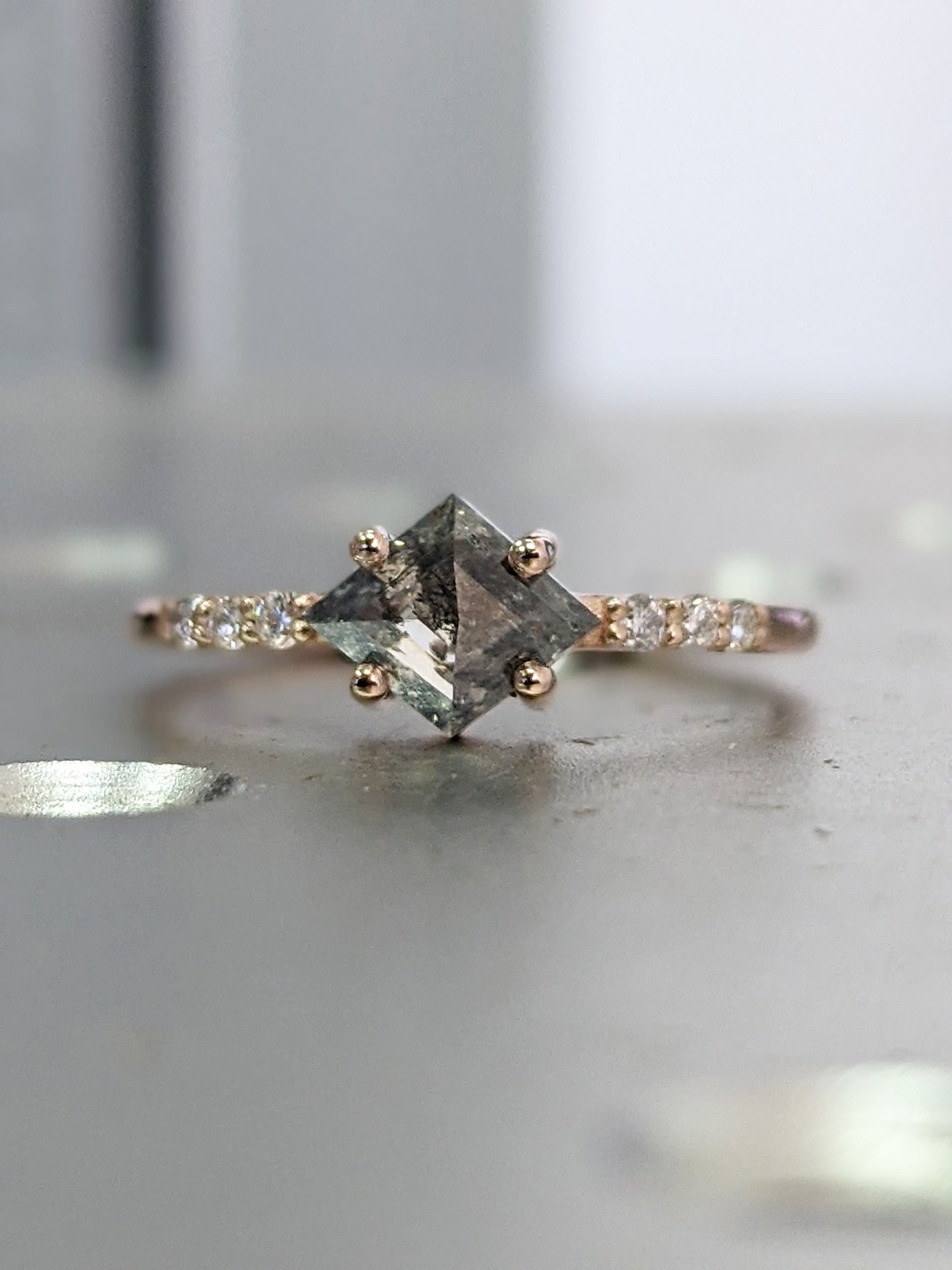 Geometric Shape Salt and Pepper Diamond Engagement Ring Geometric Diamond Rosecut Diamond Kite Shape Diamond Unique Diamond Ring
