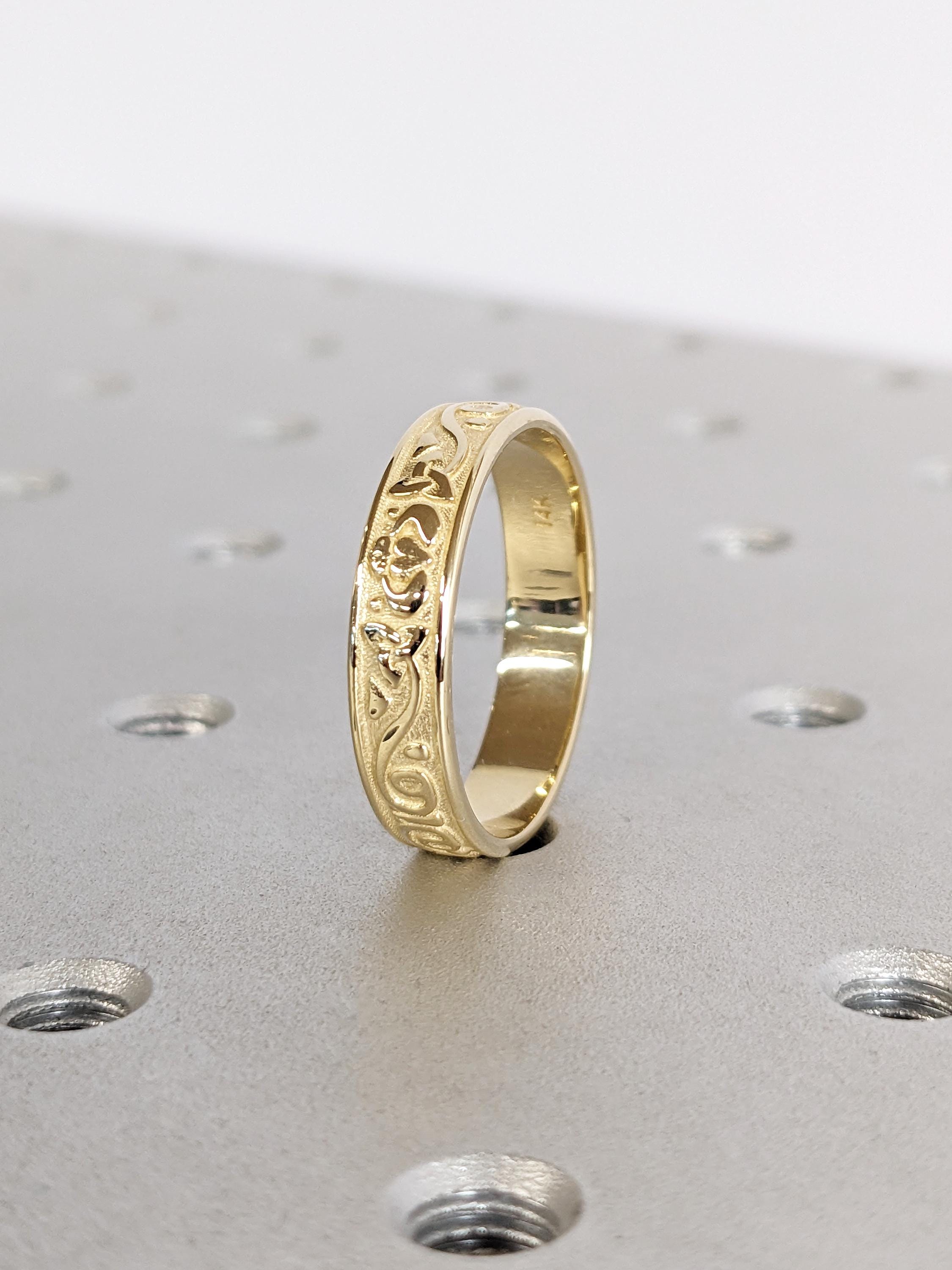 Gold Celtic Claddagh Wedding Band, 14K Yellow Gold Trinity Knot Ring, Smooth Rounded Men's Engagement