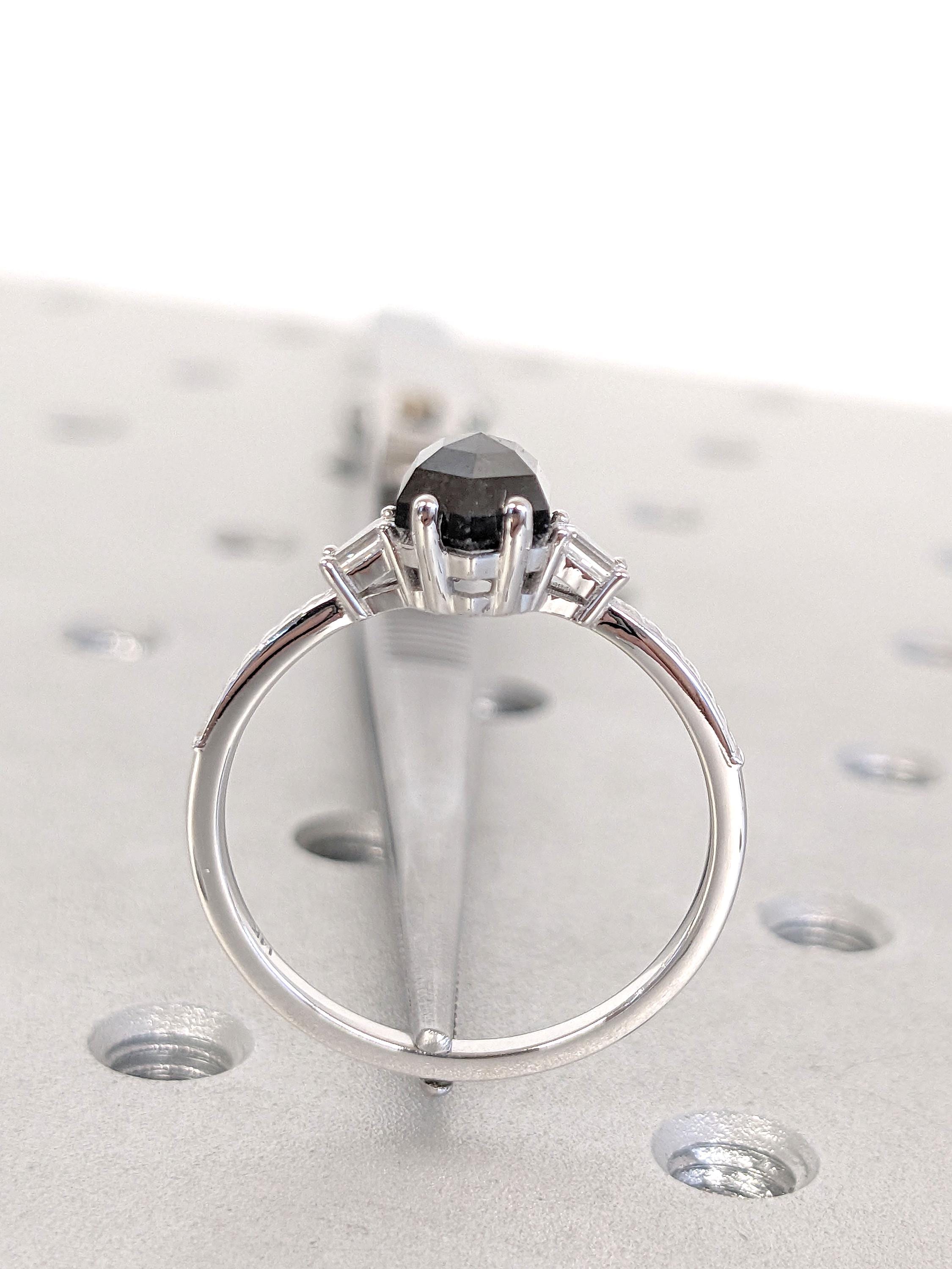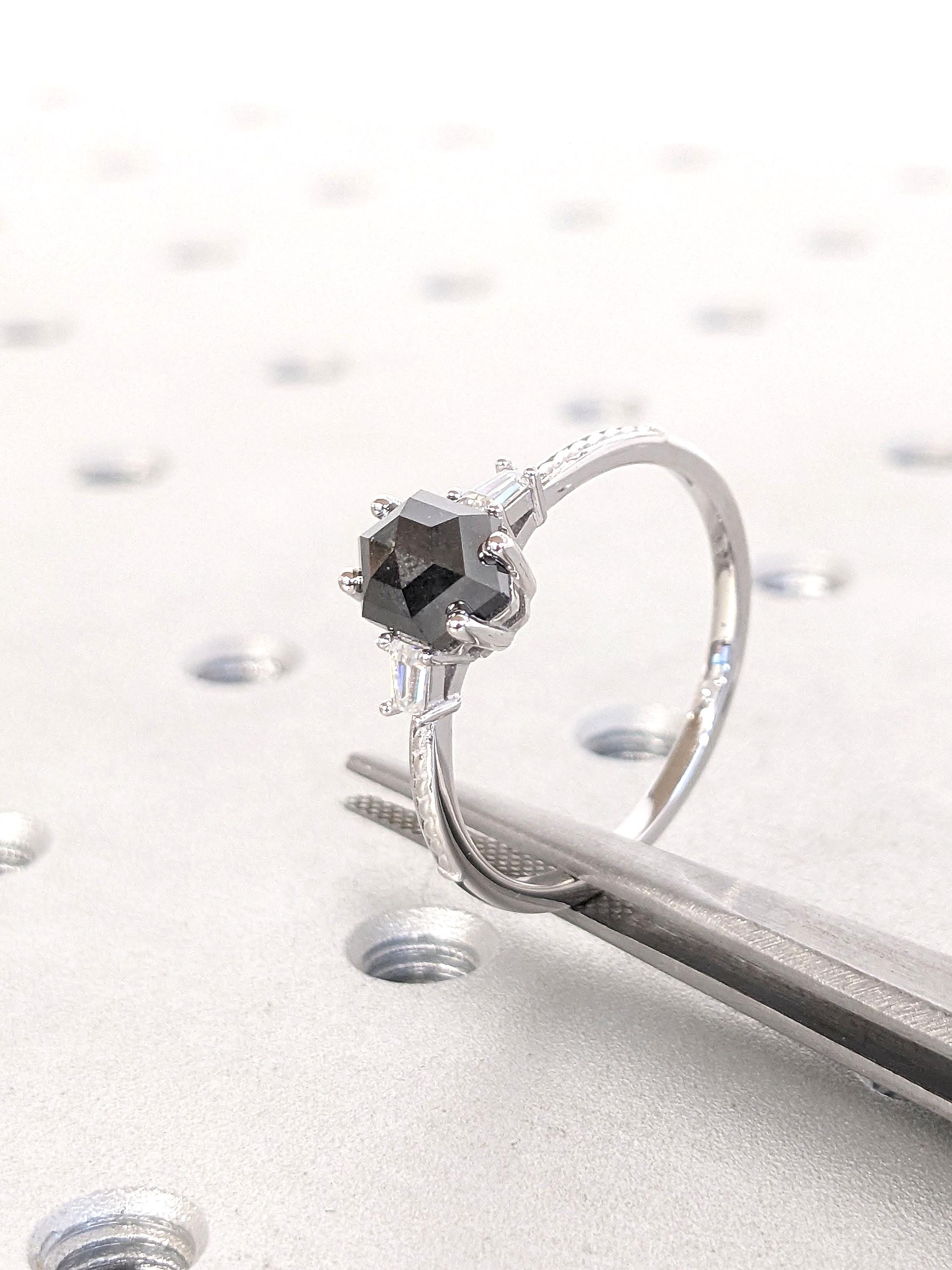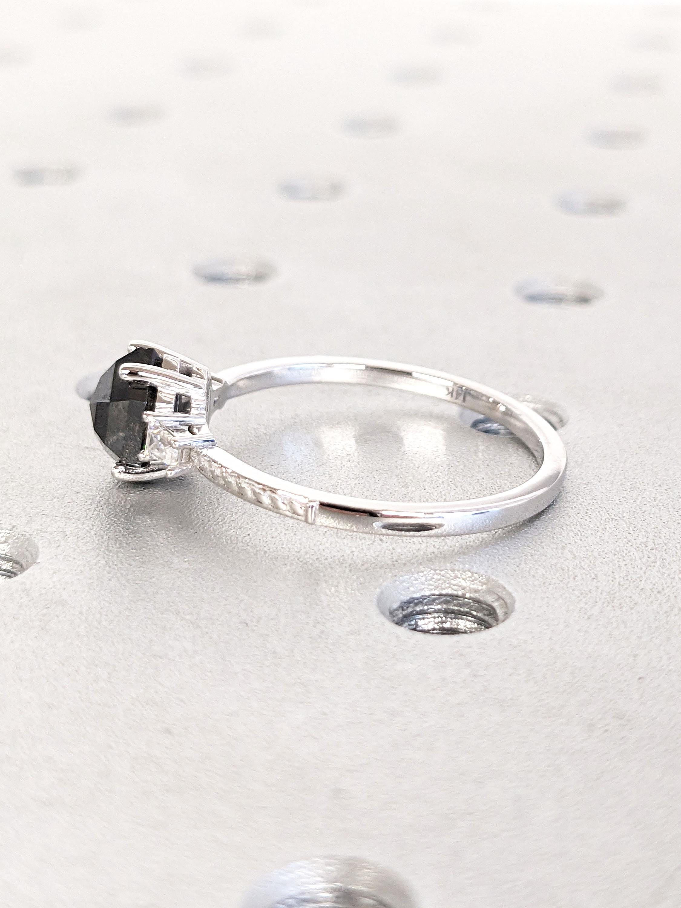 Hexagon Cut Engagement Ring | 1.5 Carat, 2CT Natural Black Diamond Stone Ring | White Gold Promise Ring | Hexagon Cut Diamond | Gift For Her