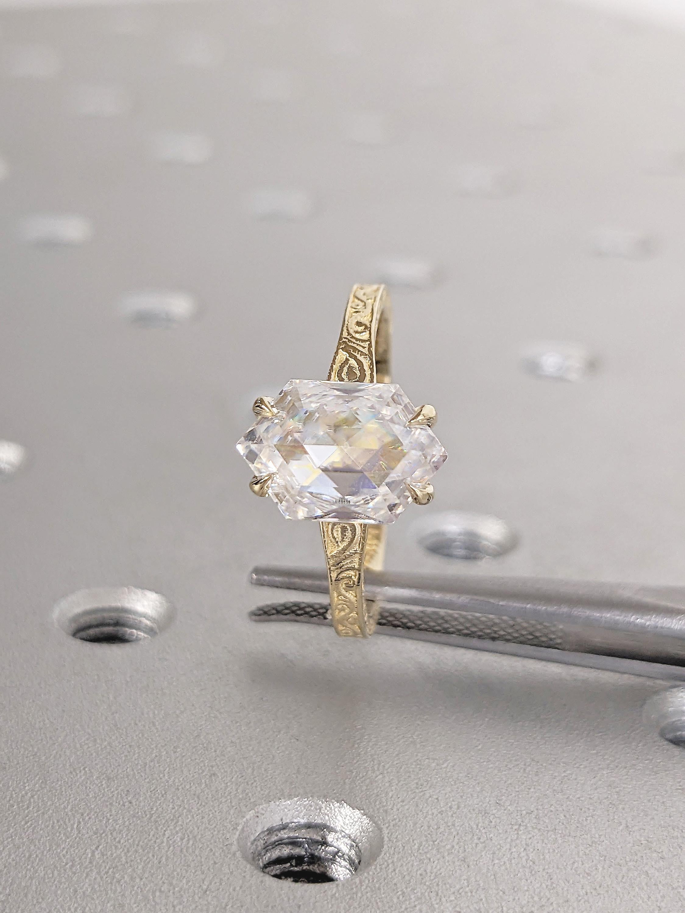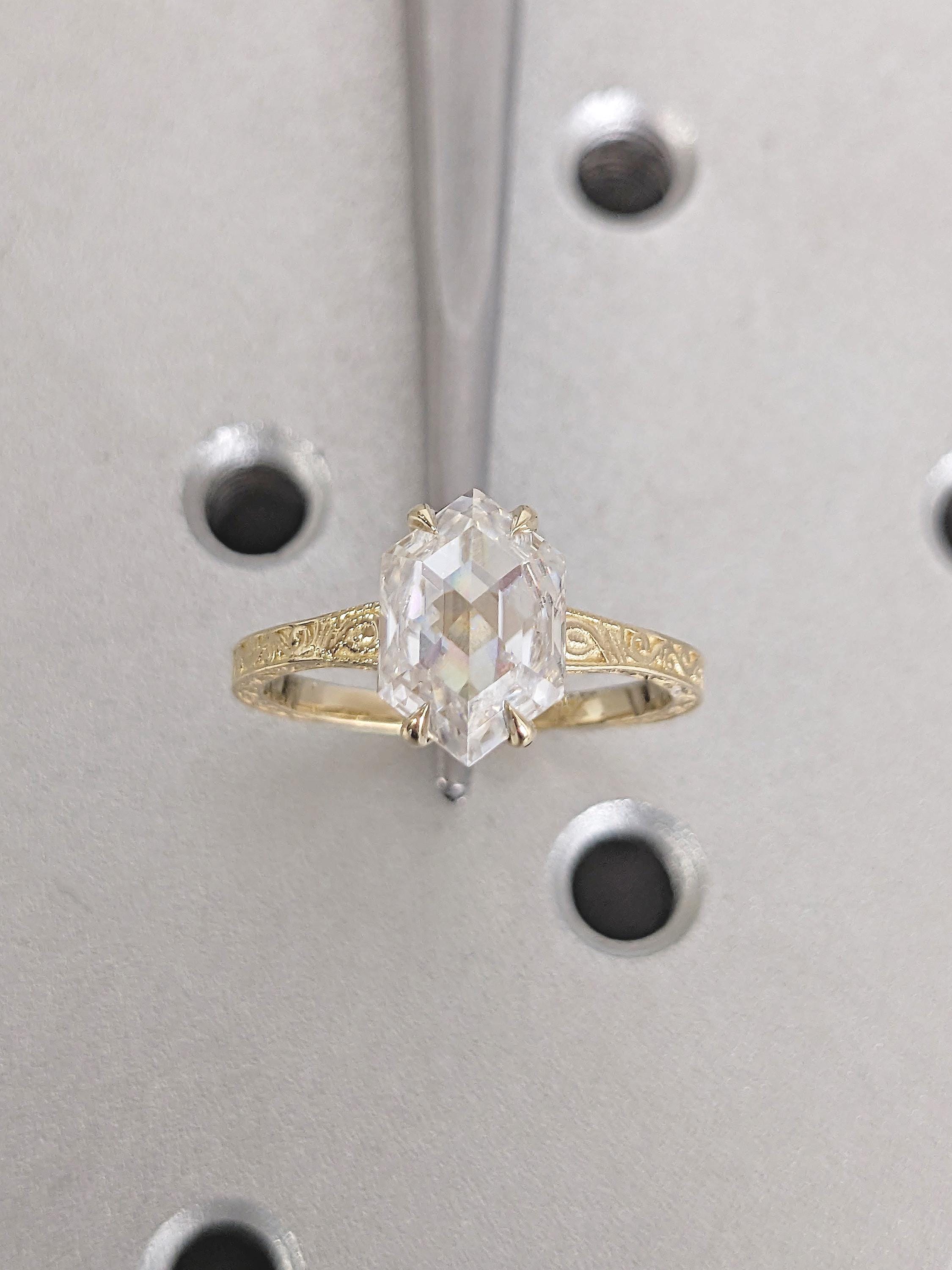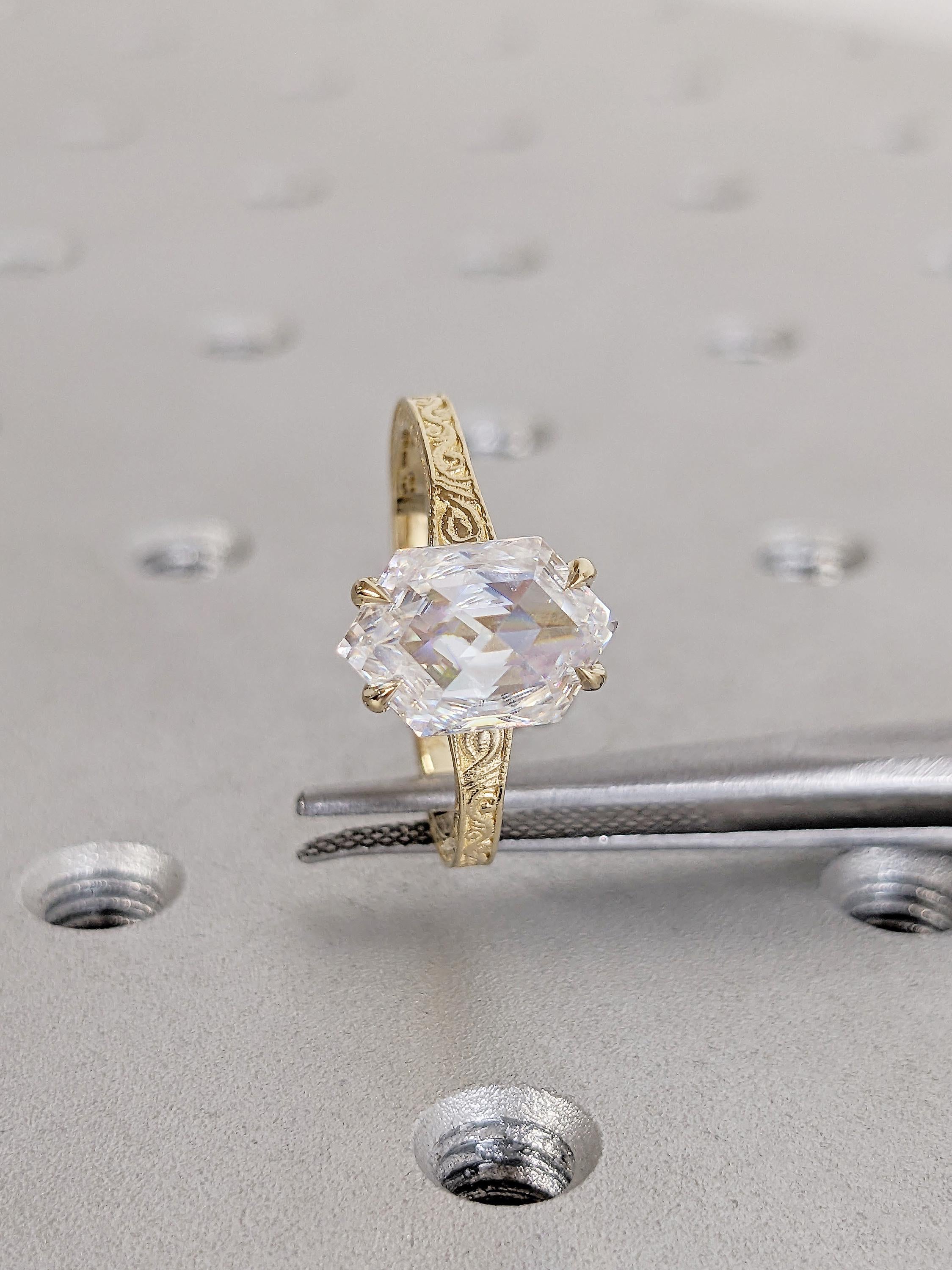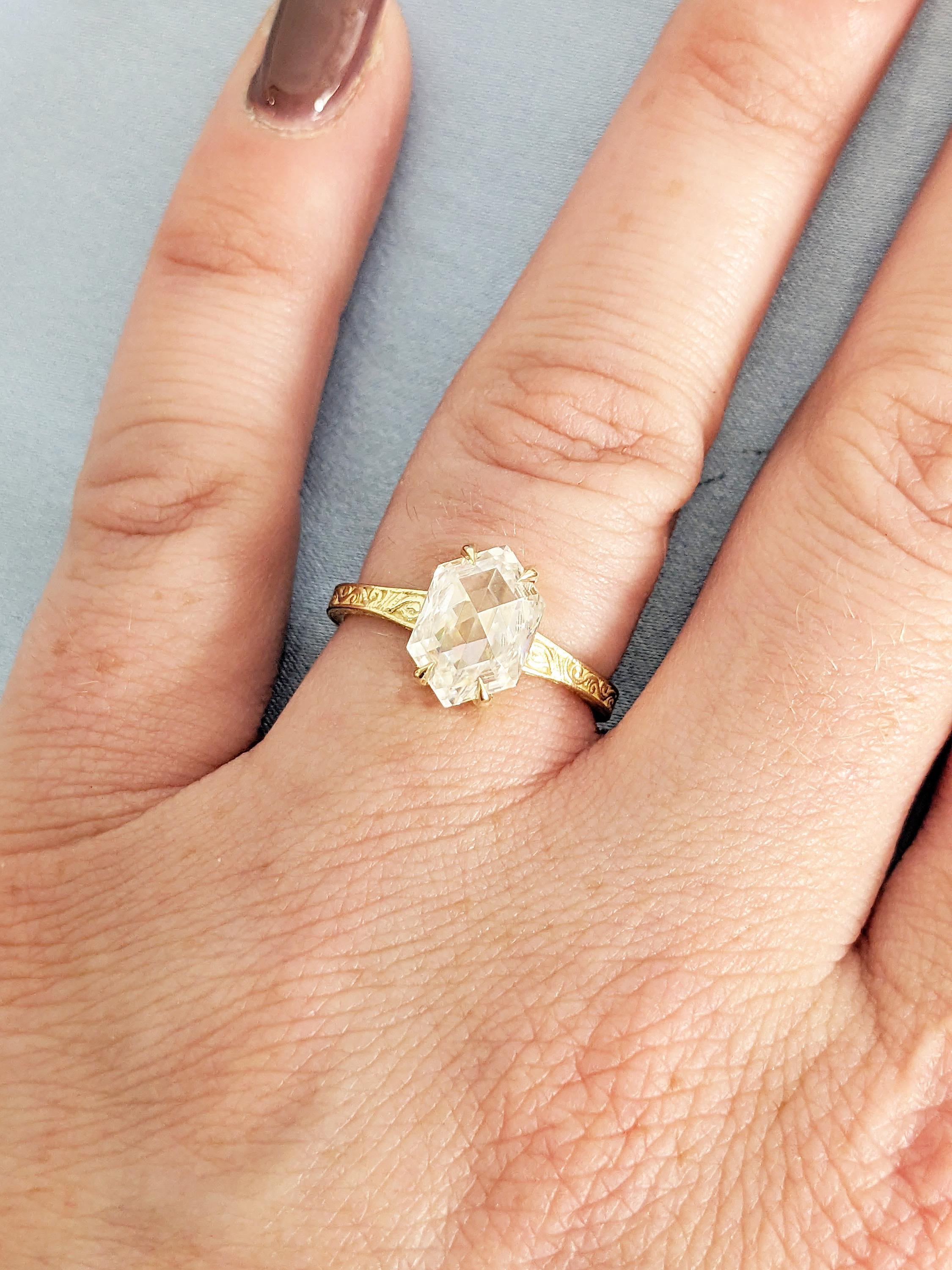 Hexagon Cut Moissanite Engagement Ring, Unique 14K Yellow Gold Filigree Engraving Wedding Band, Vintage Inspired Solitaire Rings for Women