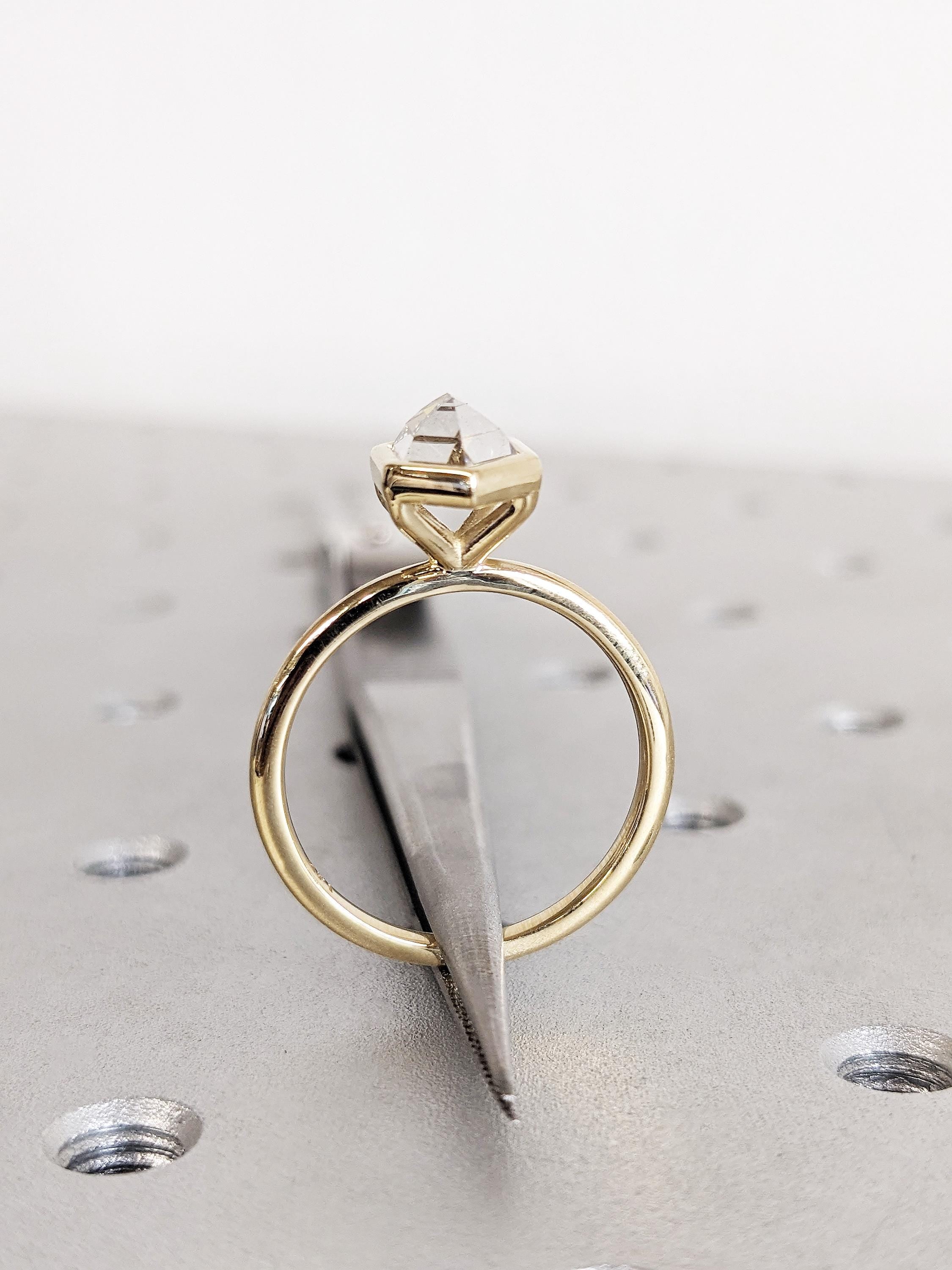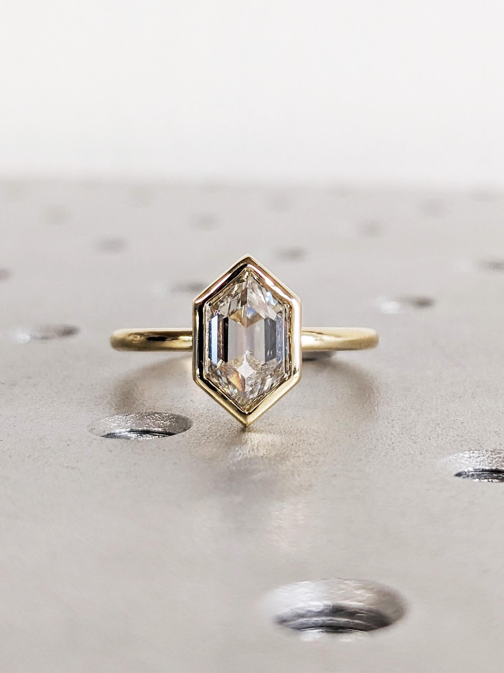 Hexagon Cut Moissanite Solitaire Ring, 14K Yellow Gold Bezel Setting Wedding Band, Women’s Engagement Anniversary Ring