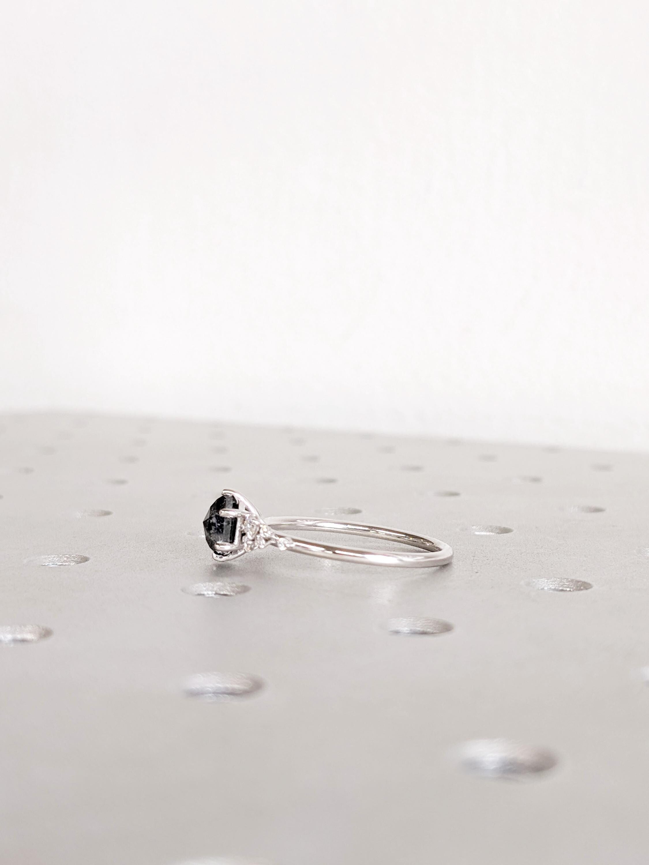Hexagon Salt and Pepper Diamond Engagement Ring, 14K White Gold Wedding Ring, Snowdrift Diamond Cluster Ring, Unique Promise Ring For Her