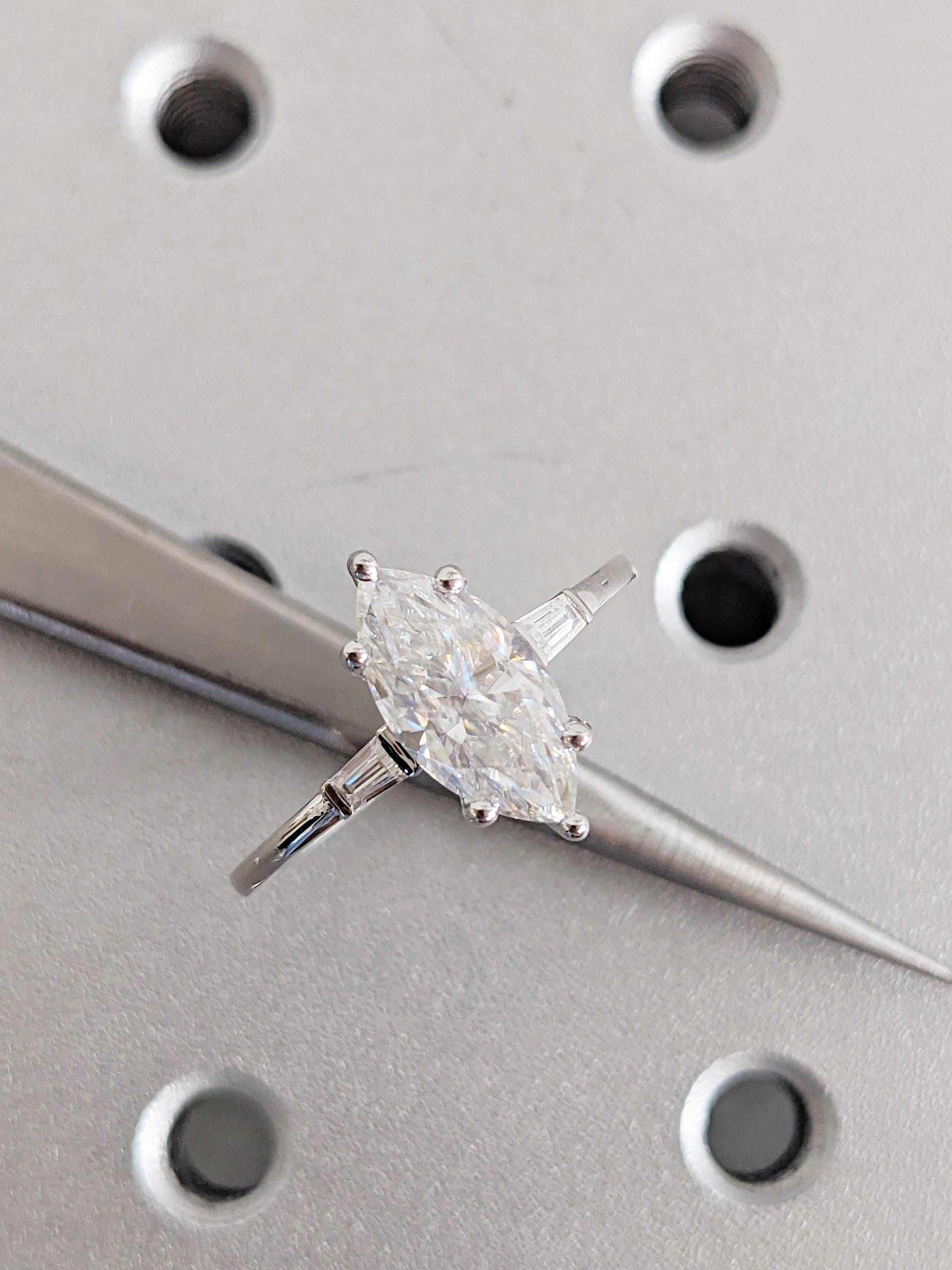 IGI Certified Marquise Cut Lab Grown Diamond Engagement Ring, 14K Gold Ring, Tapered Baguette Diamond Ring