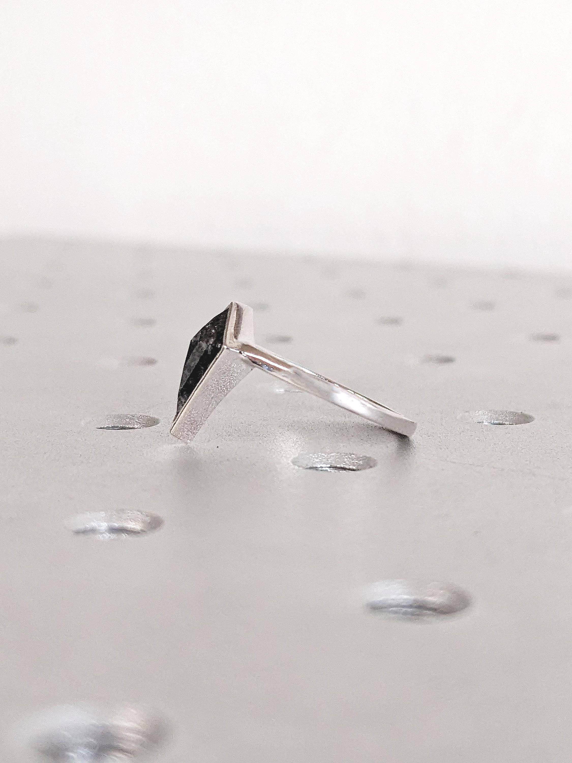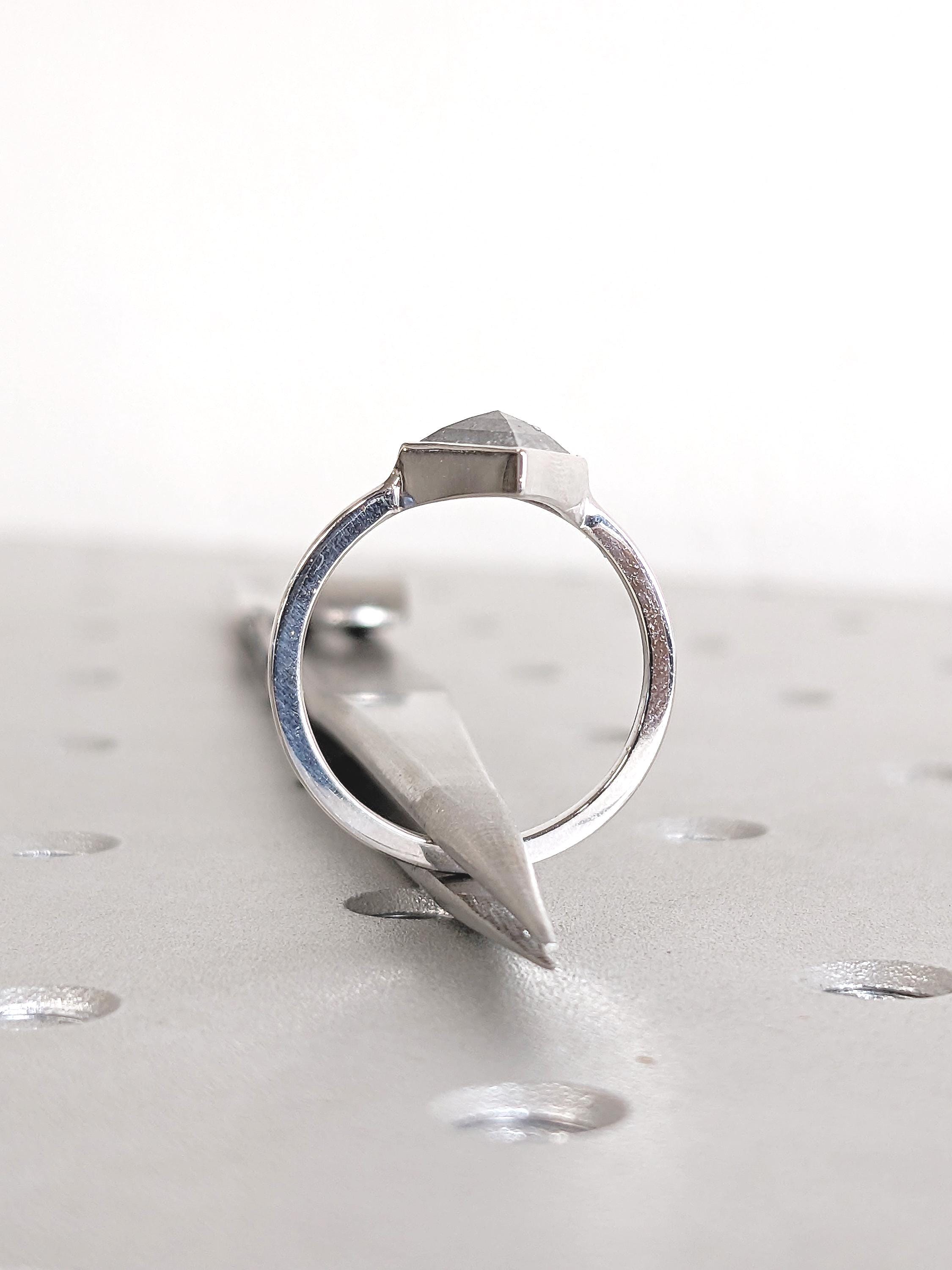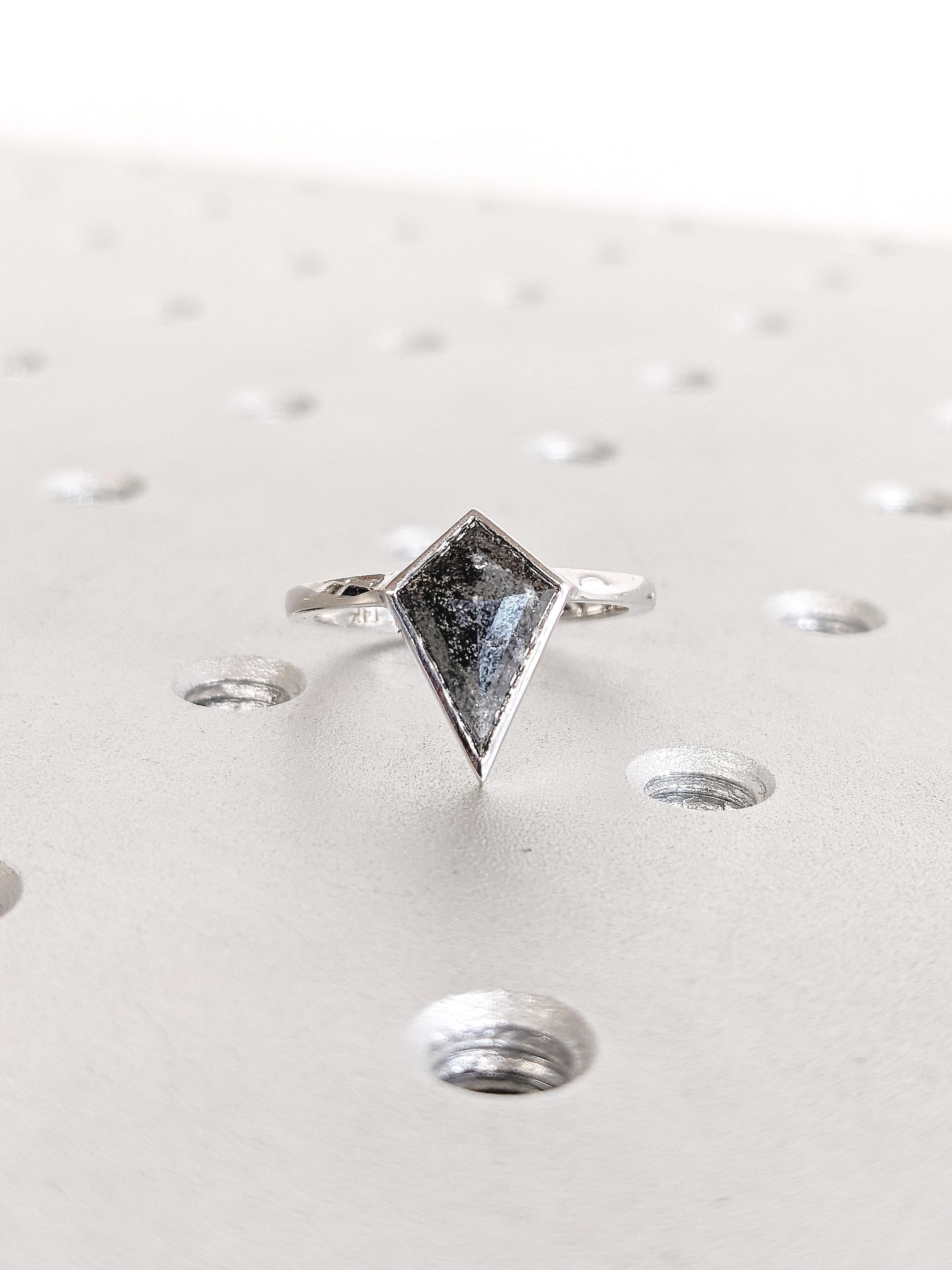Kite Cut Salt and Pepper Diamond Ring, Bezel Engagement Ring, 14k White Gold Ring, Solitaire Ring, Big Statement Ring, Promise Ring for Her