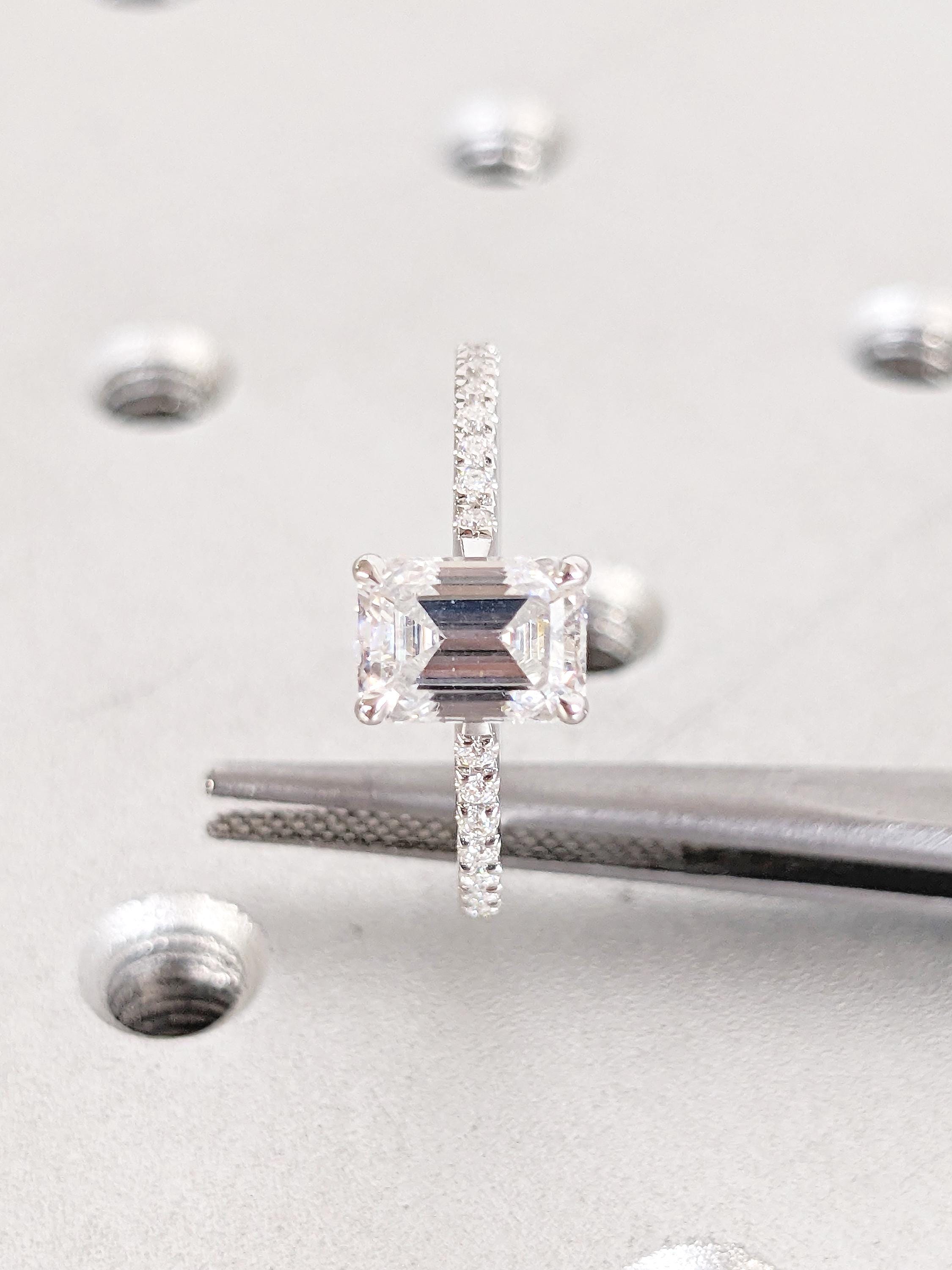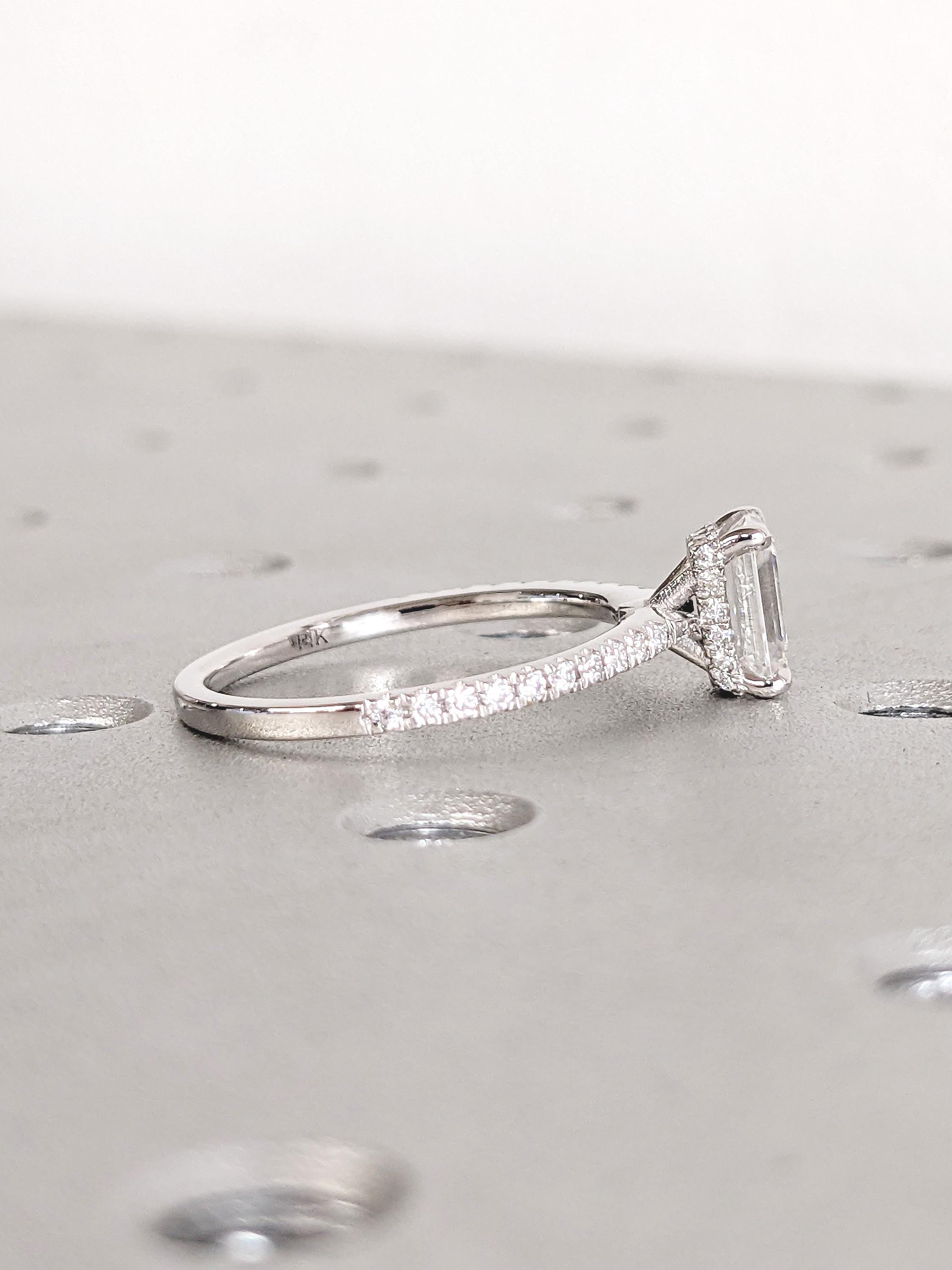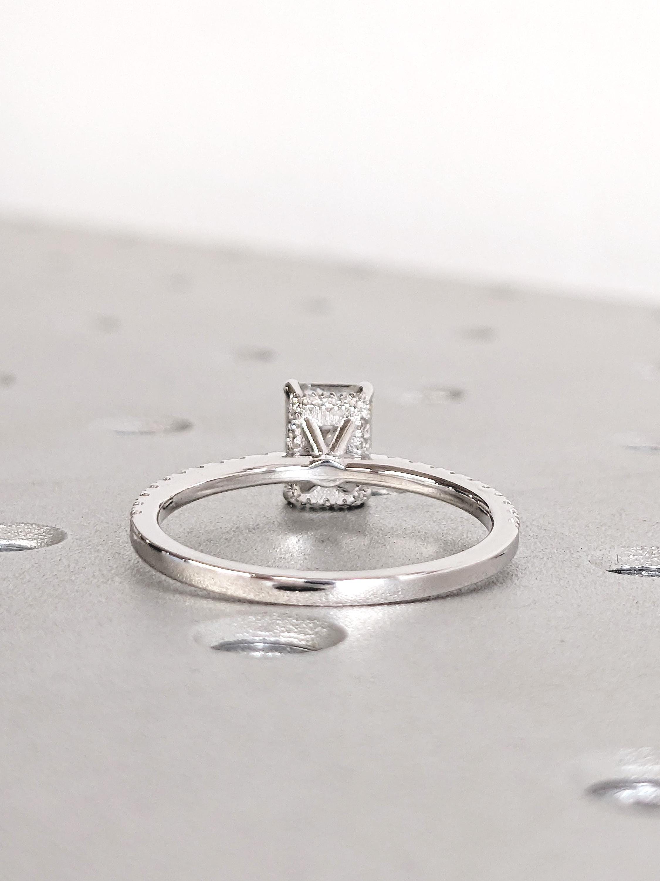 Lab Diamond Ring, Hidden Halo Engagement Ring, 14k White Gold Ring, Half Eternity Ring, 1-2ct Emerald Cut Lab Grown Diamond Anniversary Ring