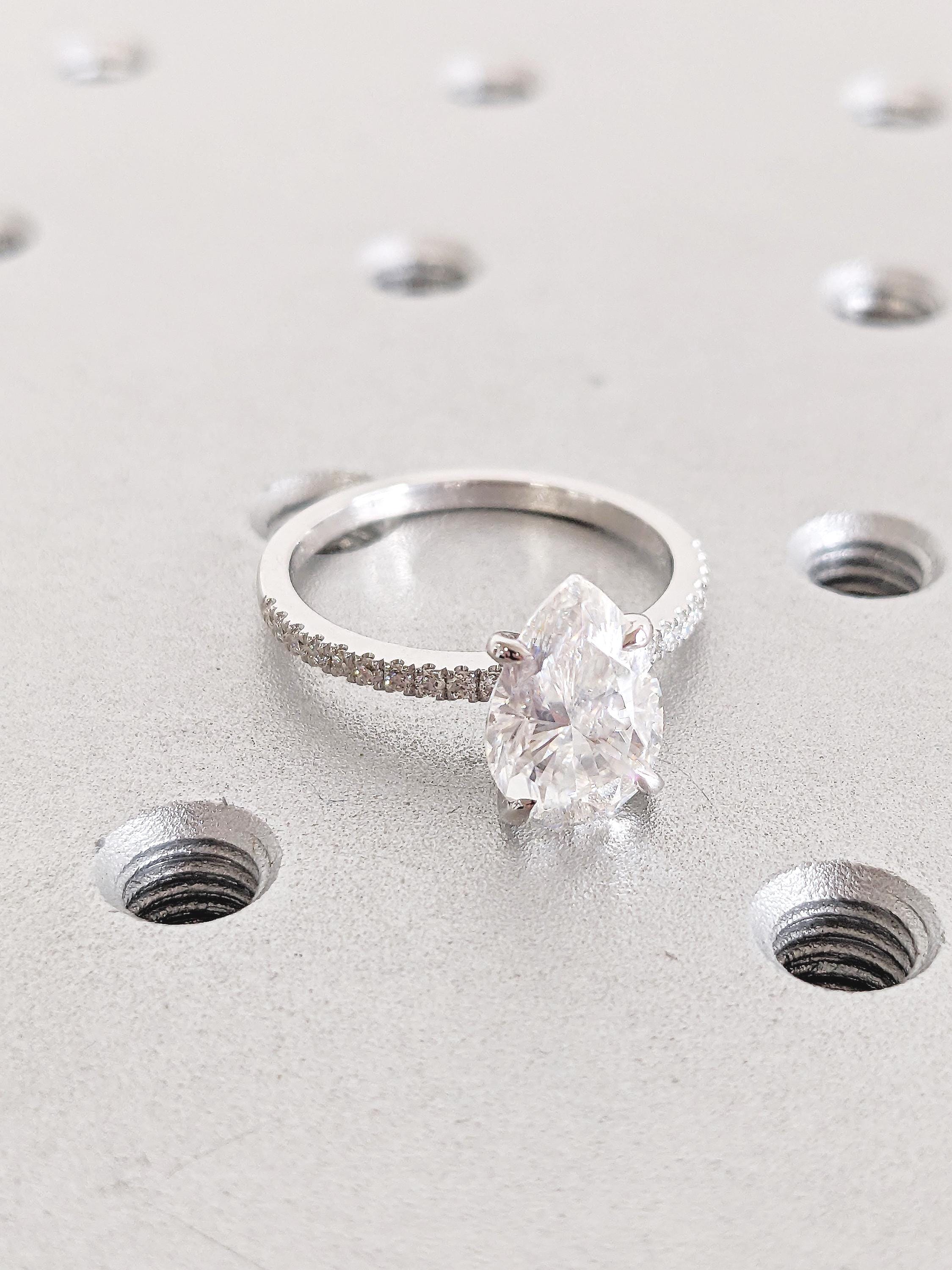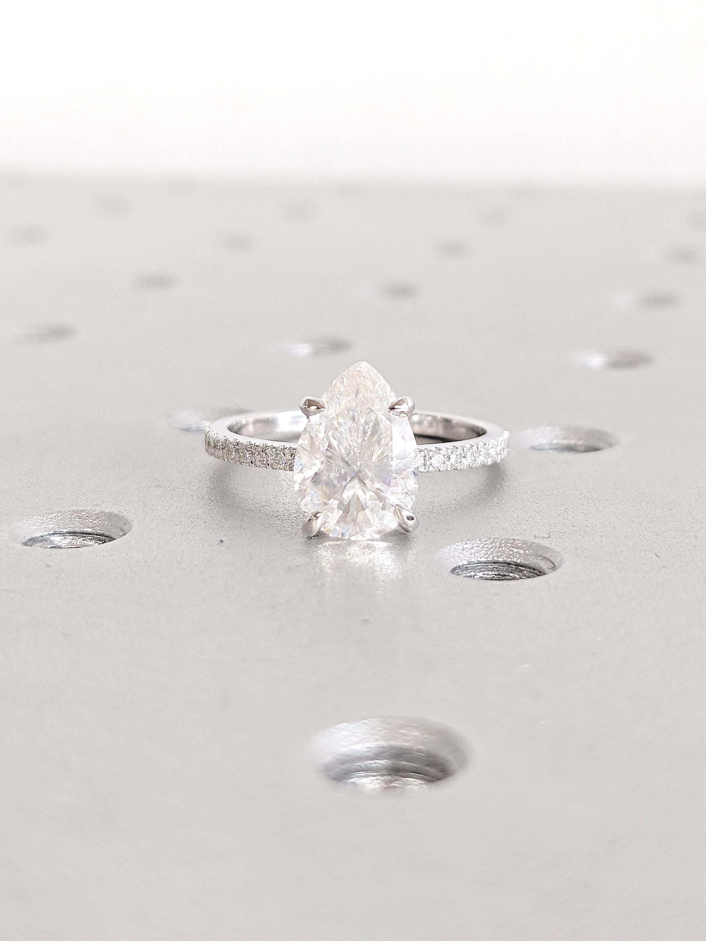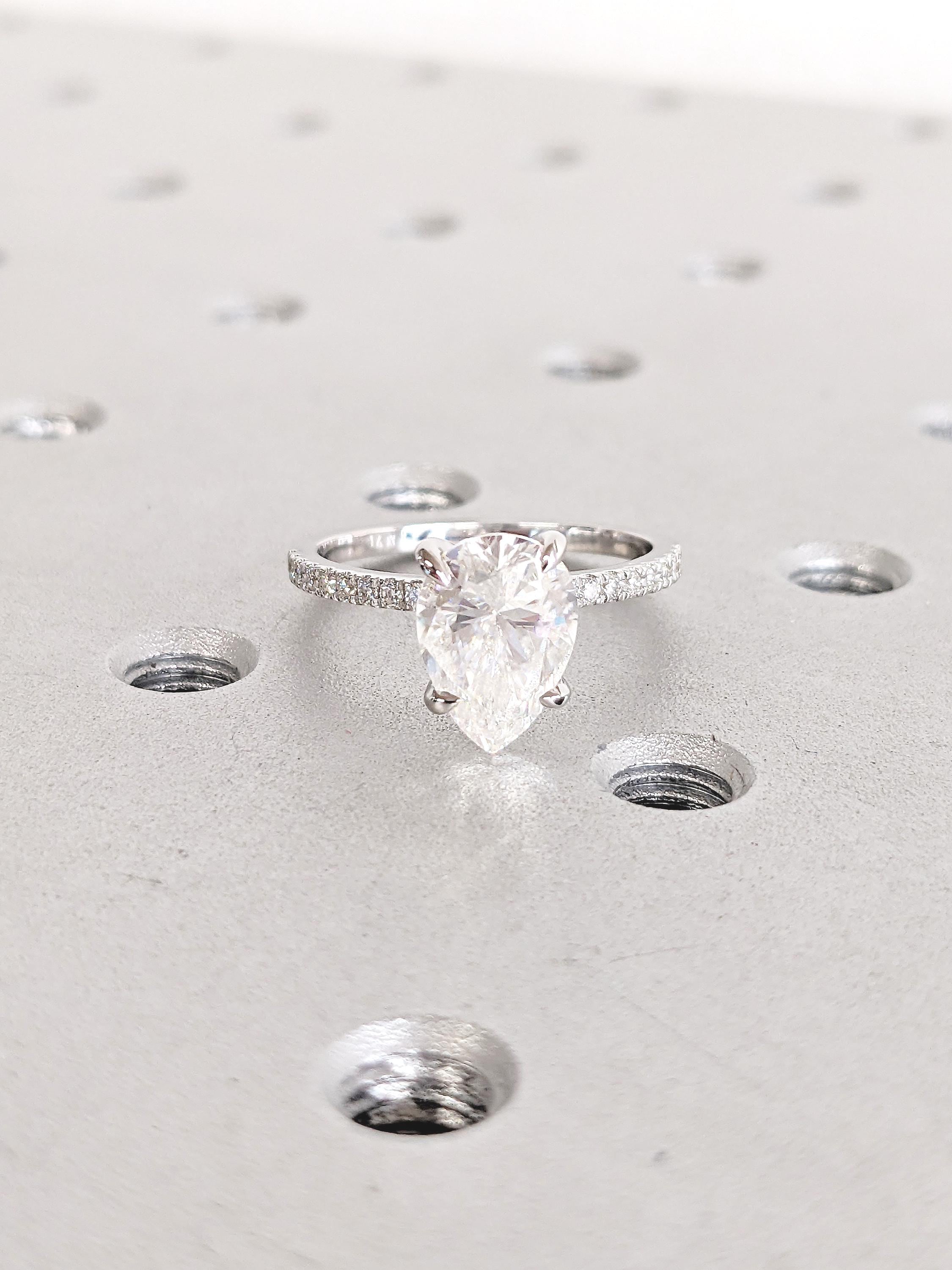 Lab Diamond Ring, Pave Engagement Rings, Art Deco 14k Gold Statement Ring, Pear Ring, Half Eternity Diamond Ring, Anniversary Gifts for Her
