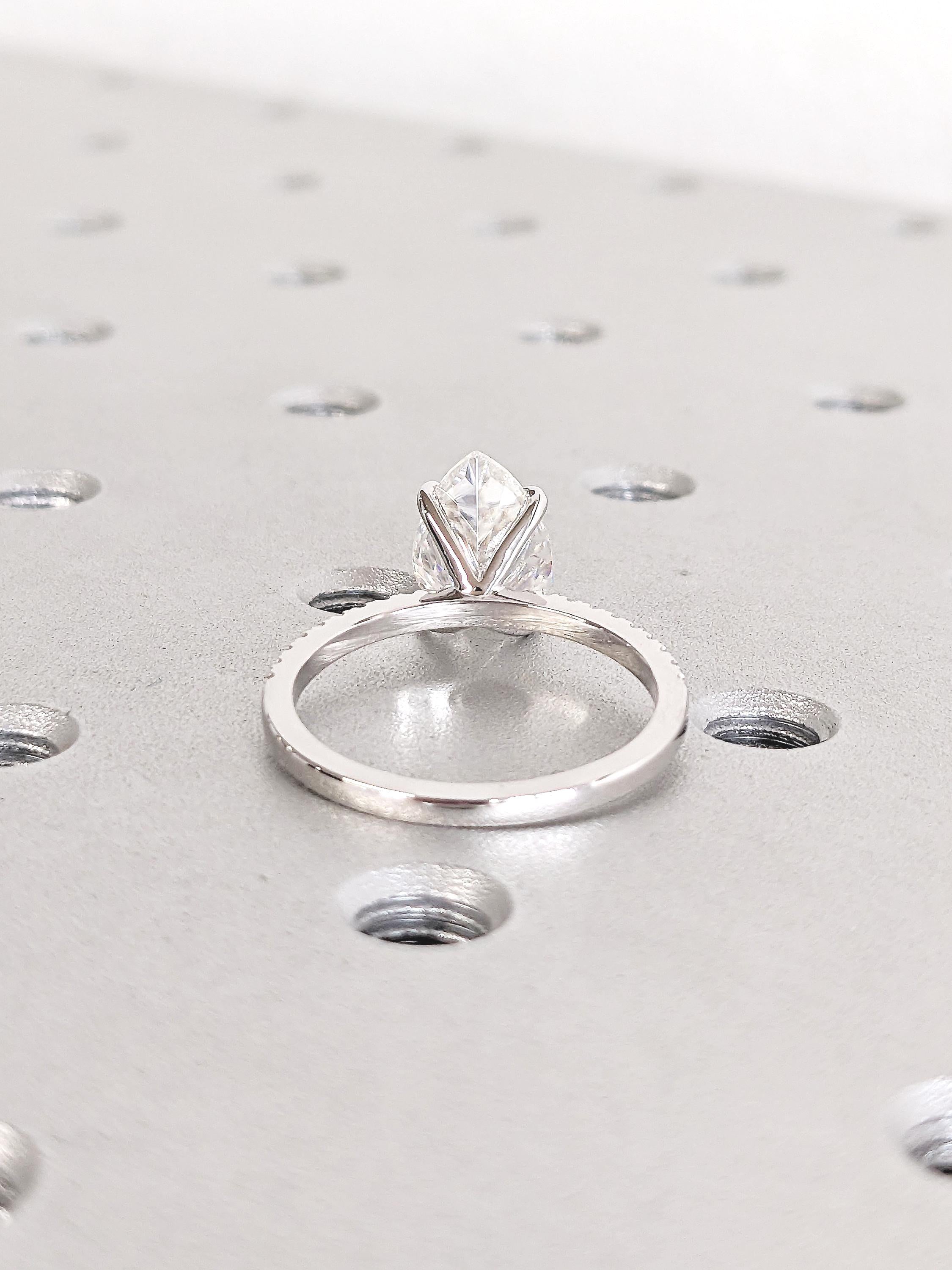 This stunning ring features a shimmering pear-cut Lab Grown Diamond at its center, gracefully set on a band paved with a half eternity of Natural Diamonds, Lab Grown Diamonds, or Moissanites. Its elegant sparkle and timeless design make it a perfect choice for a meaningful anniversary gift or a heartfelt promise ring. A symbol of enduring love, this piece is crafted to be cherished forever.