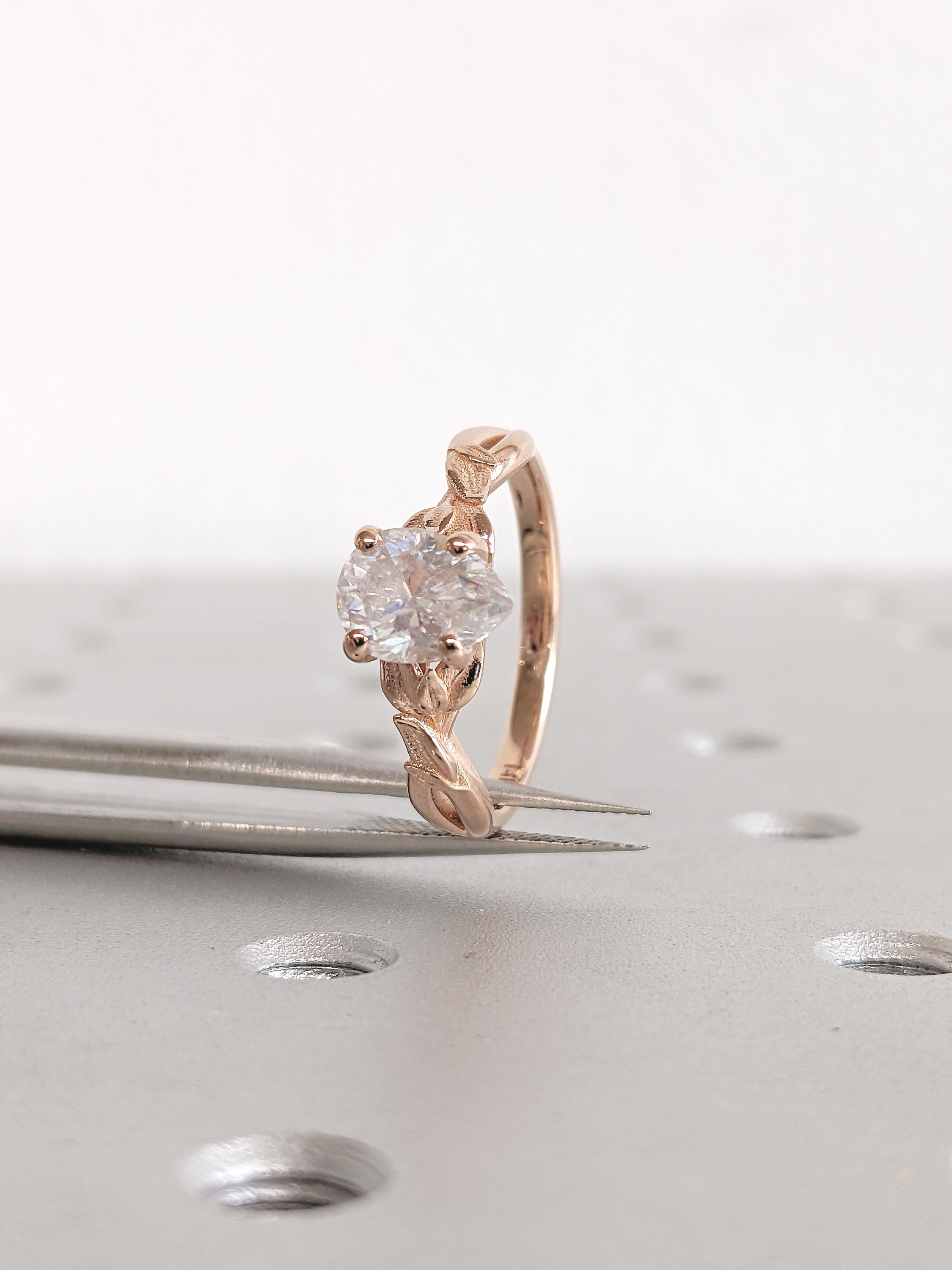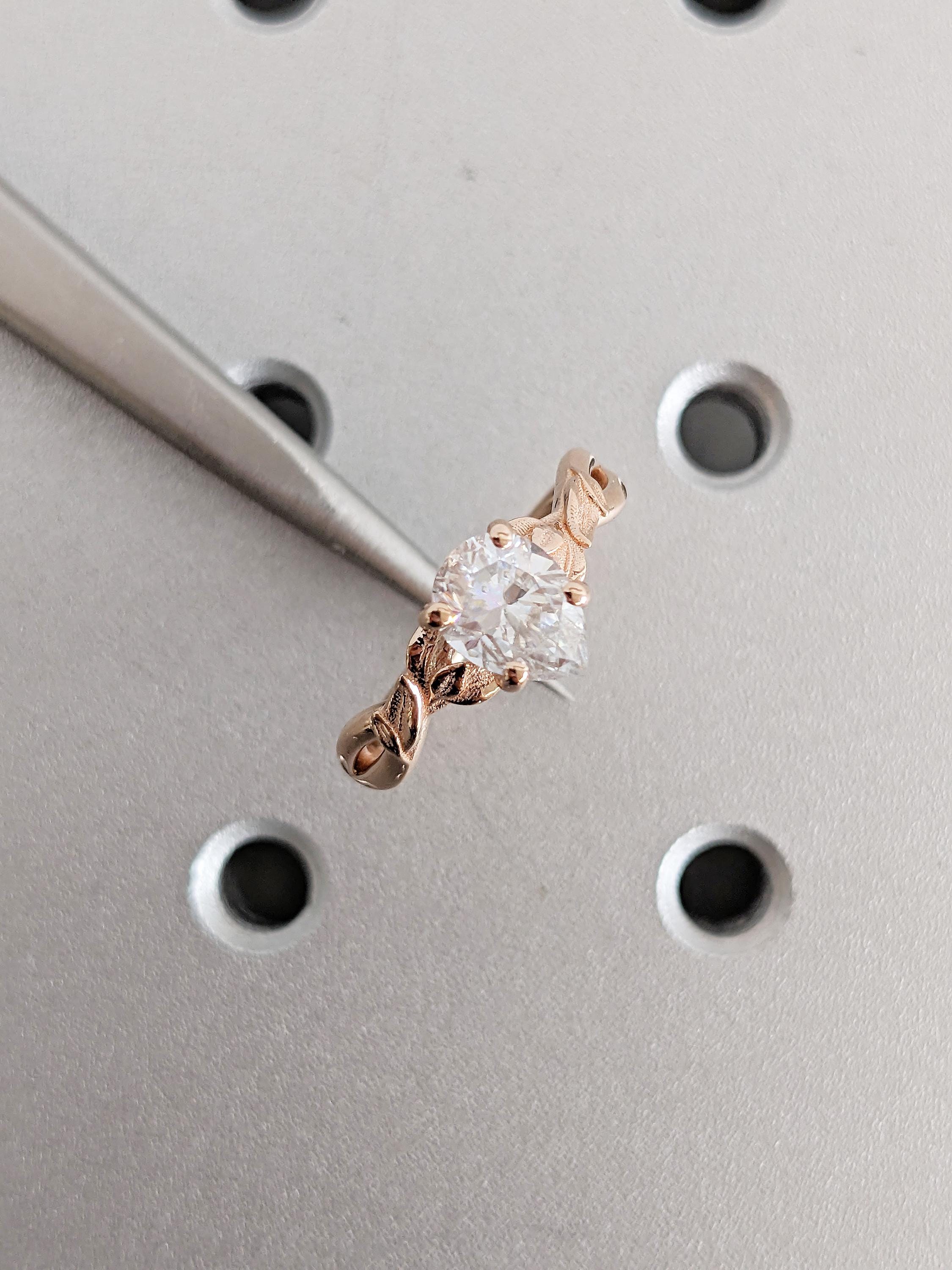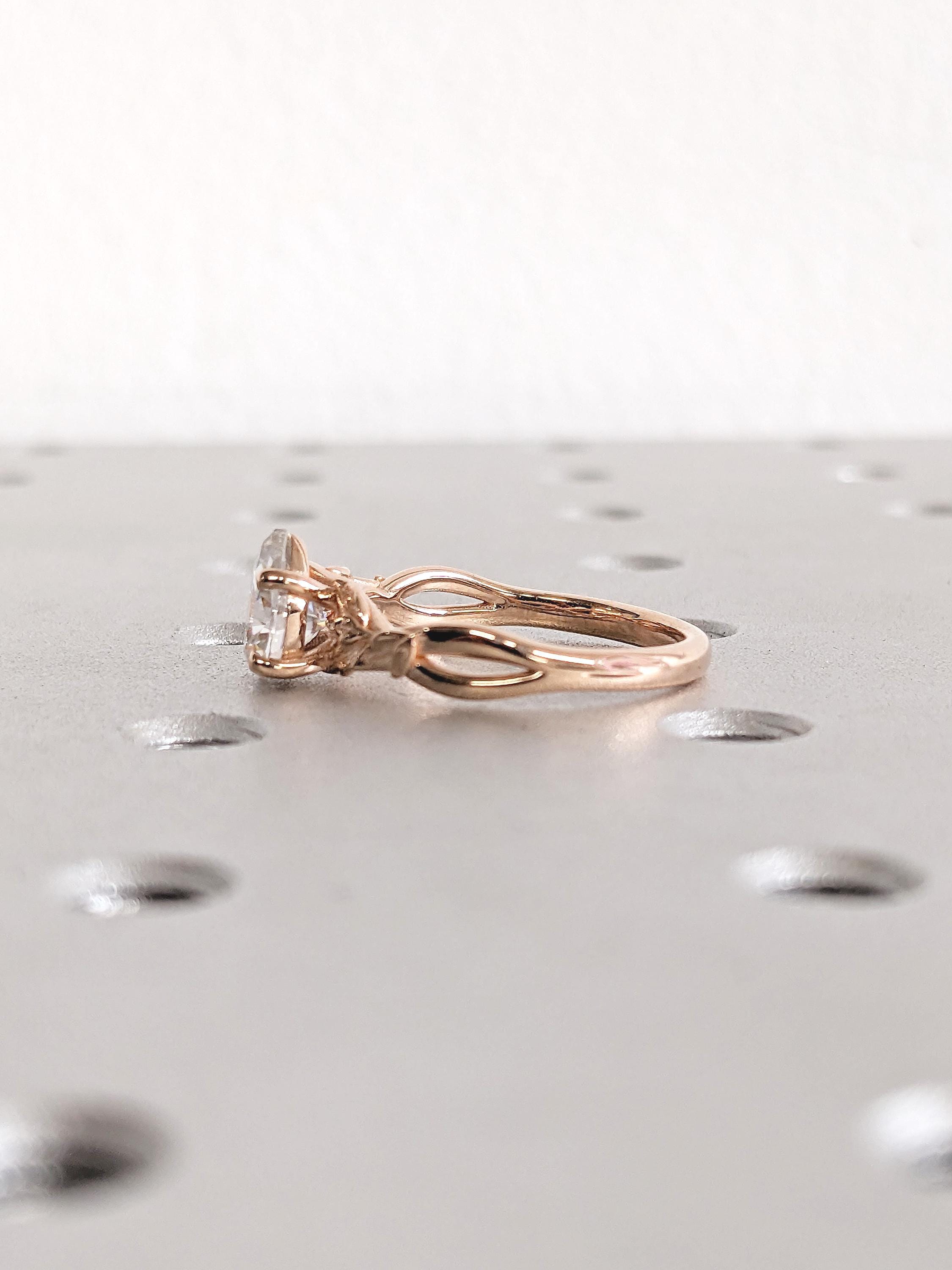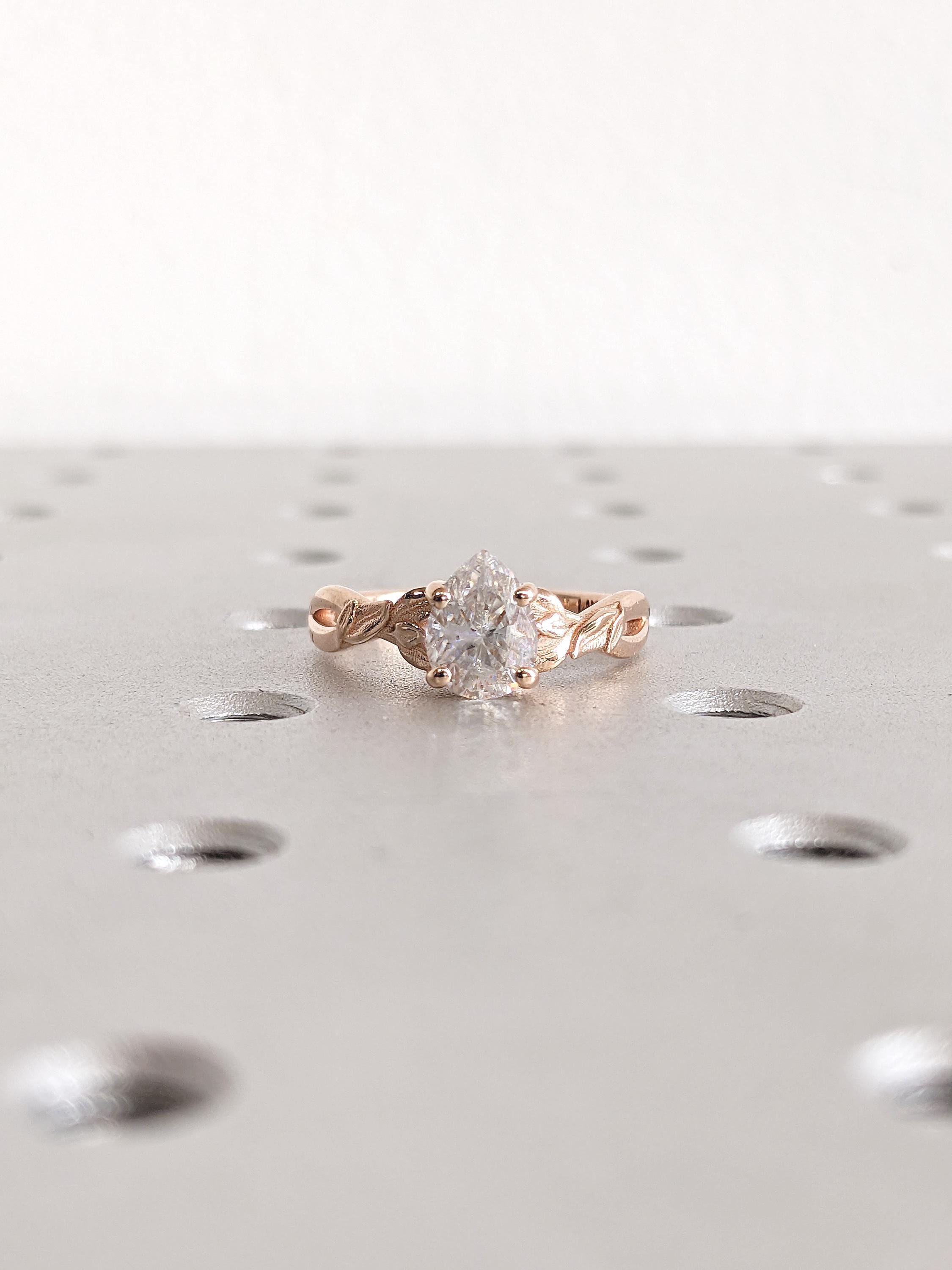 Lab Diamond Ring, Pear Engagement Ring, 14k Rose Gold Leaf Branch Wedding Ring, Nature Inspired Anniversary Ring, Twig Ring, Nature Jewelry