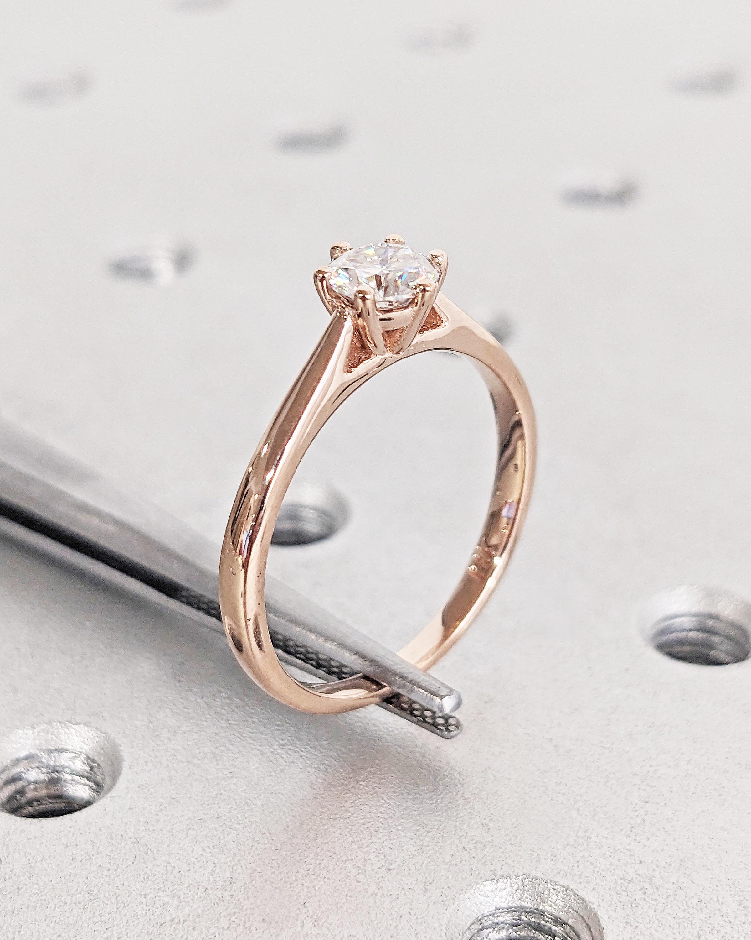 Lab Diamond Solitaire Cathedral Ring, Round Cut Lab Diamond Ring, Dainty 14k Rose Gold Promise Ring, Statement Ring, Bridal Gift for Wife