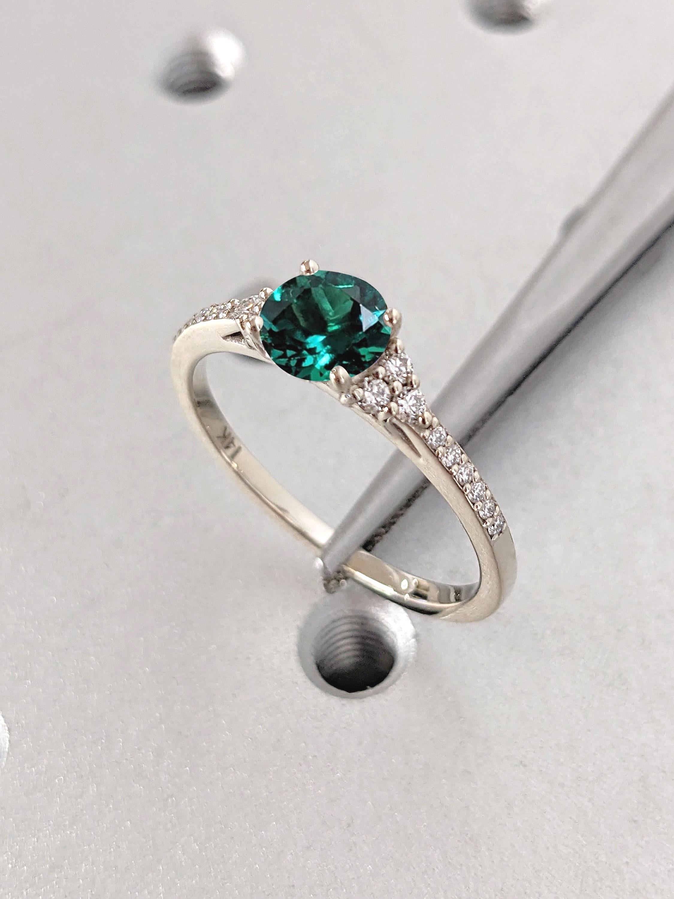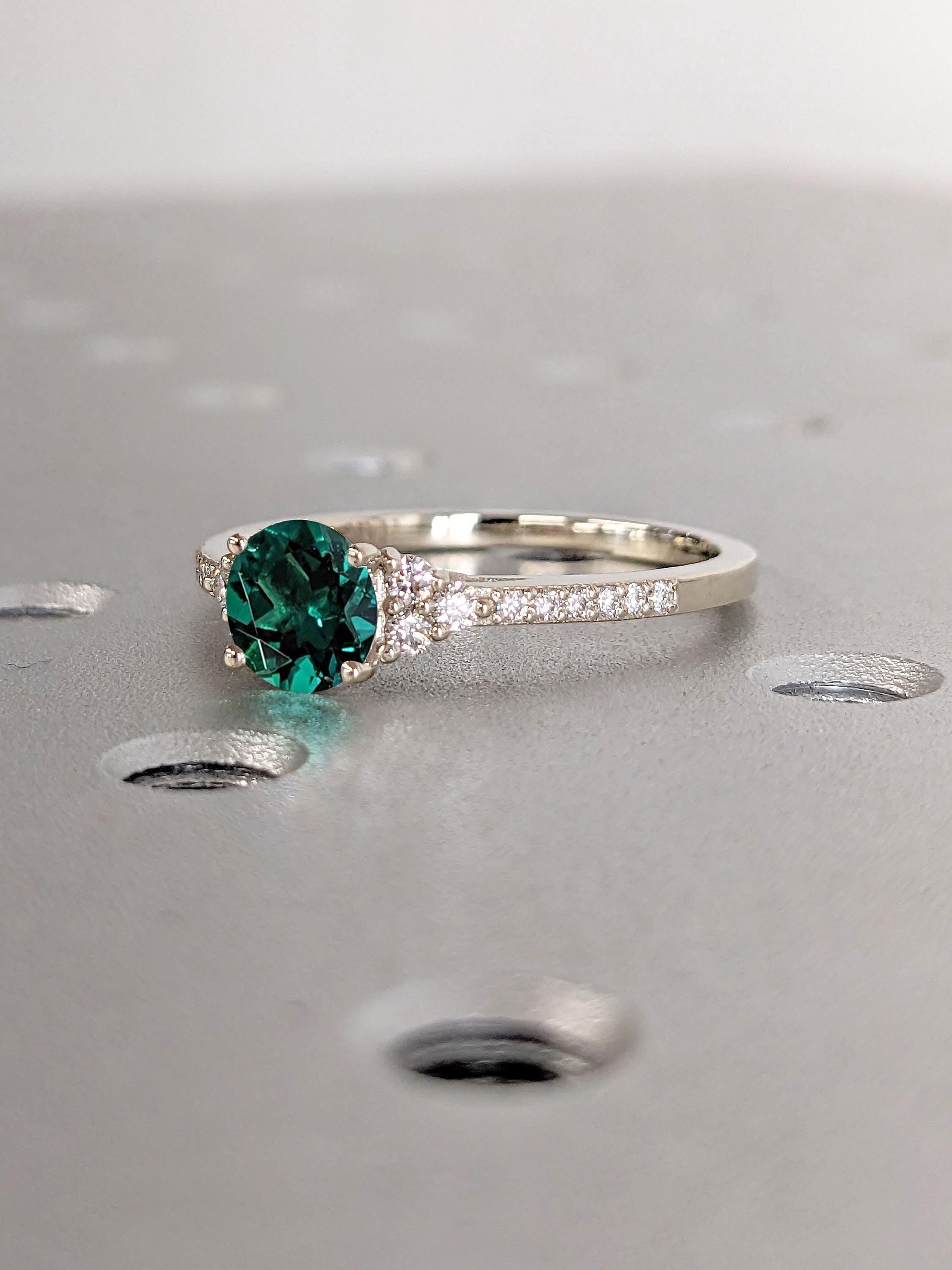 Lab Emerald and Natural Diamond Engagement Ring | May Birthstone Ring Gift for Her | Round cut Ring | Woman Bridal Ring | Solid Gold Jewelry