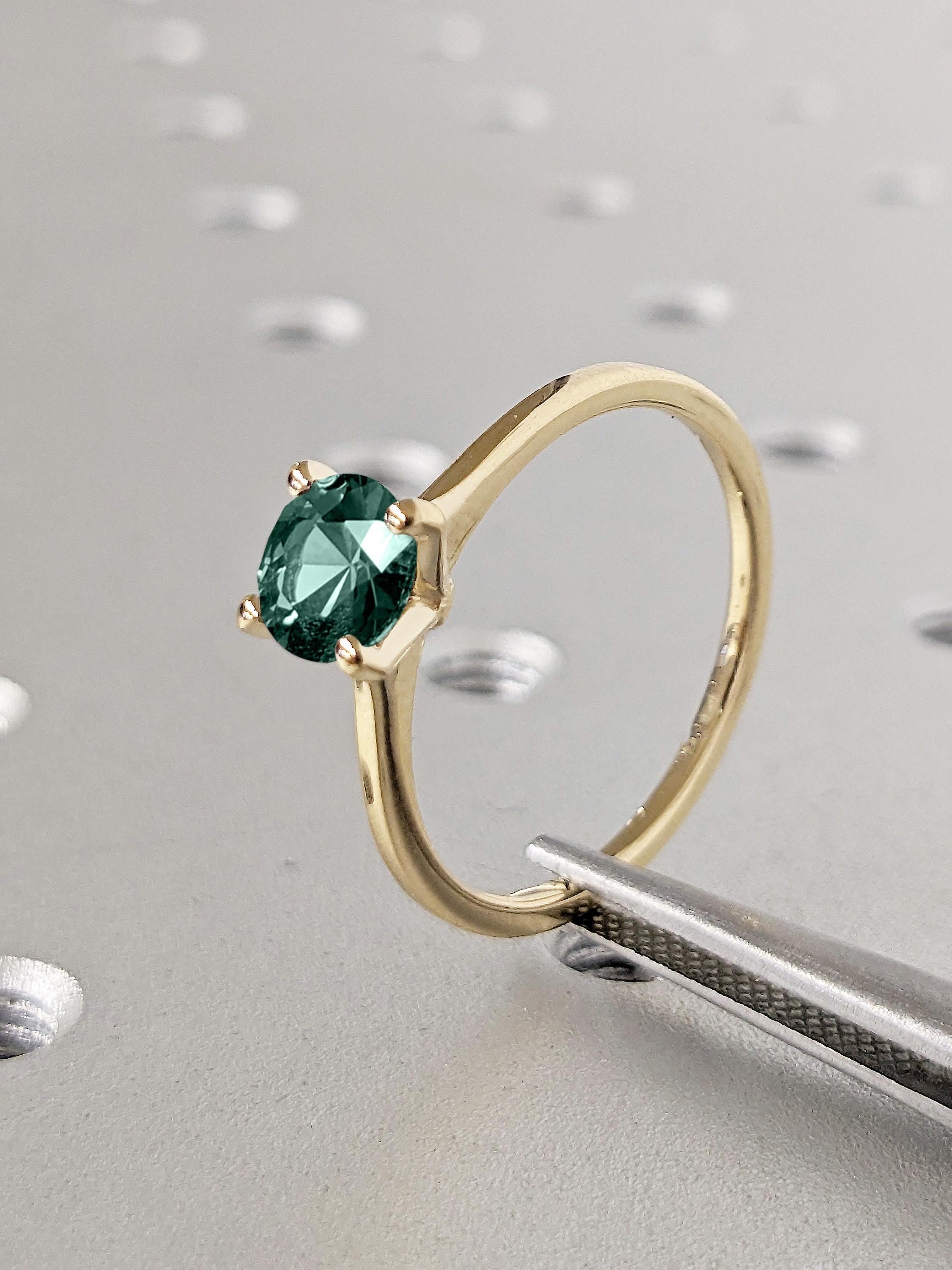 Lab Emerald Engagement Ring, Round Cut 18k Solid Gold Ring, Minimalist Ring