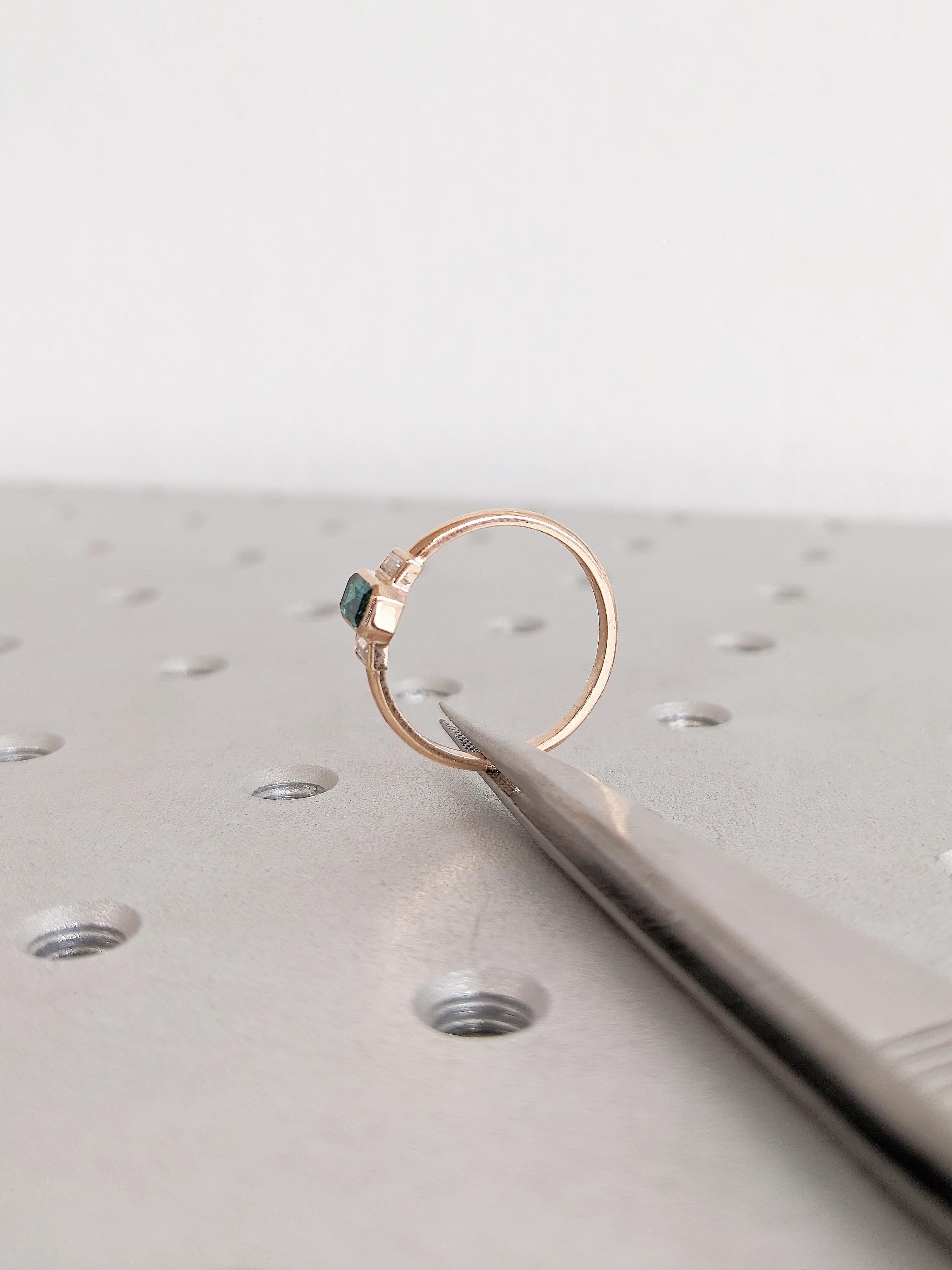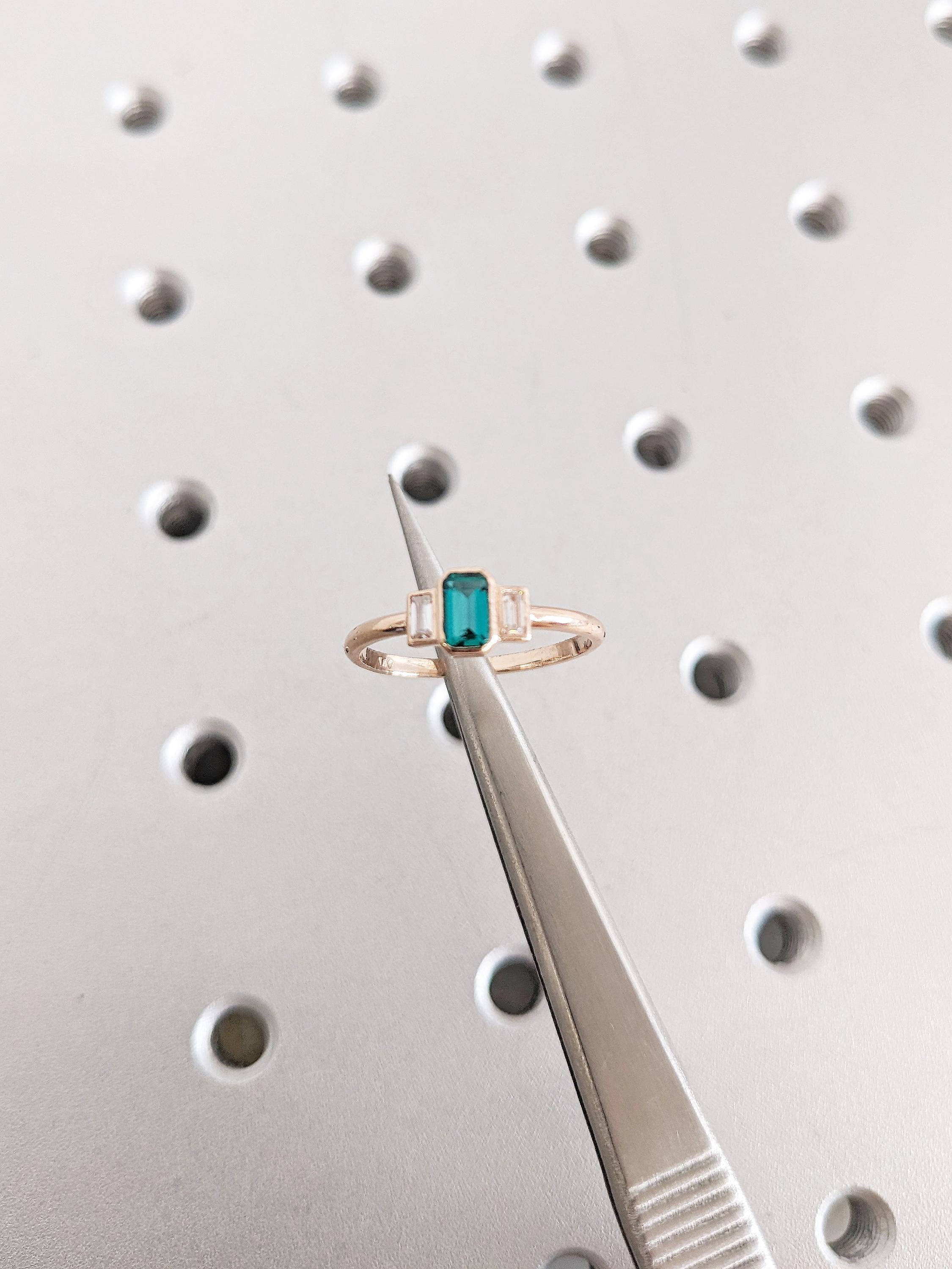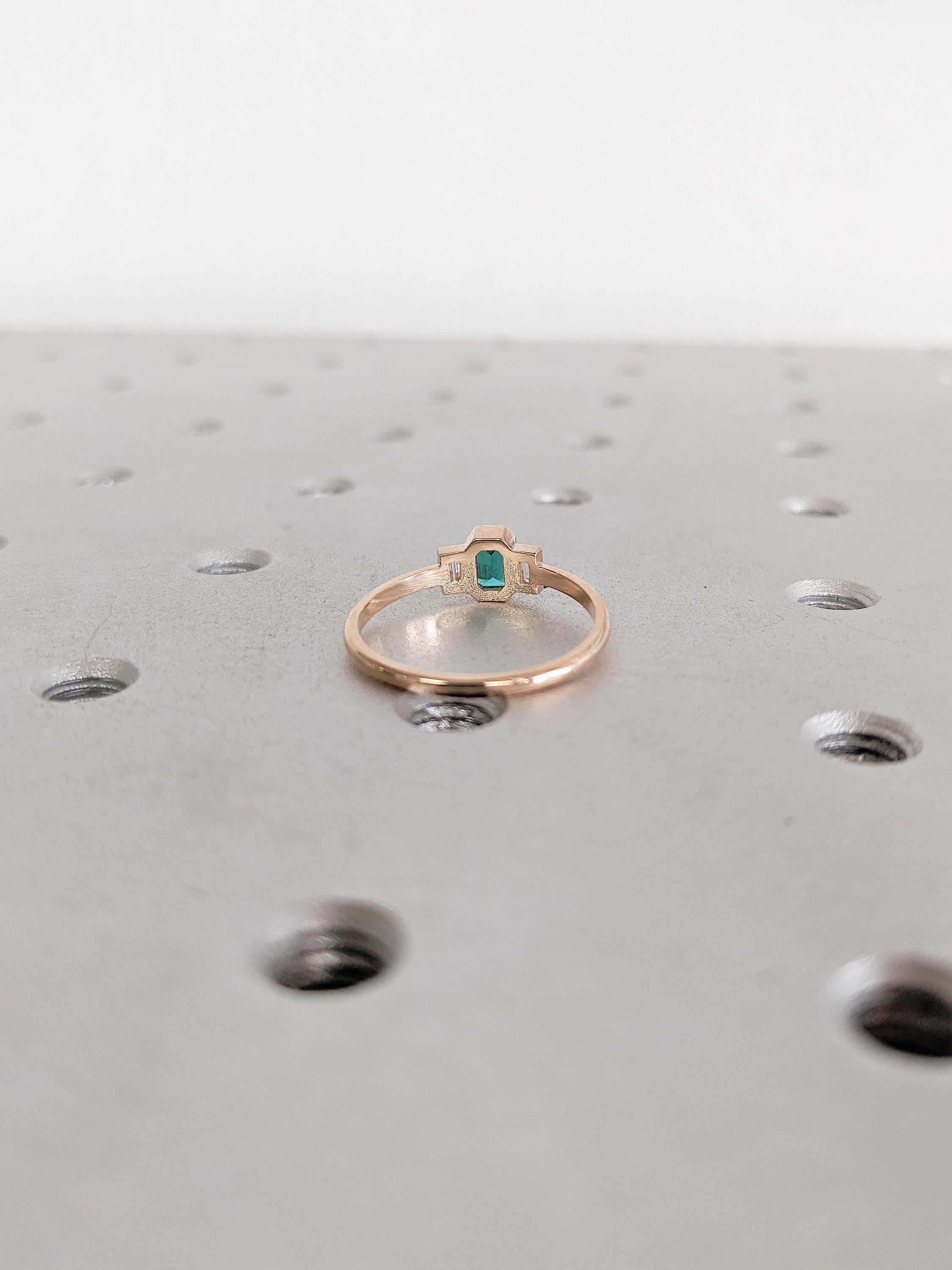 Lab Emerald Ring, Emerald Cut Engagement Ring, Promise Rings for Women, 14k Rose Gold Engagement Ring, Baguette Moissanite, Gemstone Ring
