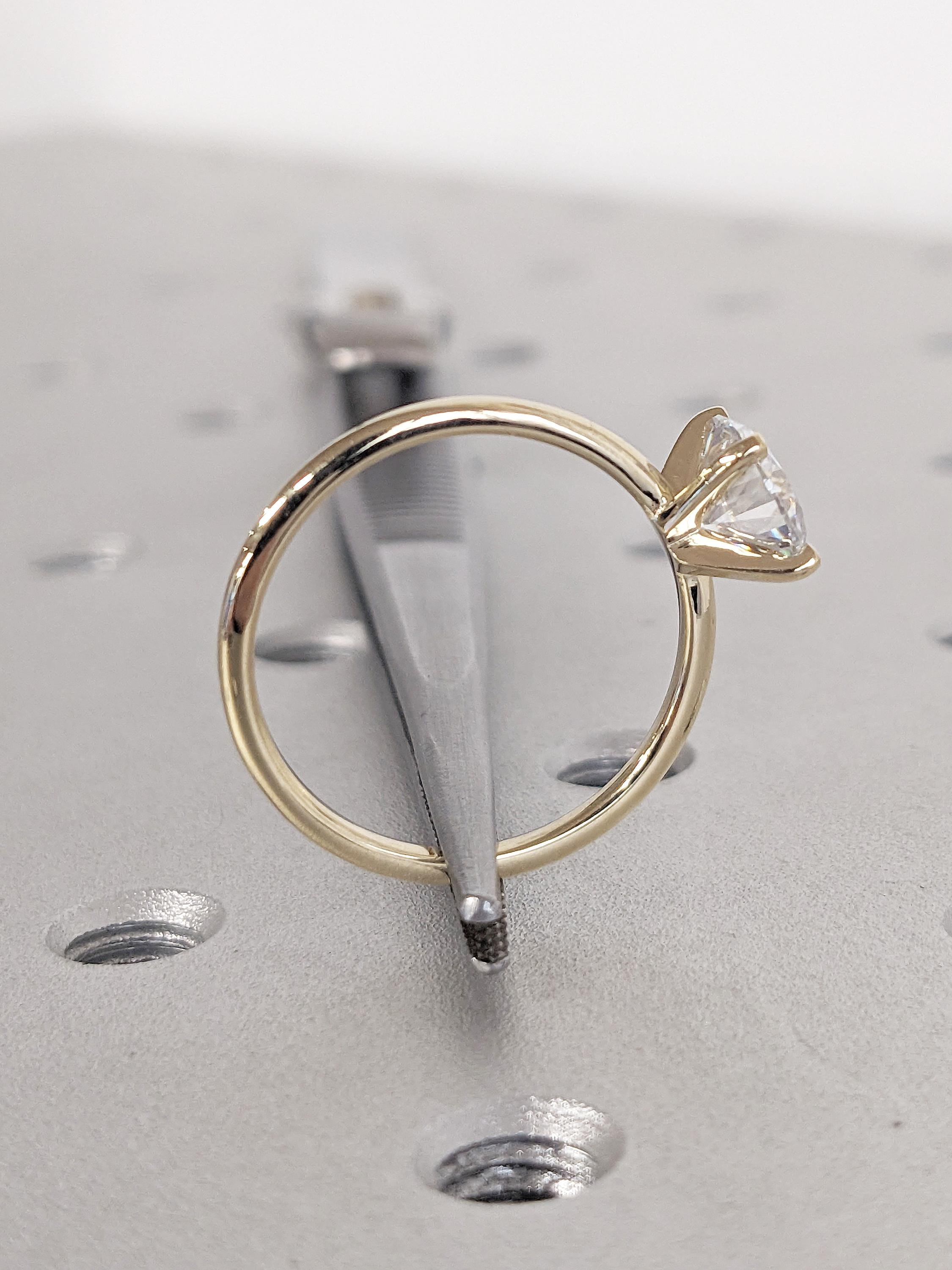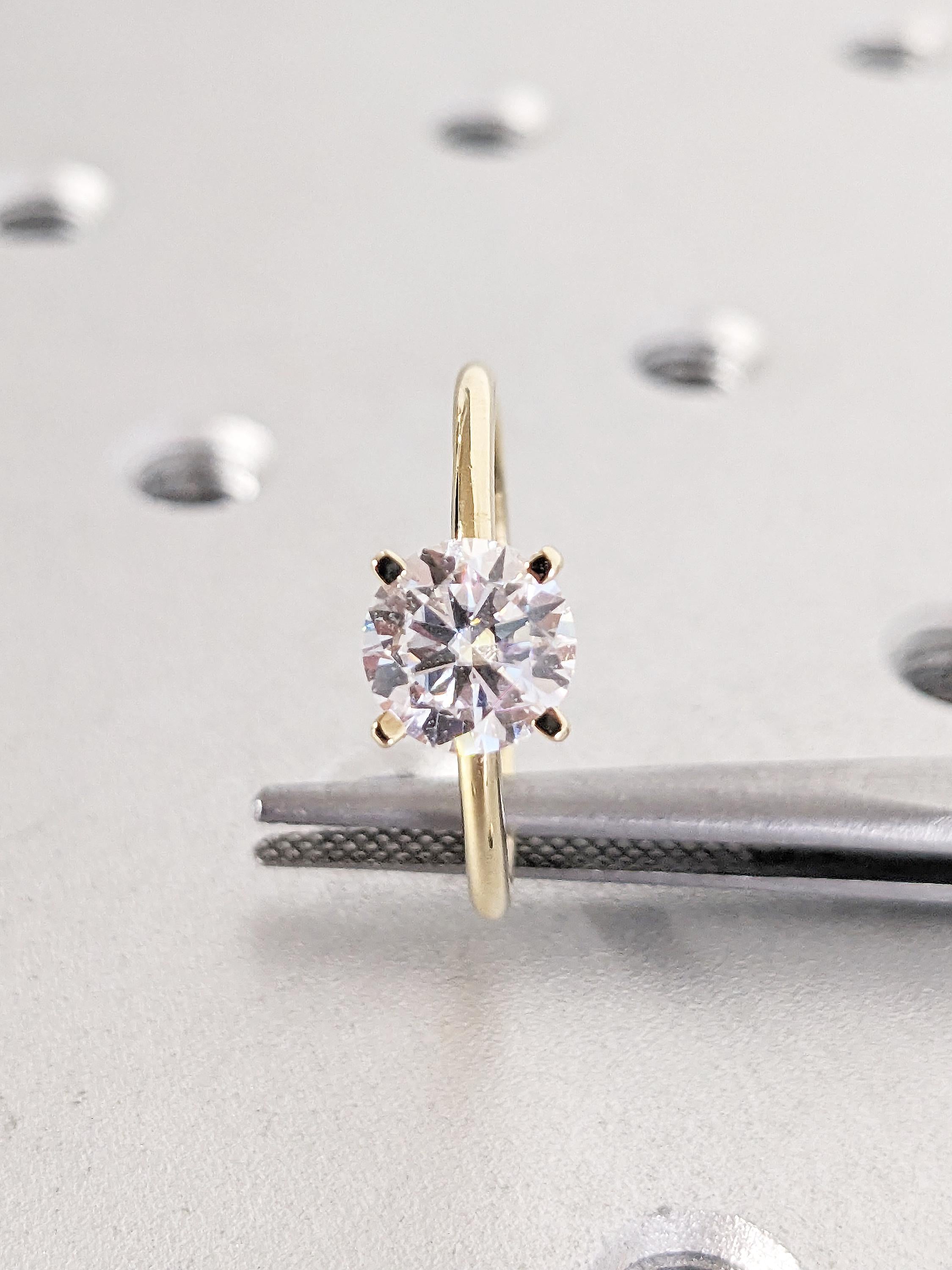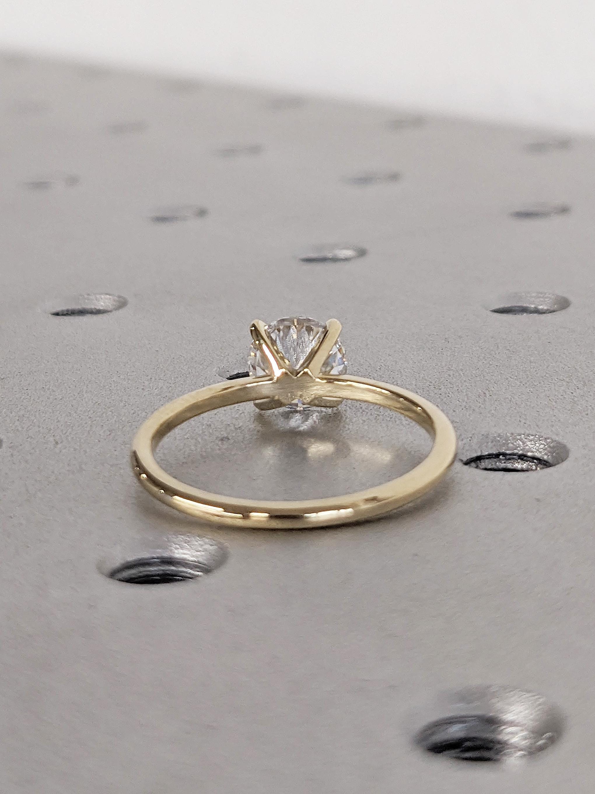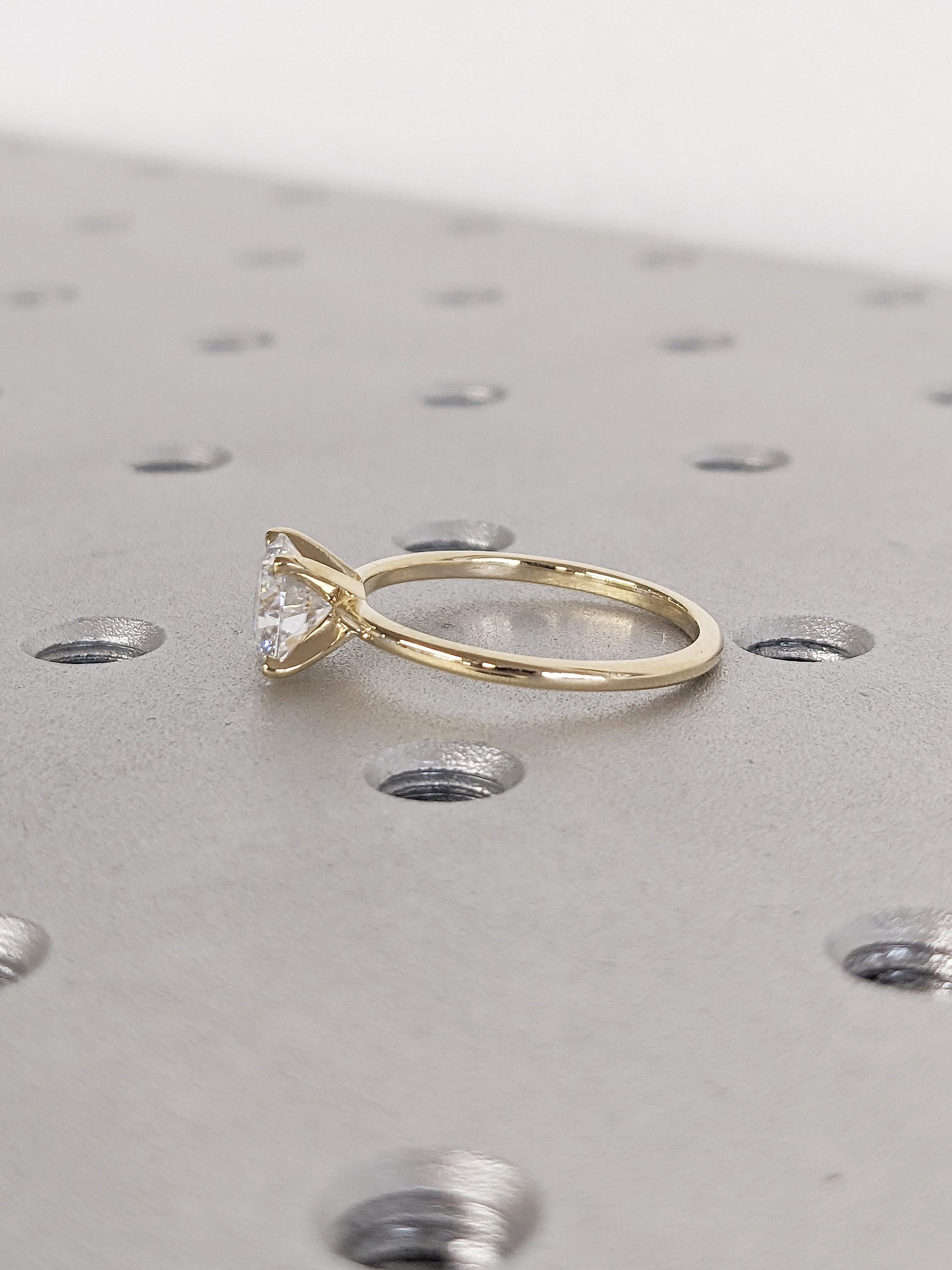 This elegant solitaire engagement ring features a dazzling round-cut Lab Grown Diamond secured by four prongs on a classic gold band. Designed for timeless beauty and everyday comfort, the band has a smooth, comfort-fit design, ensuring a perfect balance of style and wearability.