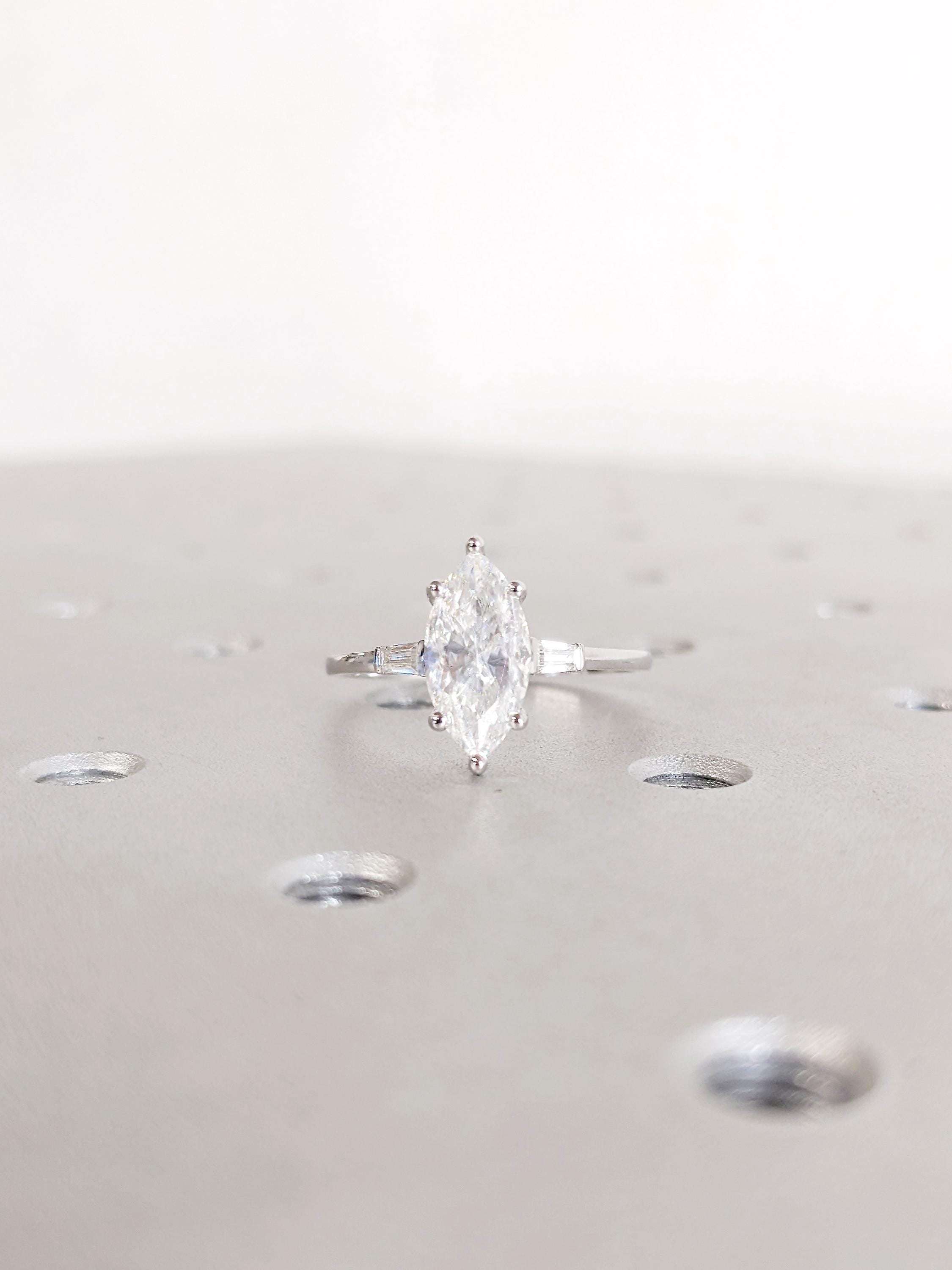 Lab Grown Diamond Engagement Ring | 14K Solid Gold Wedding Ring | Tapered Baguette Diamond Ring | Prong Set Marquise Cut Lab Diamond Ring