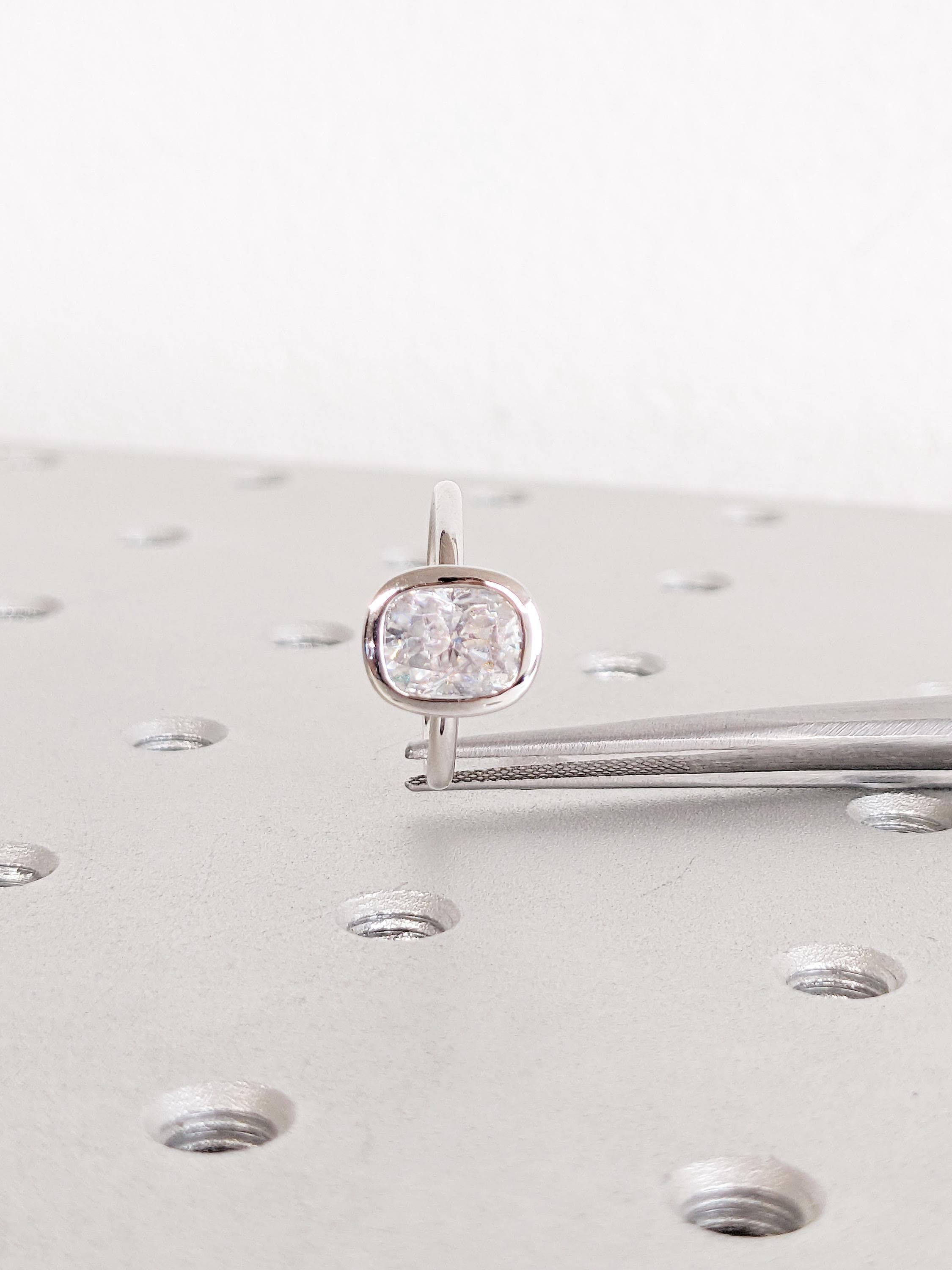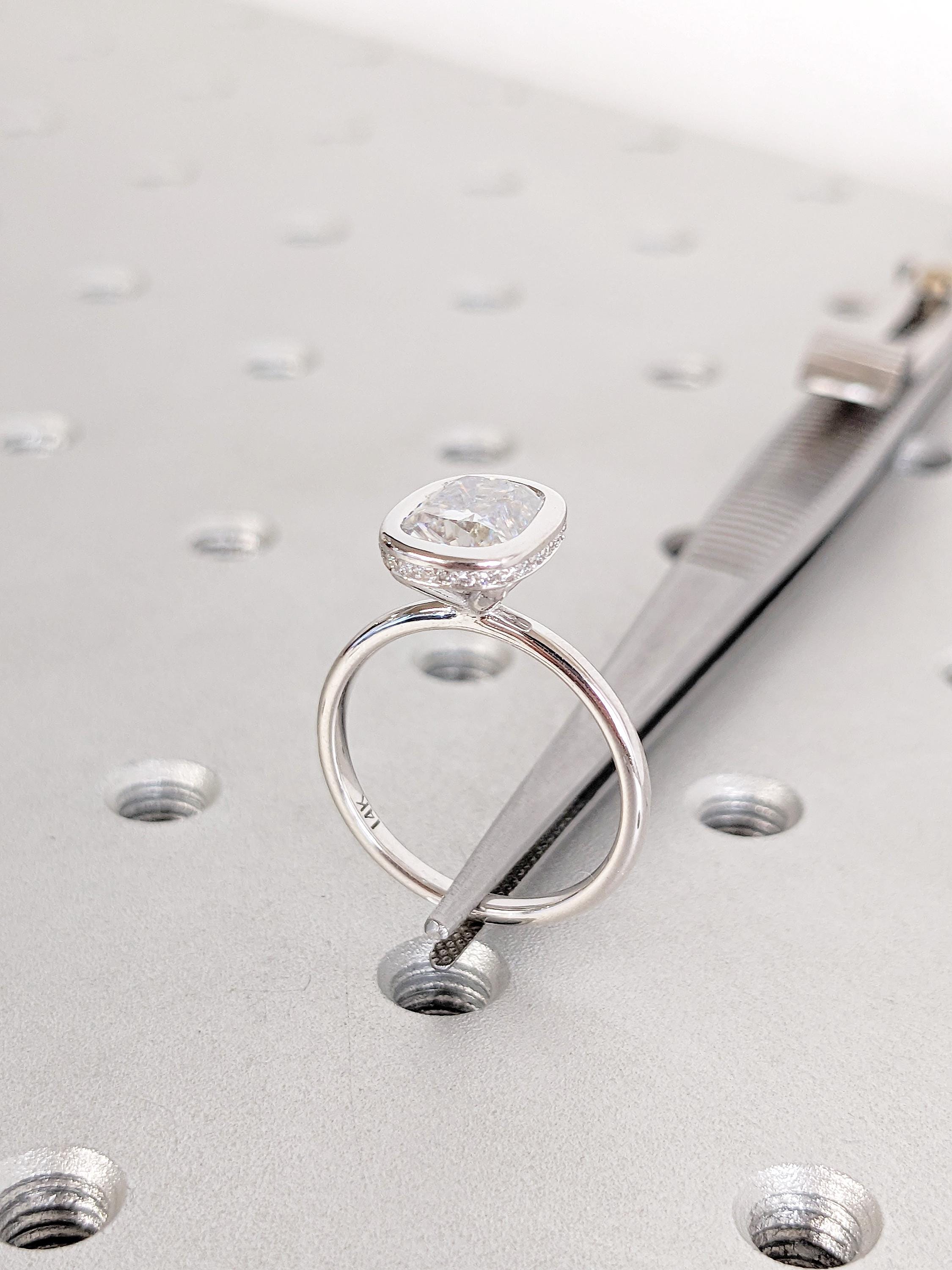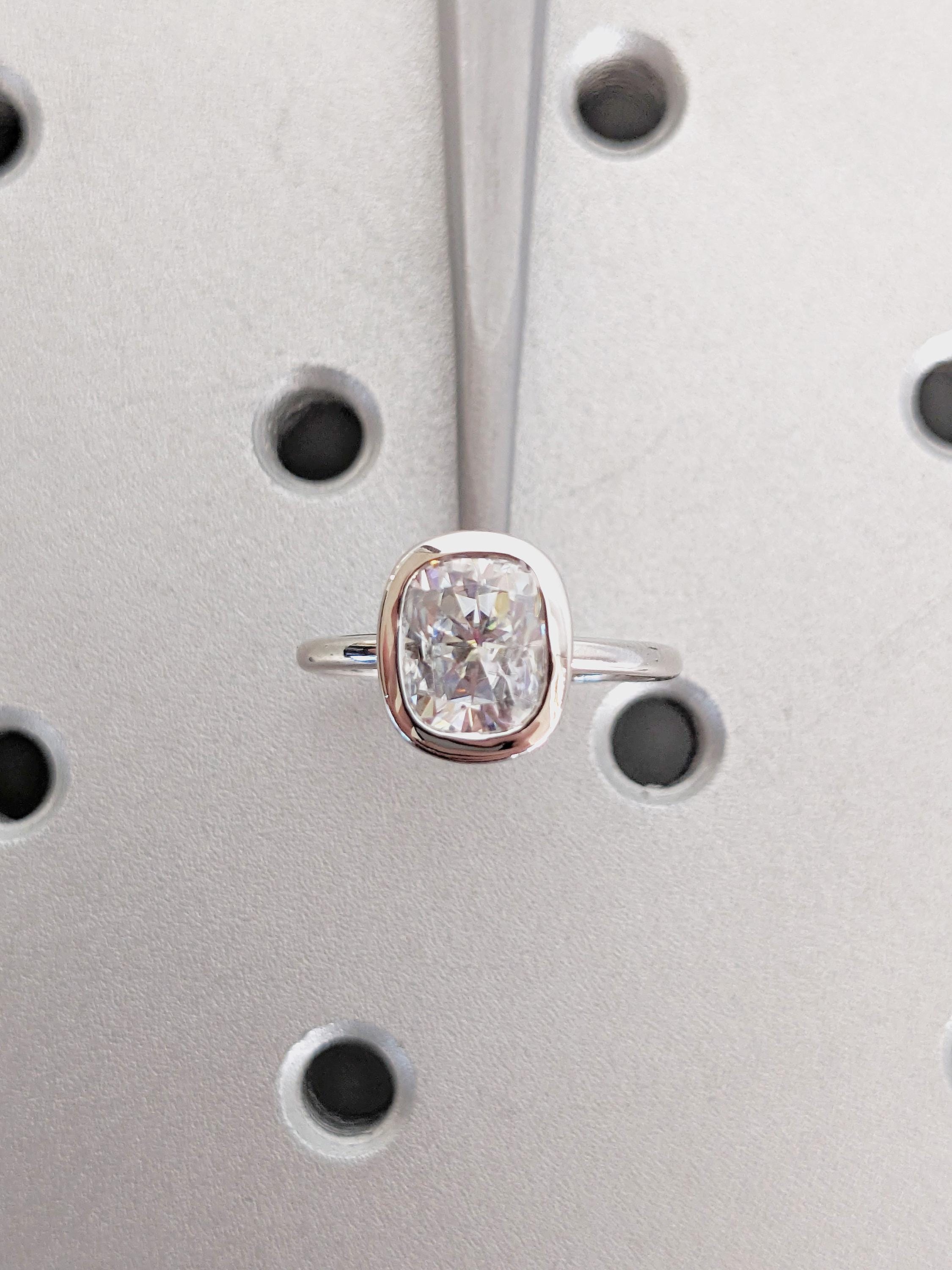 Lab Grown Diamond Engagement Ring, 14K White Gold Ring, Cushion Cut Ring, Hidden Halo Bezel Set Ring